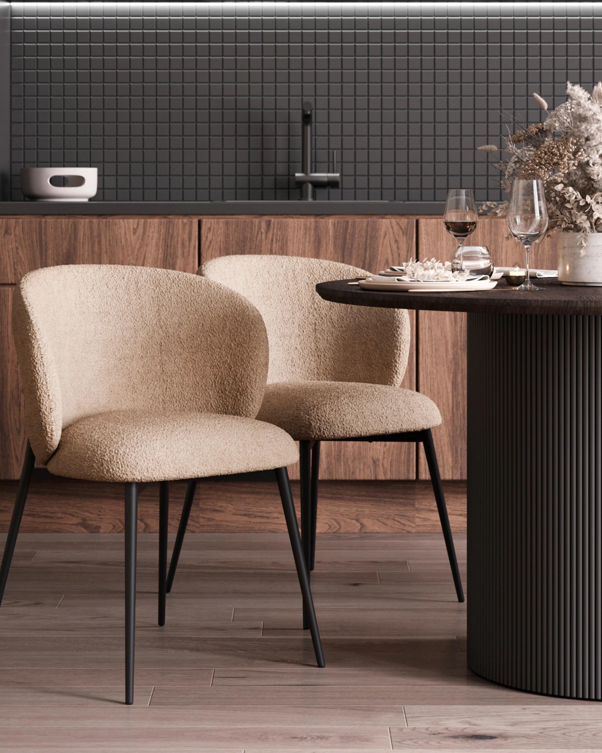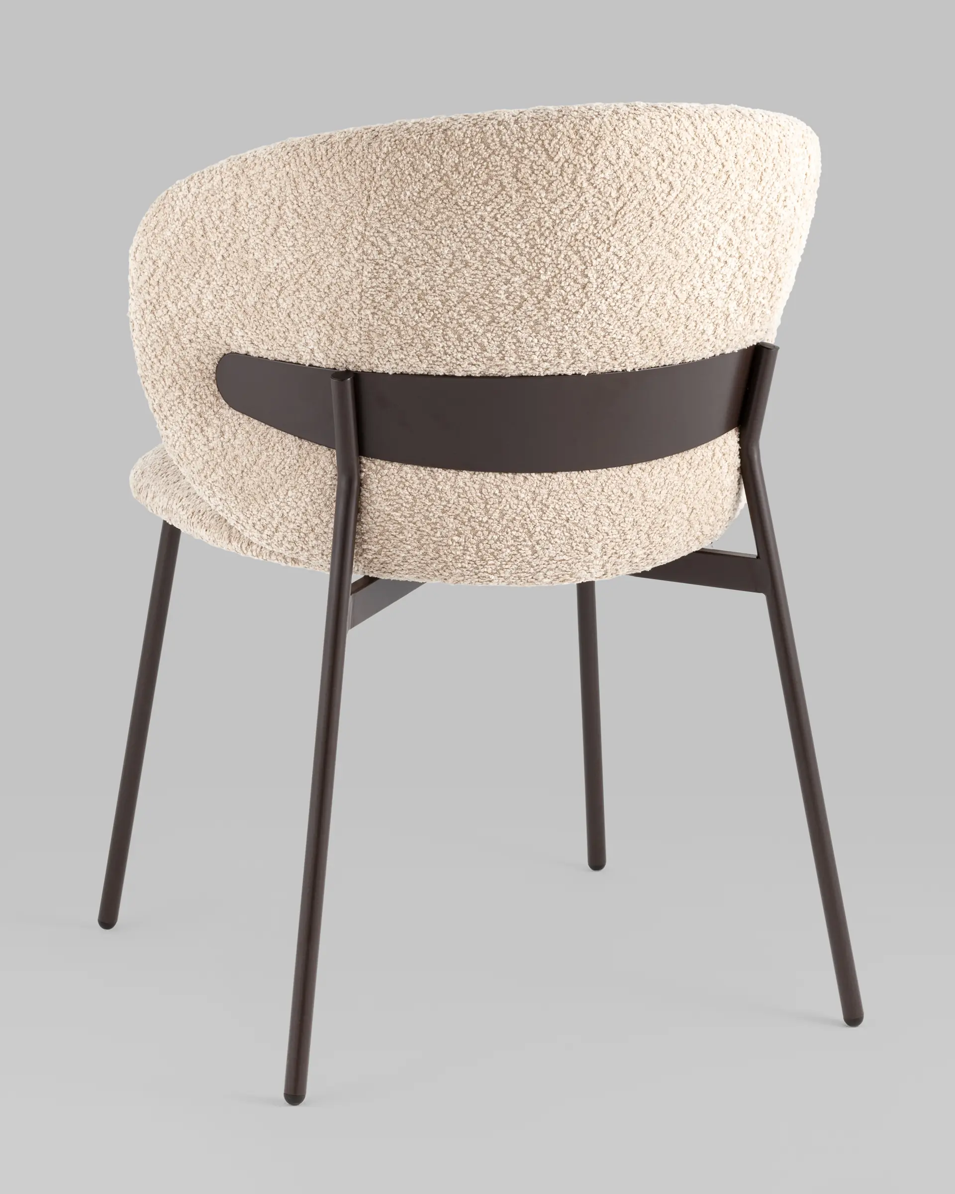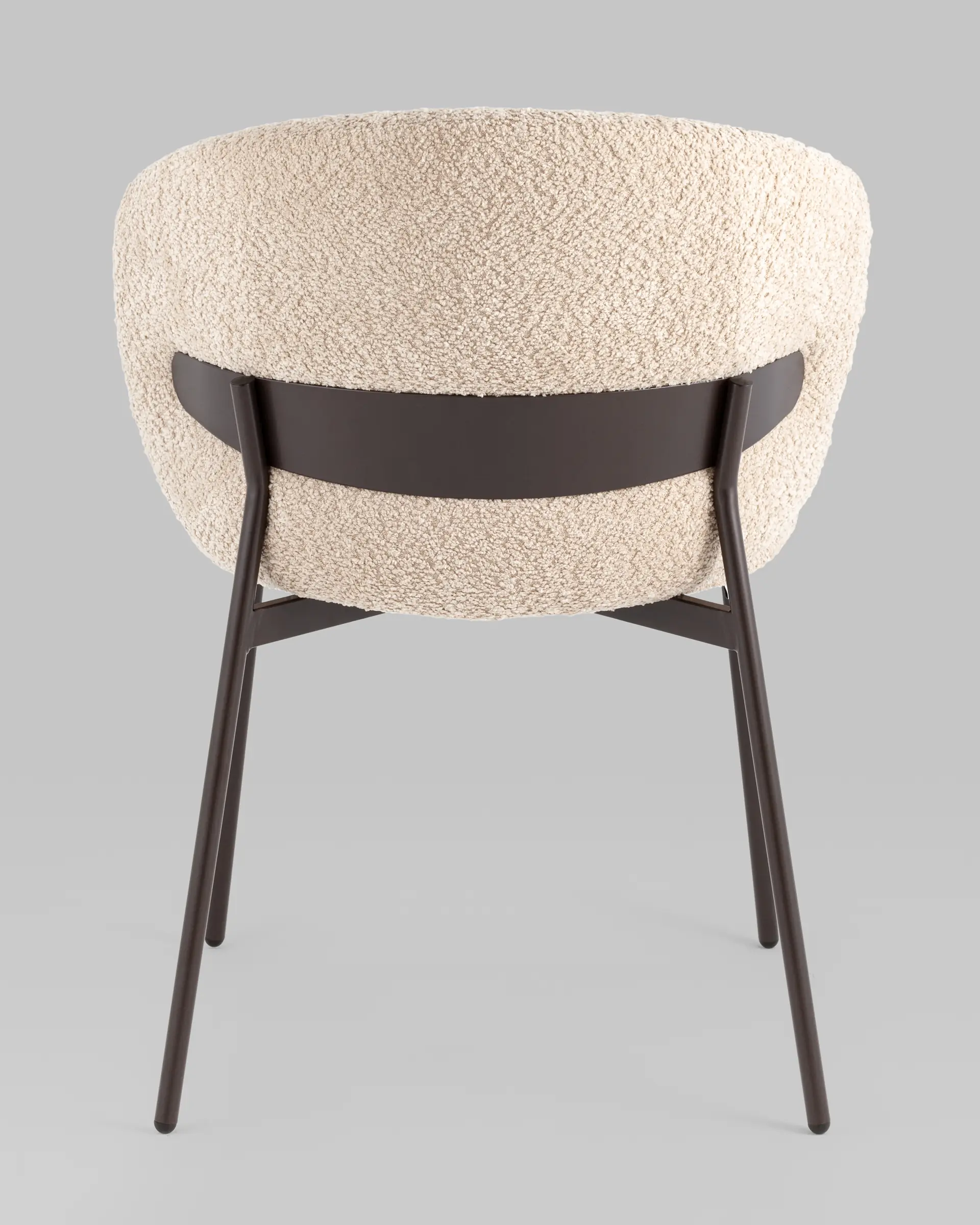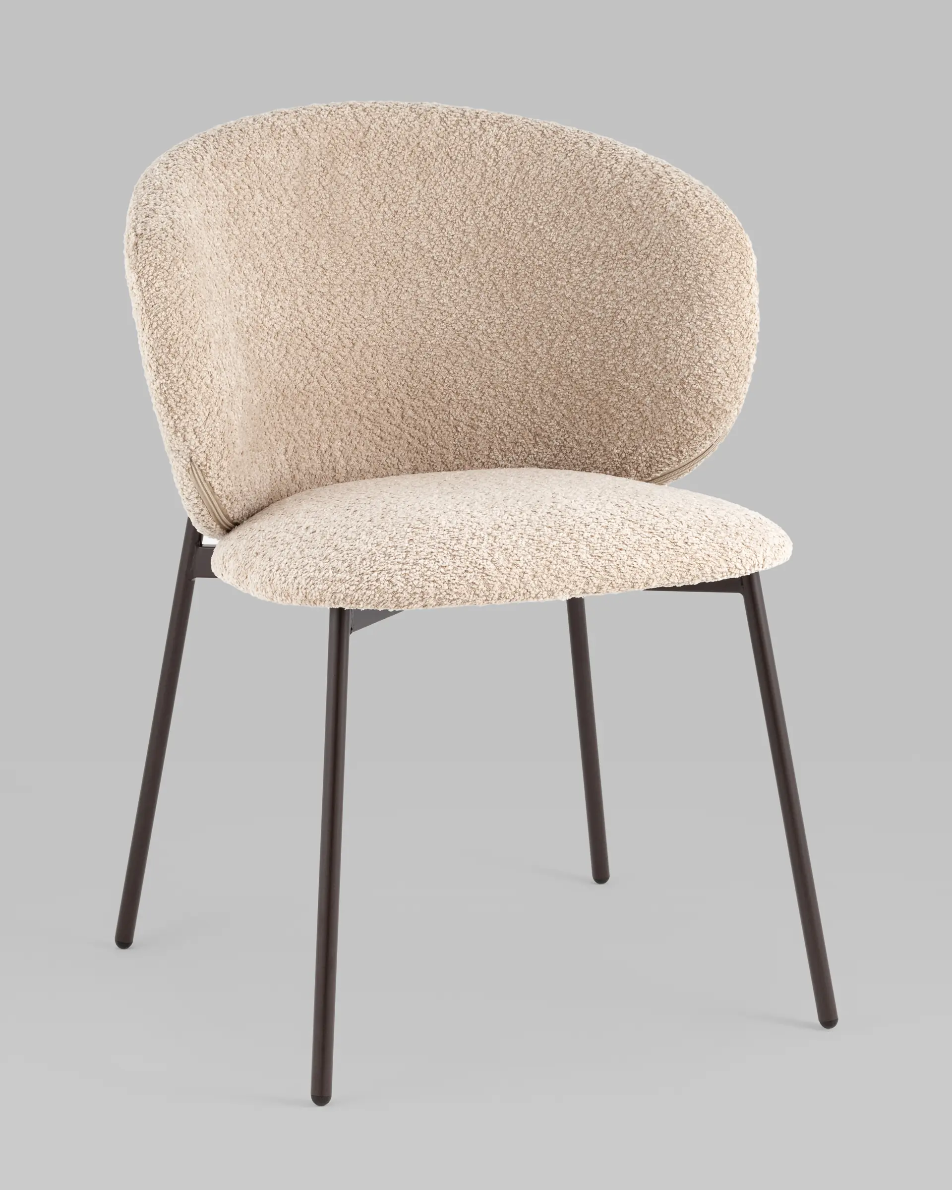 Интересное сочетание современного дизайна и вневременной мебельной классики. Обивка выполнена из мягкой и легкой ткани букле. Красивый и очень мягкий материал, который оставляет ощущение теплоты и уюта. Прочная конструкция выдерживает нагрузки до 120 кг. Полукруглая спинка и широкое сиденье обеспечат удобство при посадке. Лаконичный дизайн стула дополнит любой интерьер и будет прекрасно смотреться в комплекте с обеденным столом.
