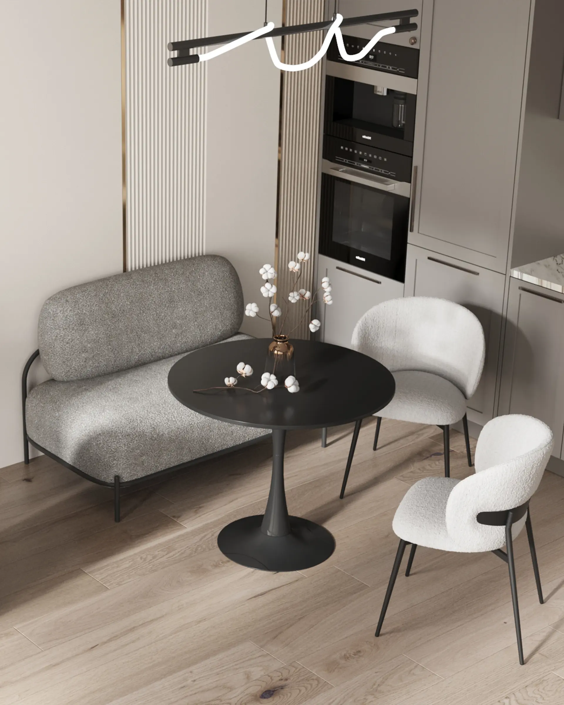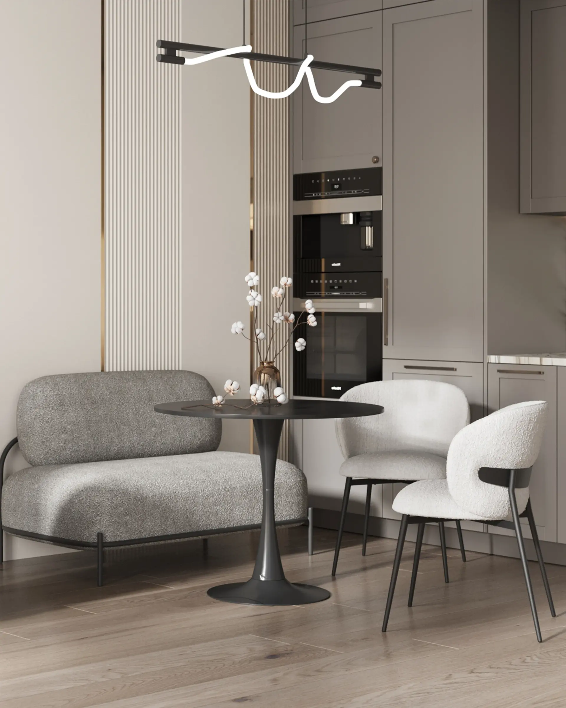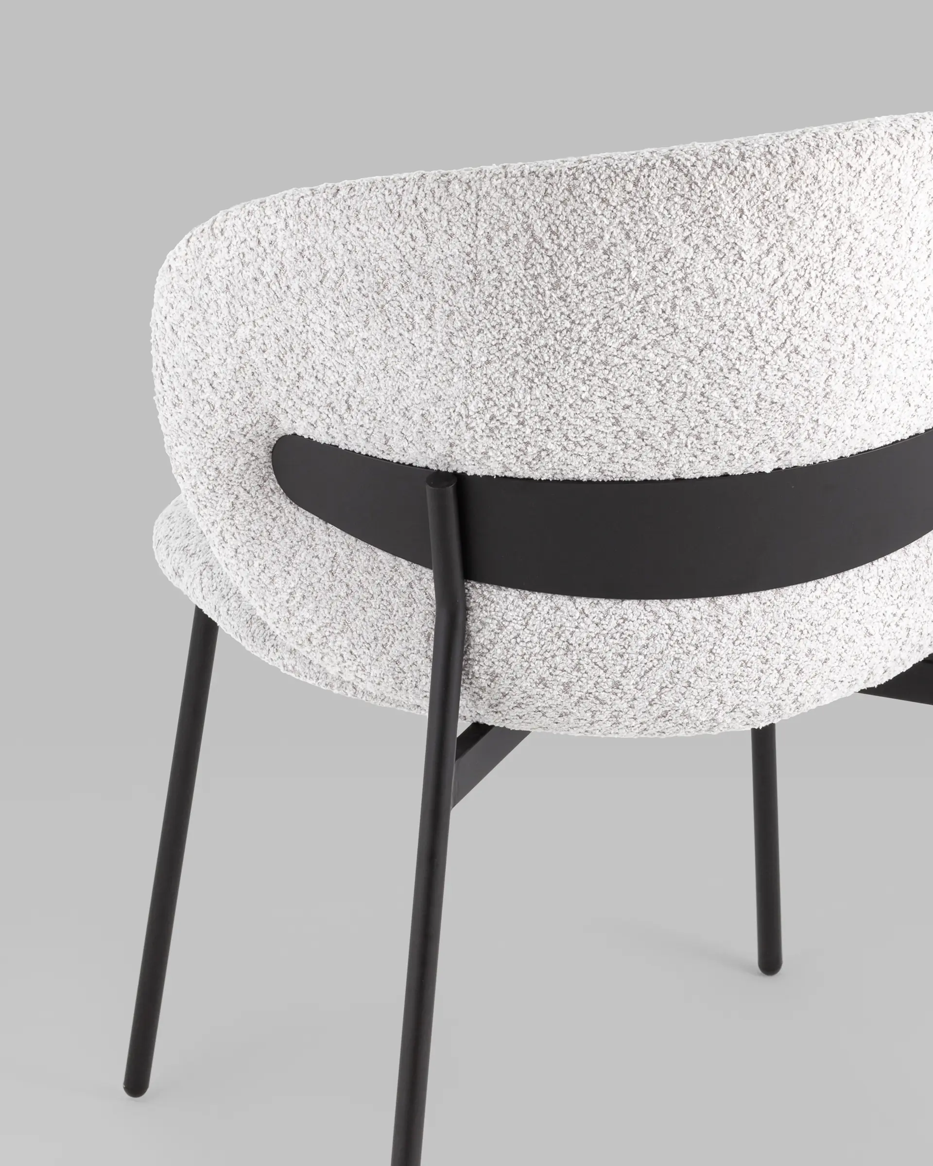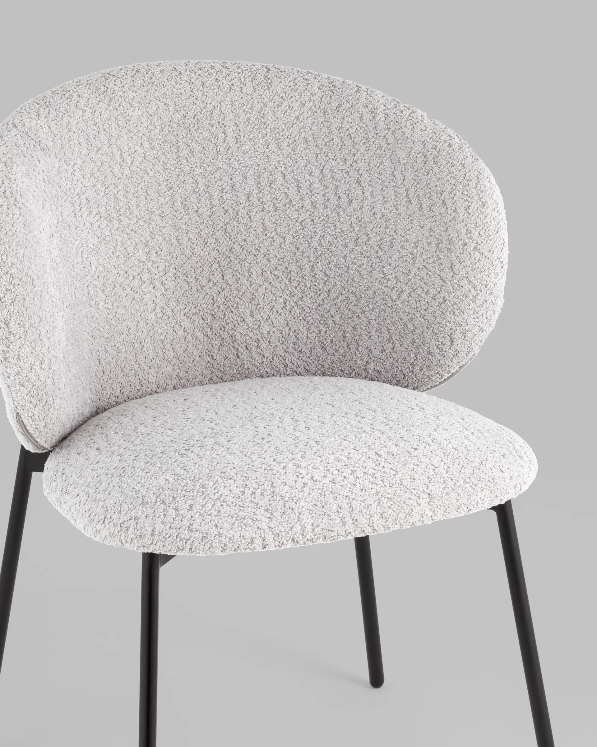 Интересное сочетание современного дизайна и вневременной мебельной классики. Обивка выполнена из мягкой и легкой ткани букле. Красивый и очень мягкий материал, который оставляет ощущение теплоты и уюта. Прочная конструкция выдерживает нагрузки до 120 кг. Полукруглая спинка и широкое сиденье обеспечат удобство при посадке. Лаконичный дизайн стула дополнит любой интерьер и будет прекрасно смотреться в комплекте с обеденным столом.