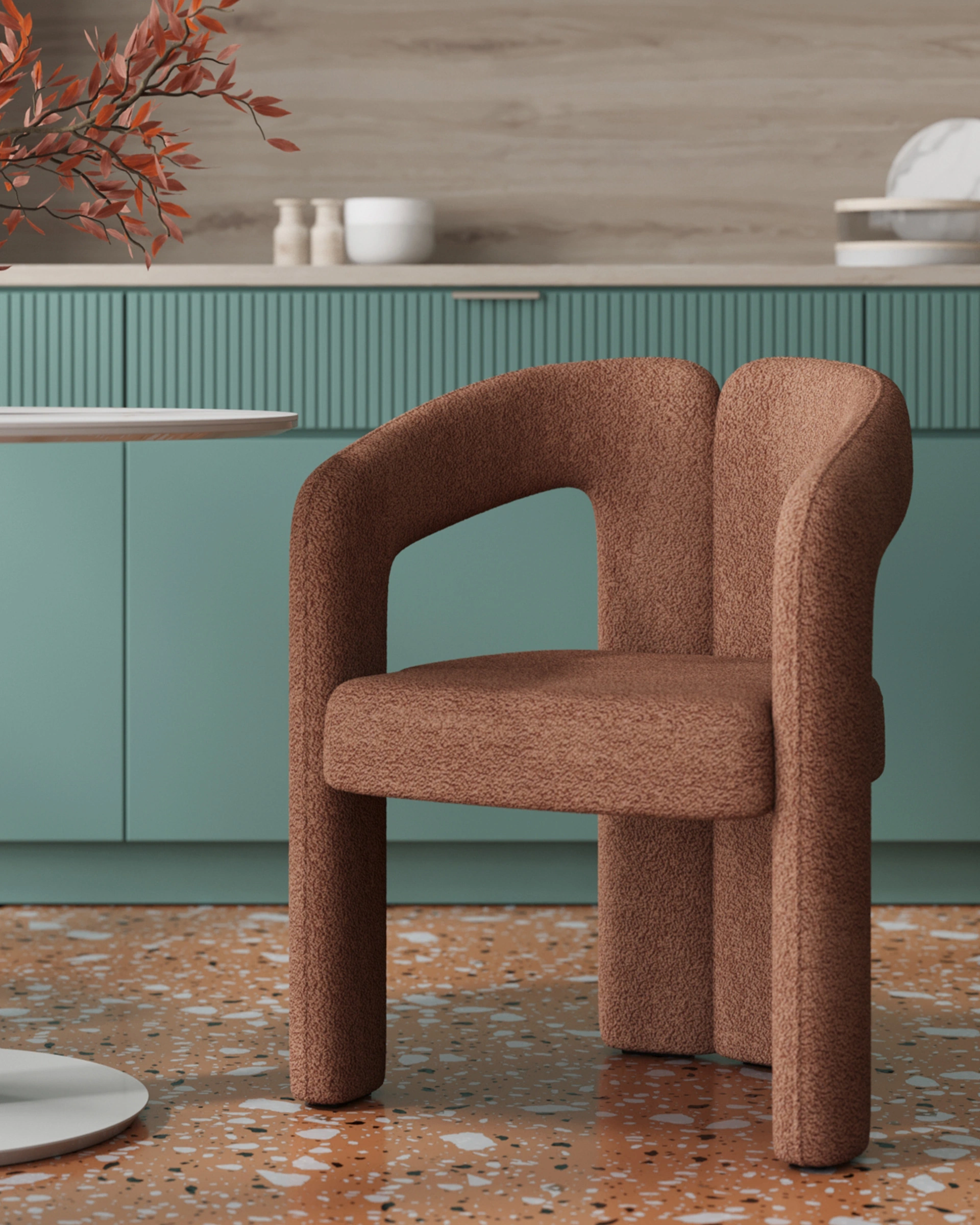 Идеальный выбор для стильного интерьераУниверсальный светло-серый оттенок и текстурная ткань букле легко сочетаются с современными интерьерами в стиле сканди, минимализм или модерн. Стул Болинджер станет не просто функциональной деталью, а выразительным элементом, который придаст пространству индивидуальность и уют.