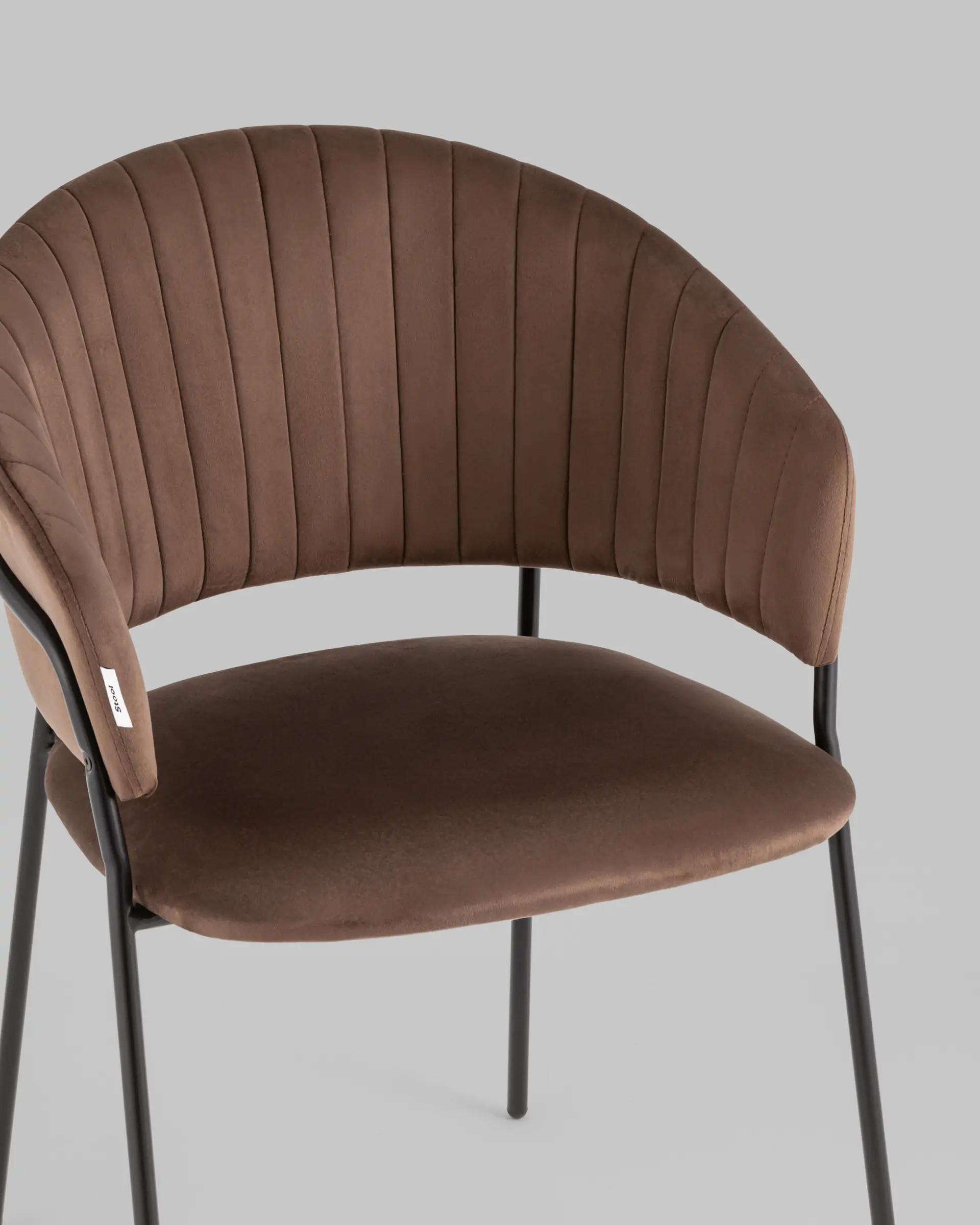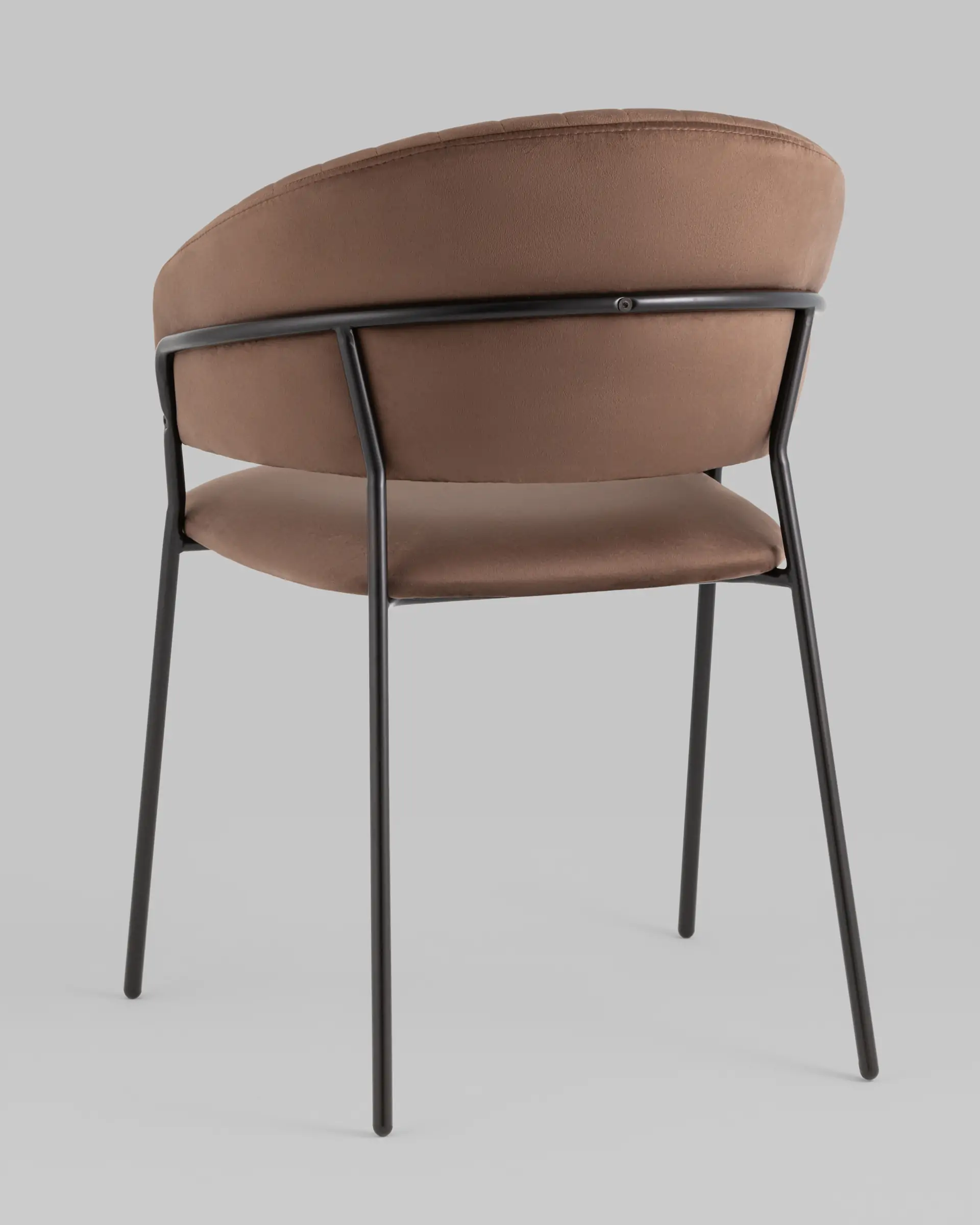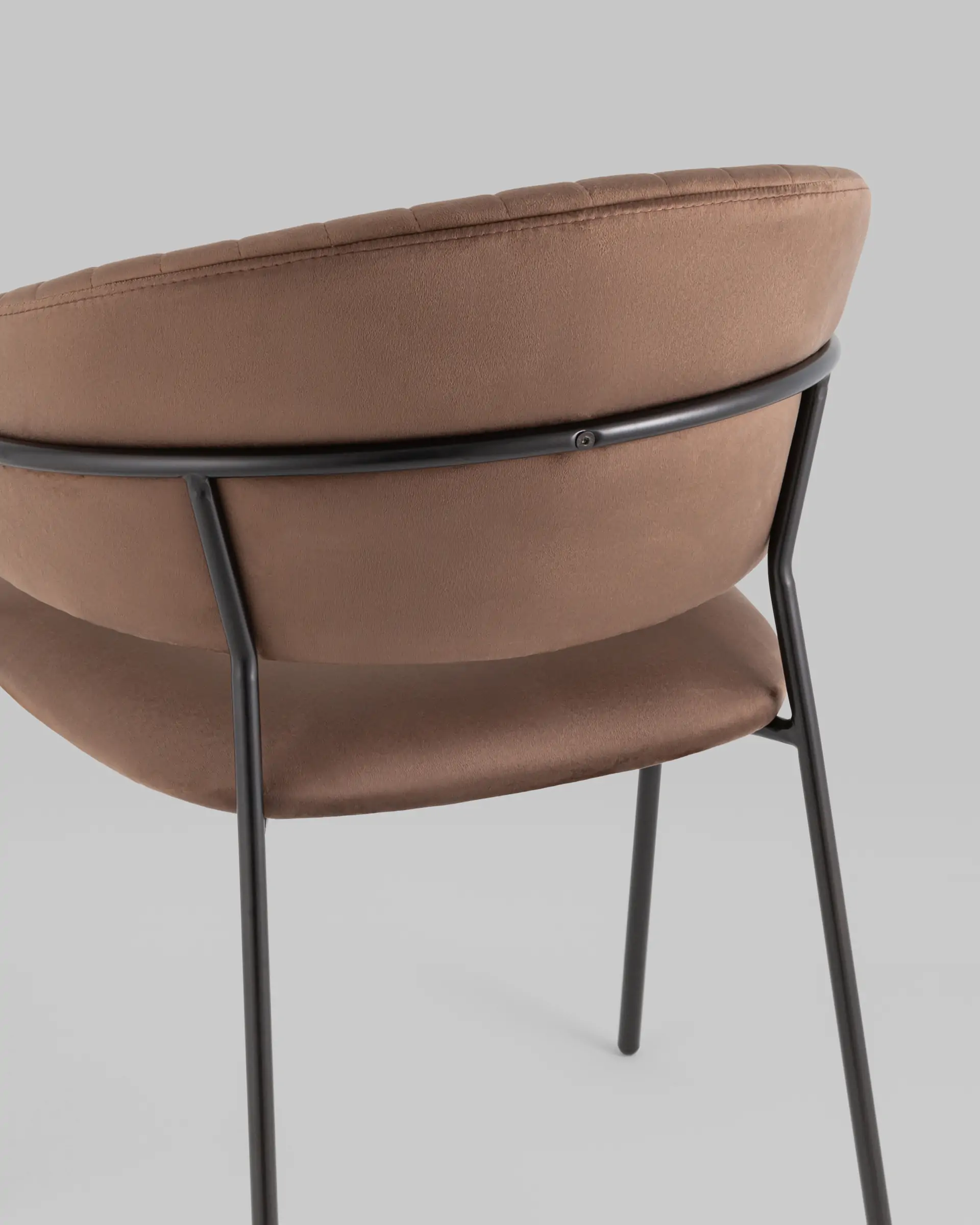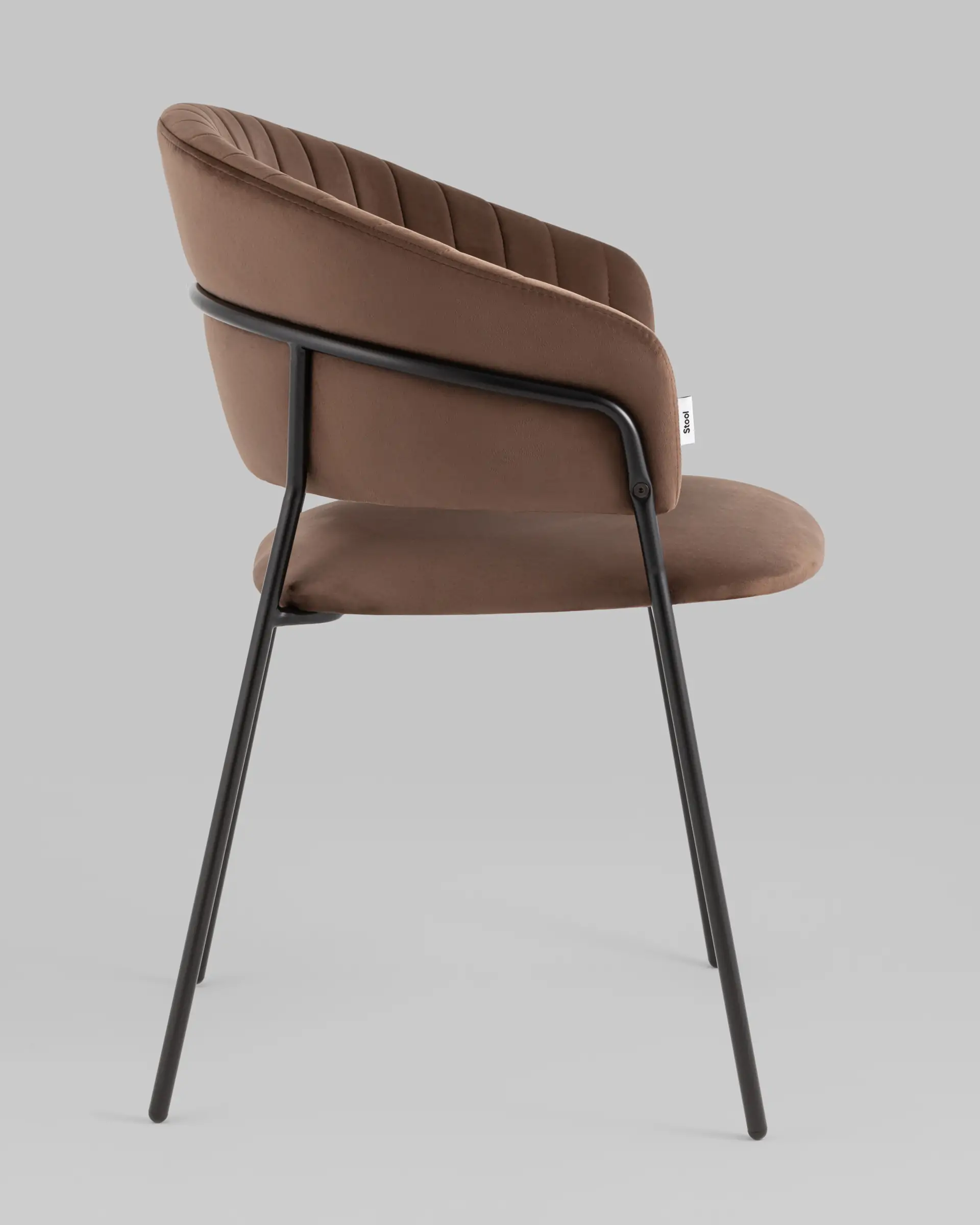 Стильный кухонный стул с оригинальной формой спинки, высокой поддержкой и подлокотниками. В качестве обивки используется мягкий велюр – приятный на ощупь износостойкий, гигроскопичный материал. Металлический каркас в черном цвете огибает спинку и выступает аккуратным акцентом модели. Широкое сиденье обеспечивает удобную посадку и уют.