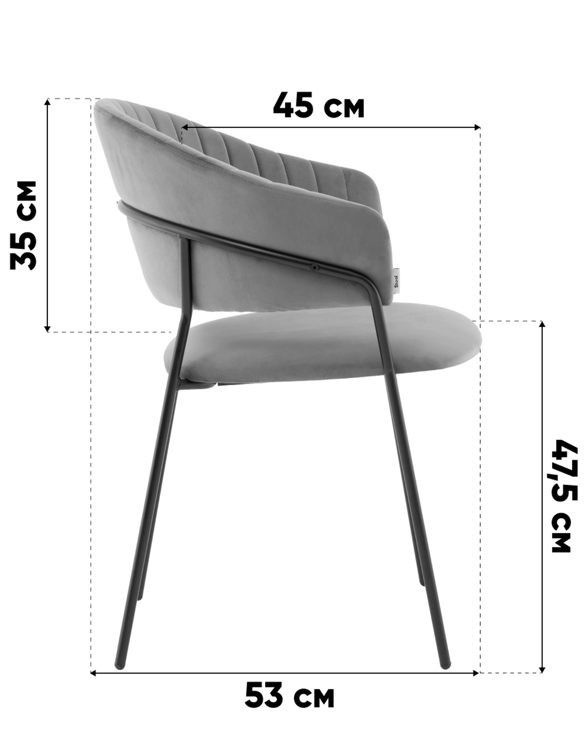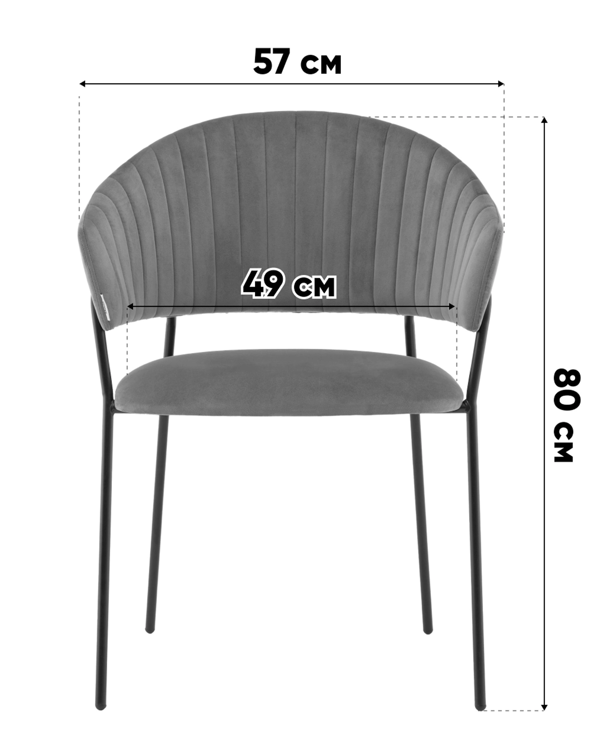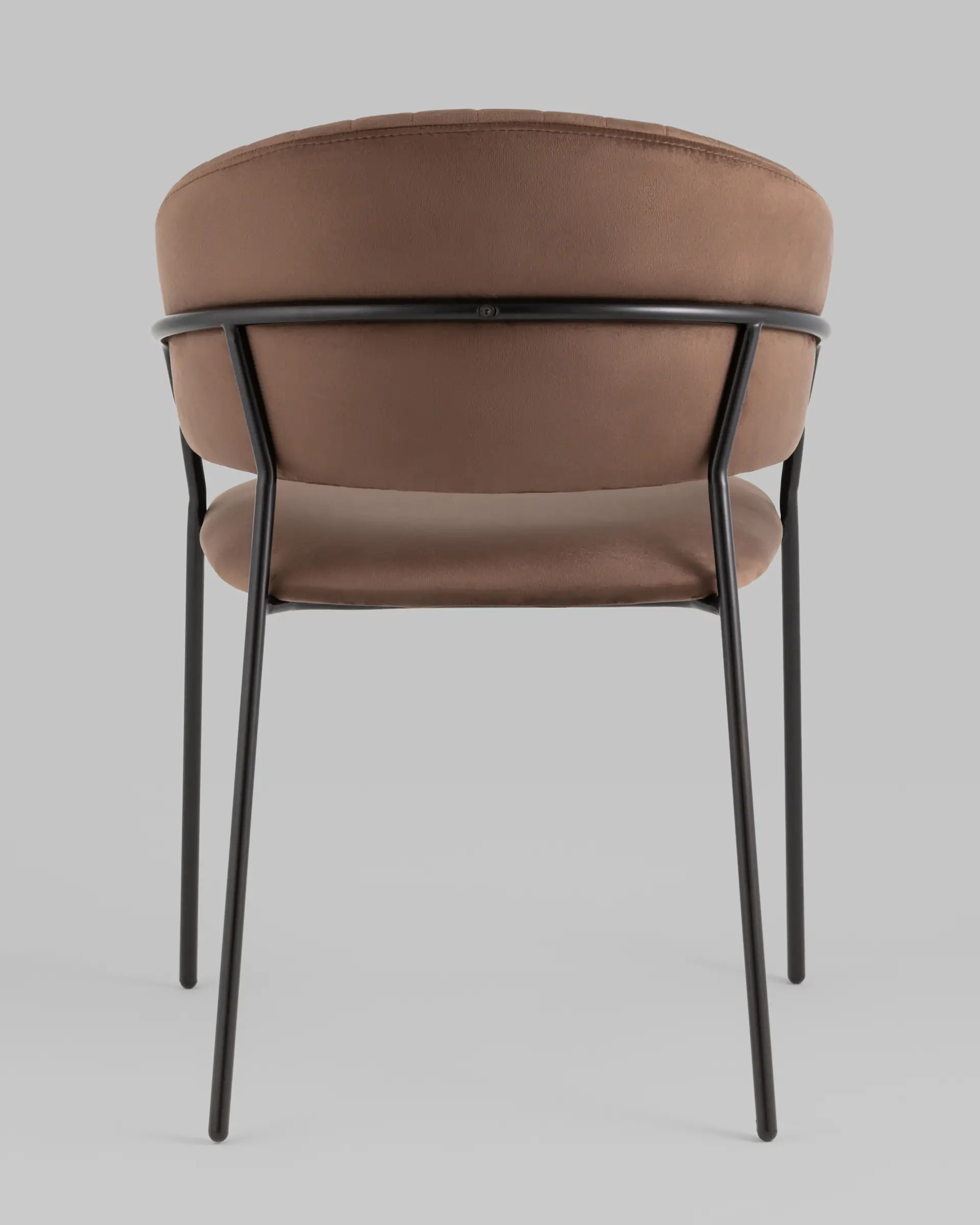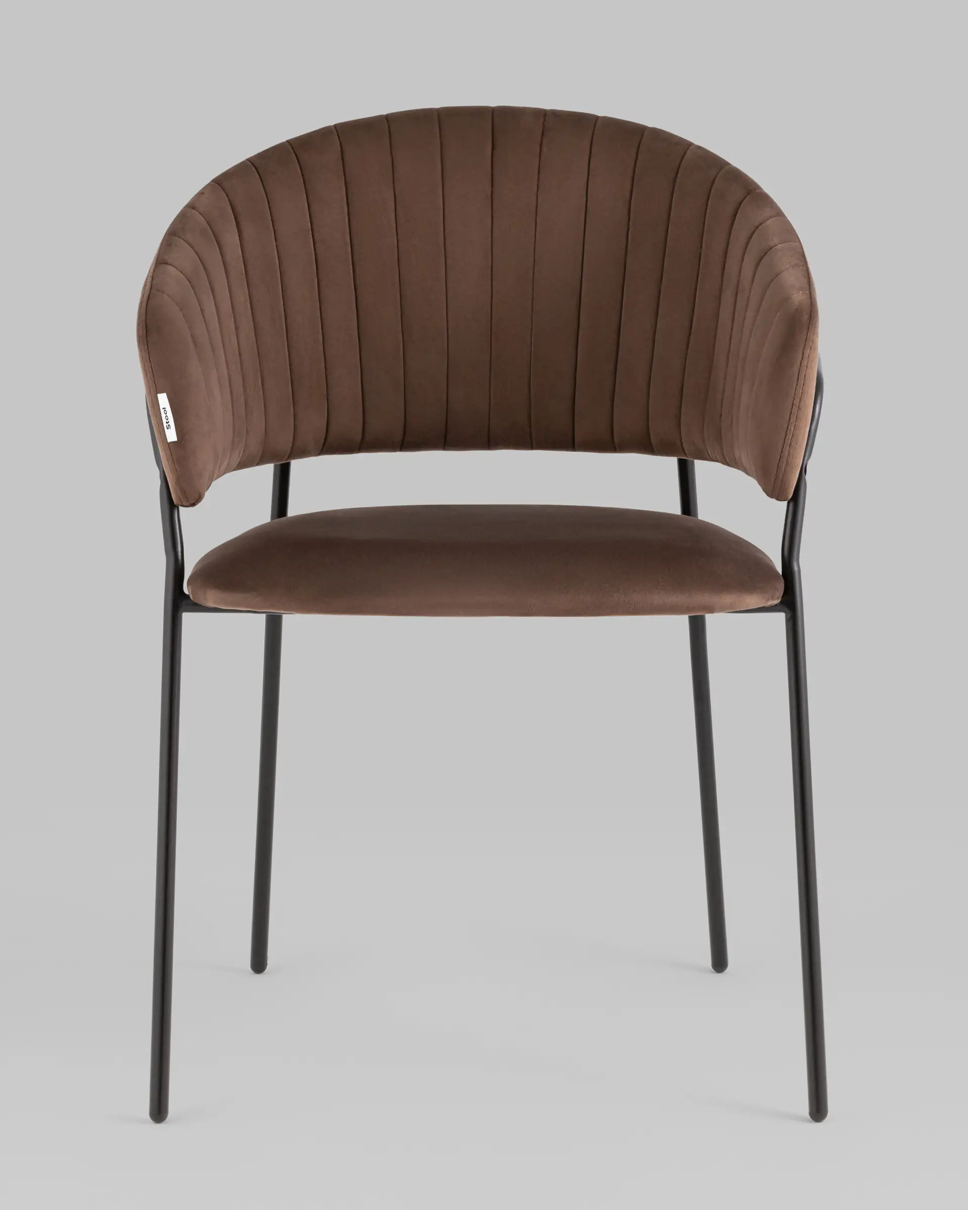 Стильный кухонный стул с оригинальной формой спинки, высокой поддержкой и подлокотниками. В качестве обивки используется мягкий велюр – приятный на ощупь износостойкий, гигроскопичный материал. Металлический каркас в черном цвете огибает спинку и выступает аккуратным акцентом модели. Широкое сиденье обеспечивает удобную посадку и уют.