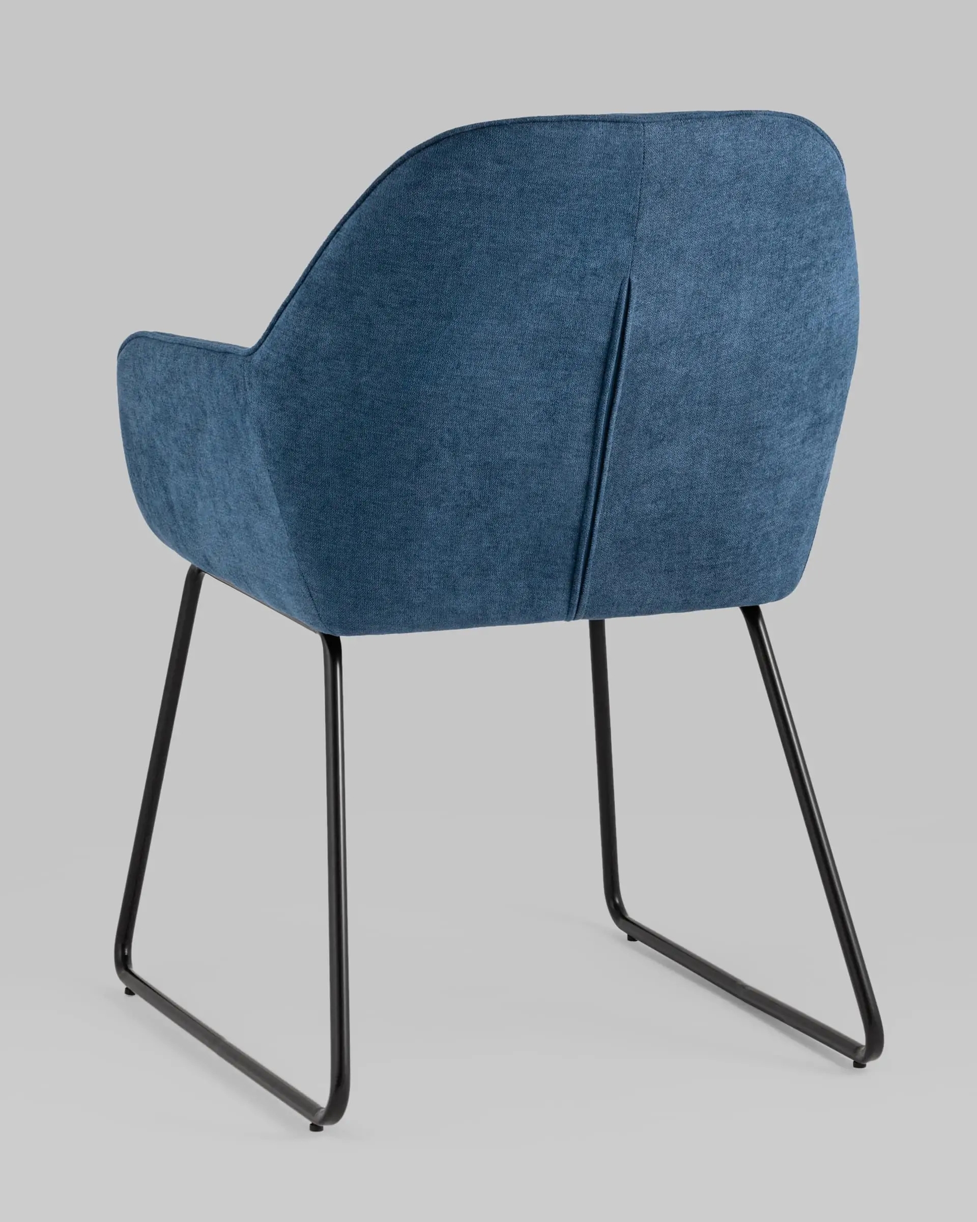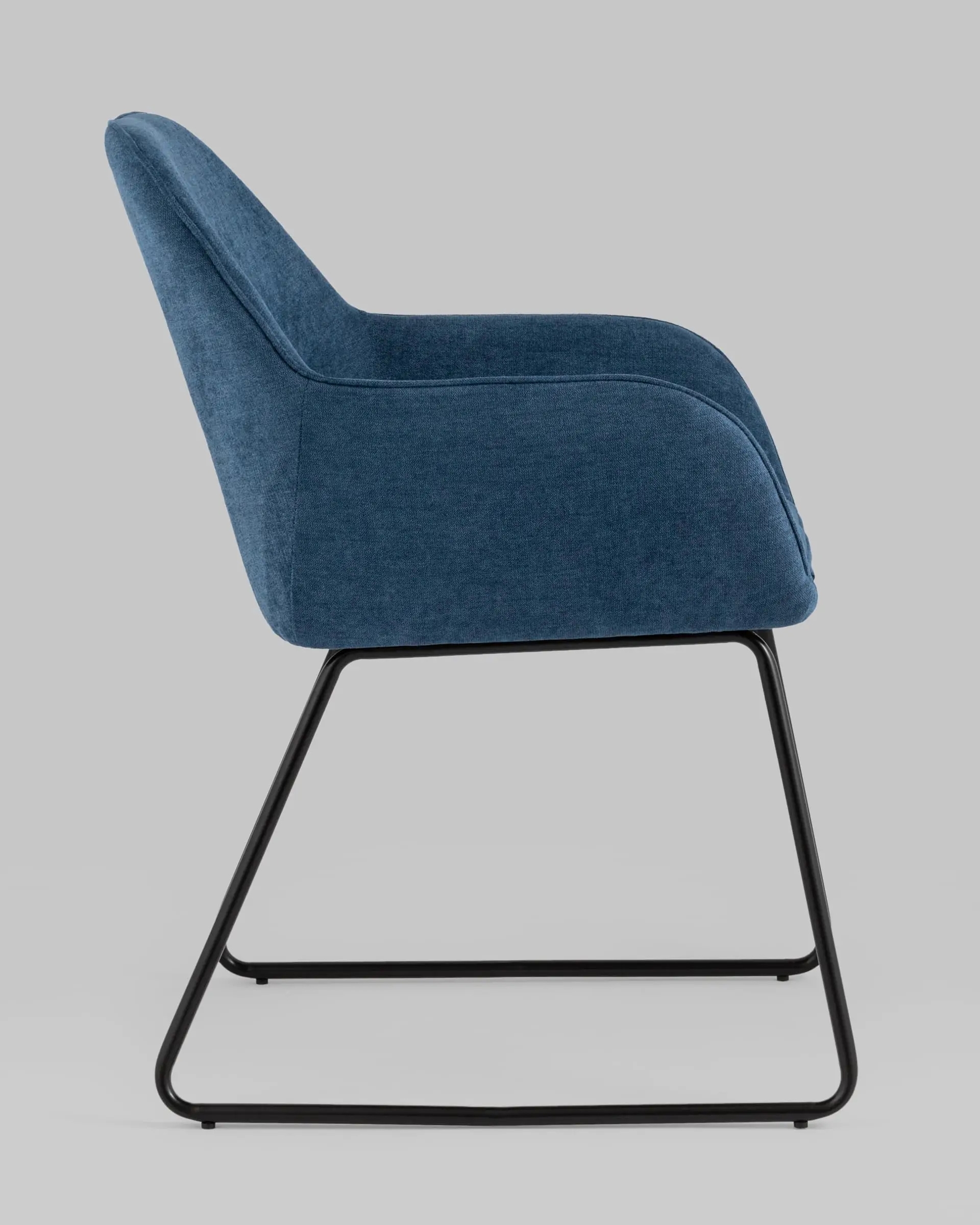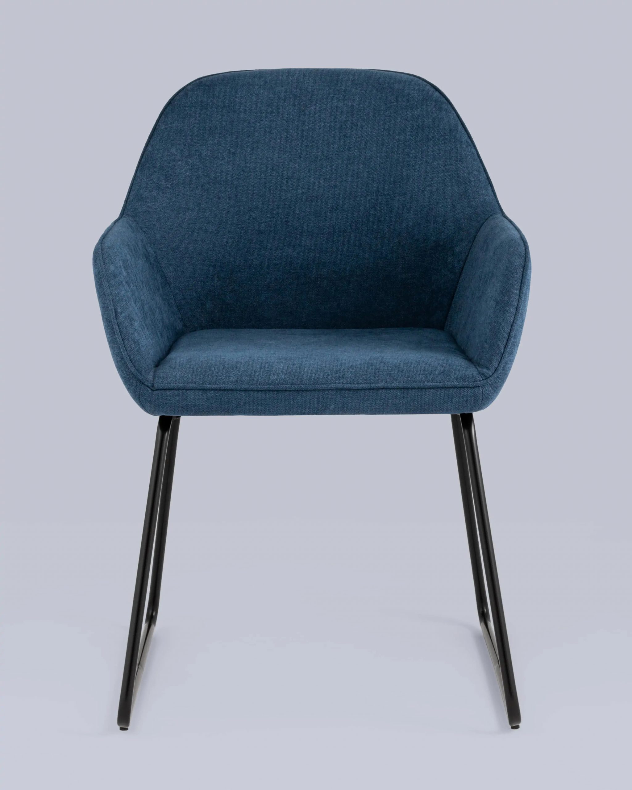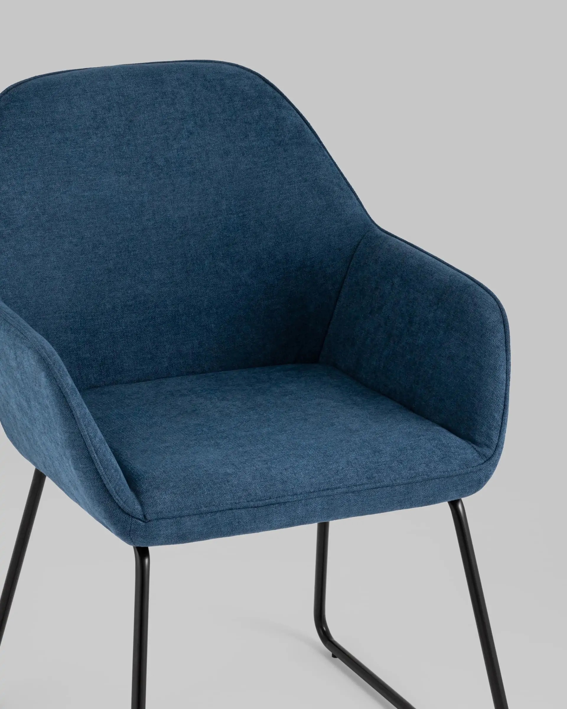 Мягкий обеденный стул на ножках-полозьях черного цвета.