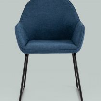 Мягкий обеденный стул на ножках-полозьях черного цвета.