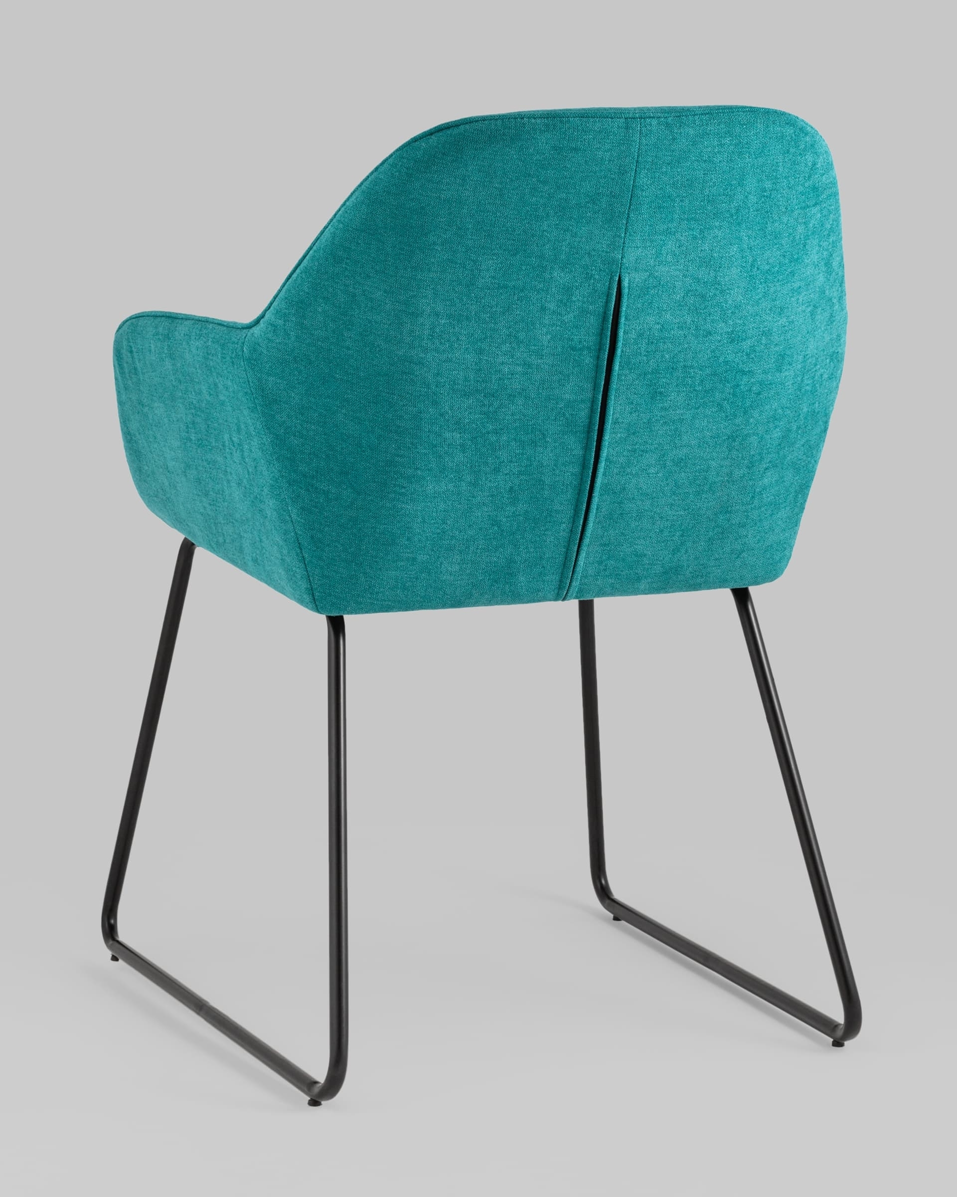 Мягкий обеденный стул на ножках-полозьях черного цвета.