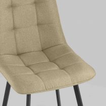 Классический обеденный стул без подлокотников на металлических ножках плоской формы. Мягкая обивка выполнена из рогожки — прочного и износостойкого материала. Внутренняя сторона сиденья и спинки украшена геометричной строчкой.