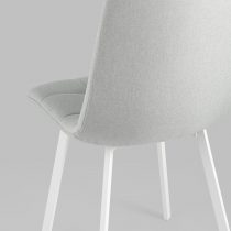 Классический обеденный стул без подлокотников на металлических ножках плоской формы. Мягкая обивка выполнена из рогожки — прочного и износостойкого материала. Внутренняя сторона сиденья и спинки украшена геометричной строчкой.