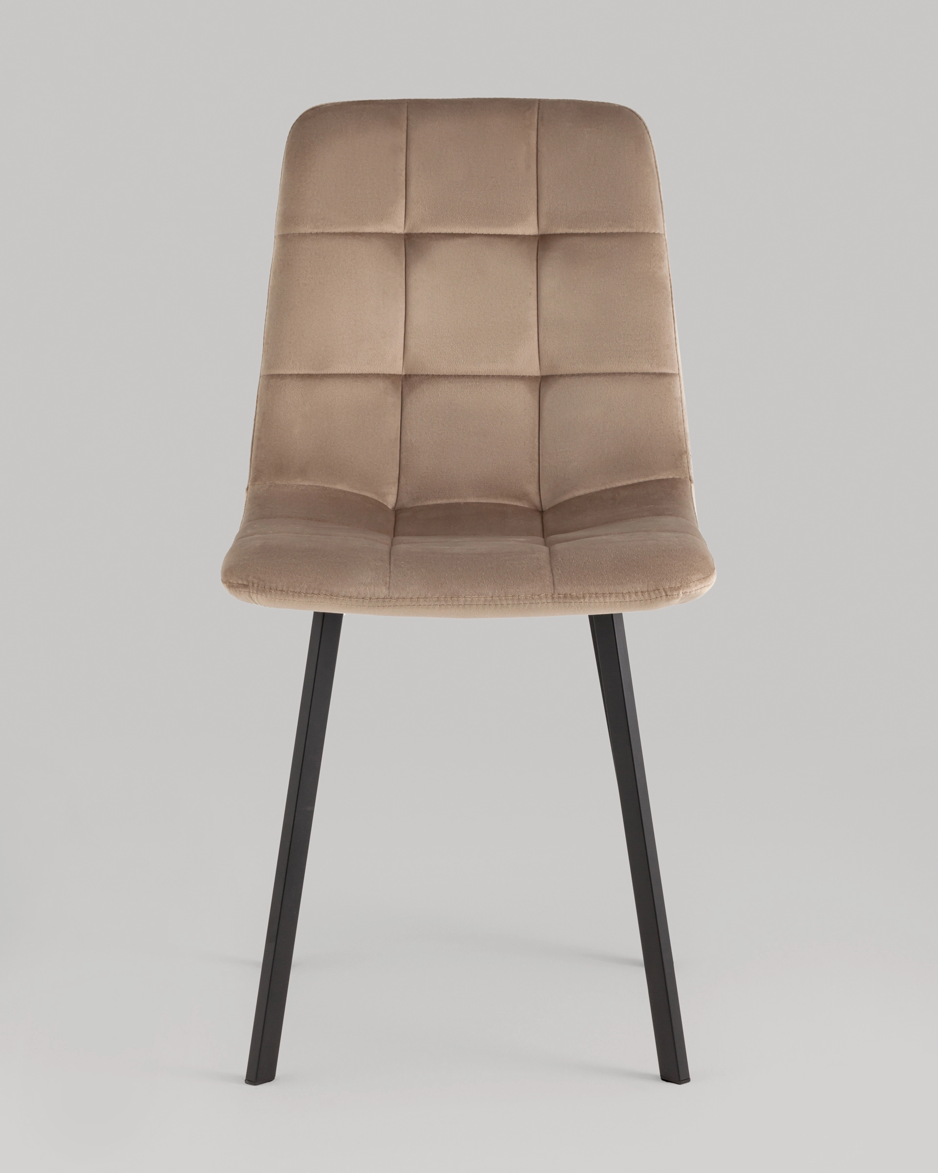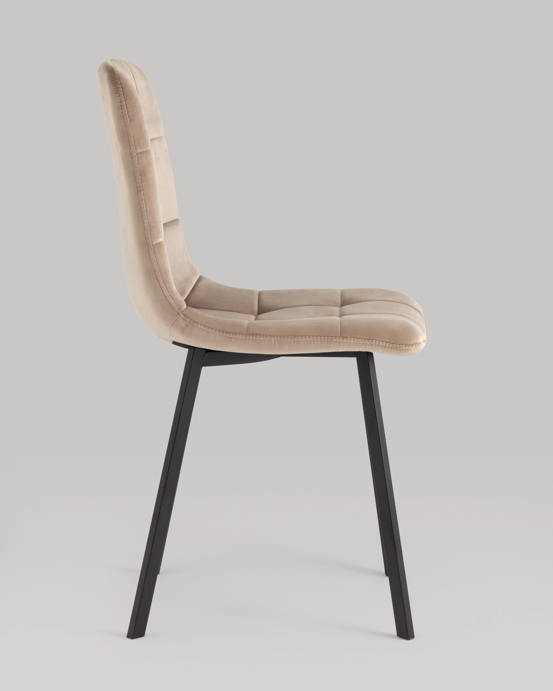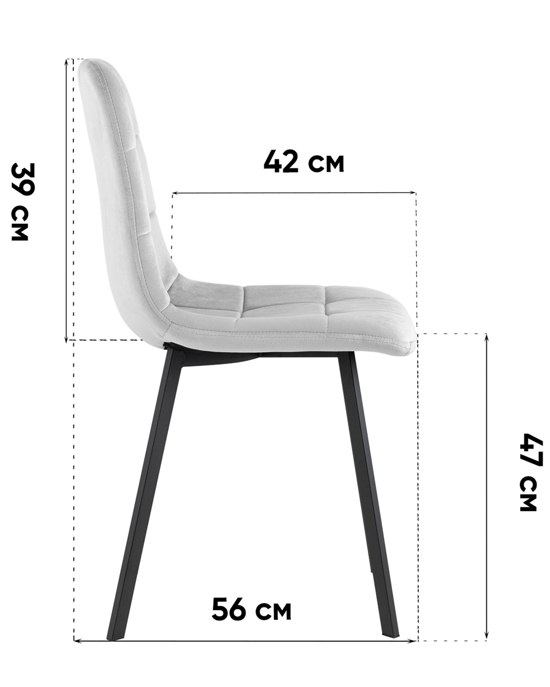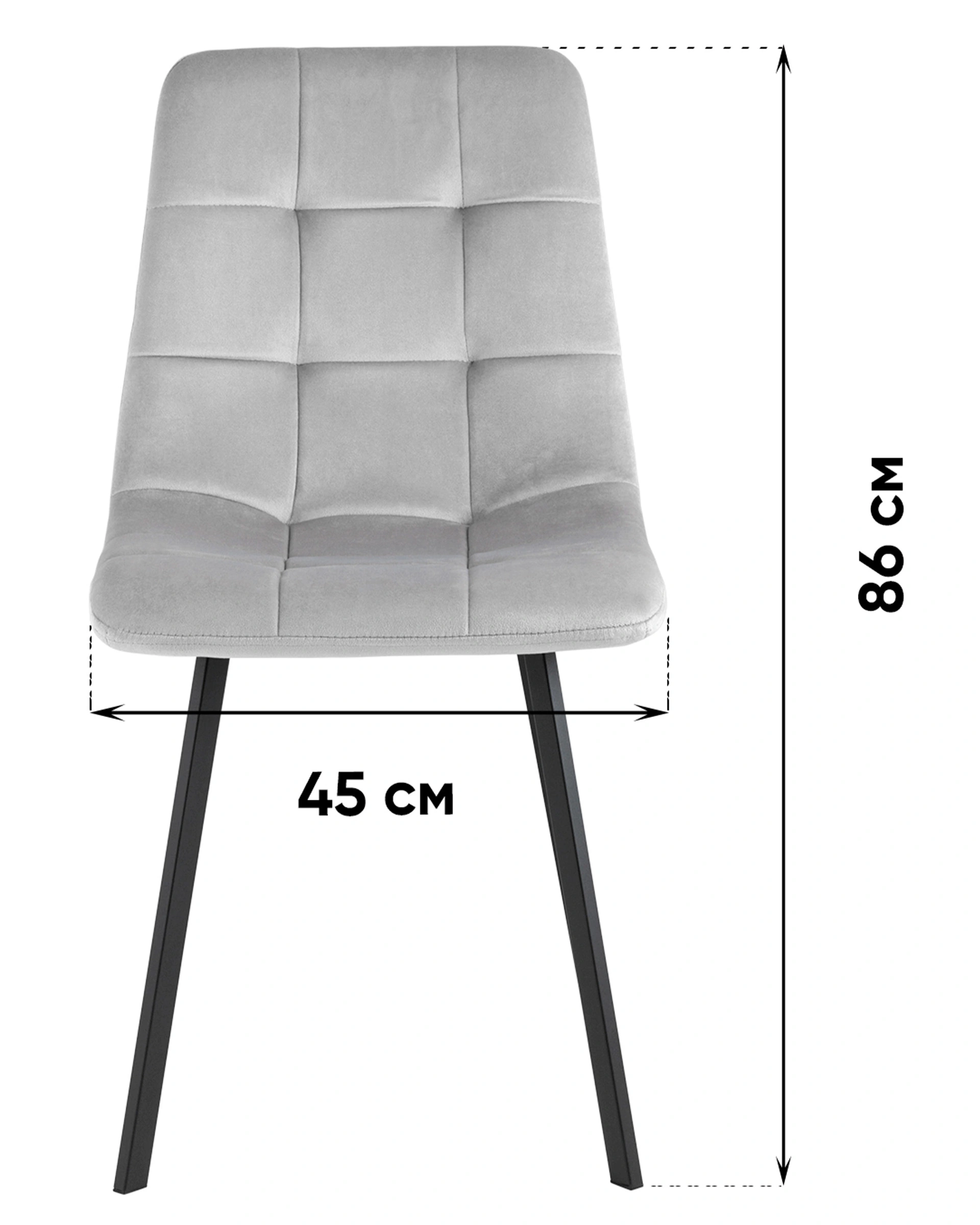 Классический обеденный стул без подлокотников на металлических ножках плоской формы. Мягкая обивка выполнена из велюра – прочного, износостойкого и приятного на ощупь материала. Внутренняя сторона сиденья и спинки украшена геометричной строчкой.