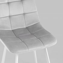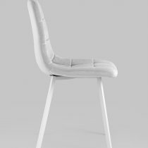 Классический обеденный стул без подлокотников на металлических ножках плоской формы. Мягкая обивка выполнена из велюра – прочного, износостойкого и приятного на ощупь материала. Внутренняя сторона сиденья и спинки украшена геометричной строчкой.