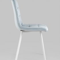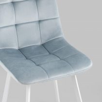 Классический обеденный стул без подлокотников на металлических ножках плоской формы. Мягкая обивка выполнена из велюра – прочного, износостойкого и приятного на ощупь материала. Внутренняя сторона сиденья и спинки украшена геометричной строчкой.
