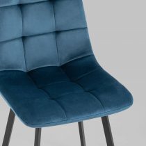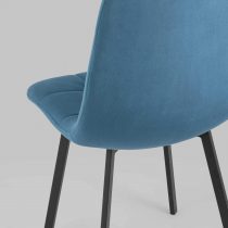 Классический обеденный стул без подлокотников на металлических ножках плоской формы. Мягкая обивка выполнена из велюра – прочного, износостойкого и приятного на ощупь материала. Внутренняя сторона сиденья и спинки украшена геометричной строчкой.