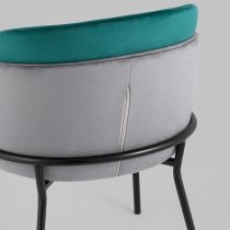 Стильный двухцветный кухонный стул с обивкой из велюра. Надежная опора достигается благодаря металлическому каркасу, которая создает дополнительную поддержку спинки стула и ножкам. Прочные ножки оснащены подпятниками, которые препятствуют скольжению и защищают напольное покрытие от повреждений. Удобная спинка состоит из двух элементов, внутренняя часть акцентно выделяется цветом и дополнена вертикальной строчкой.