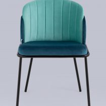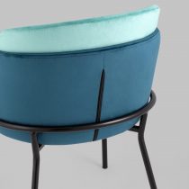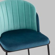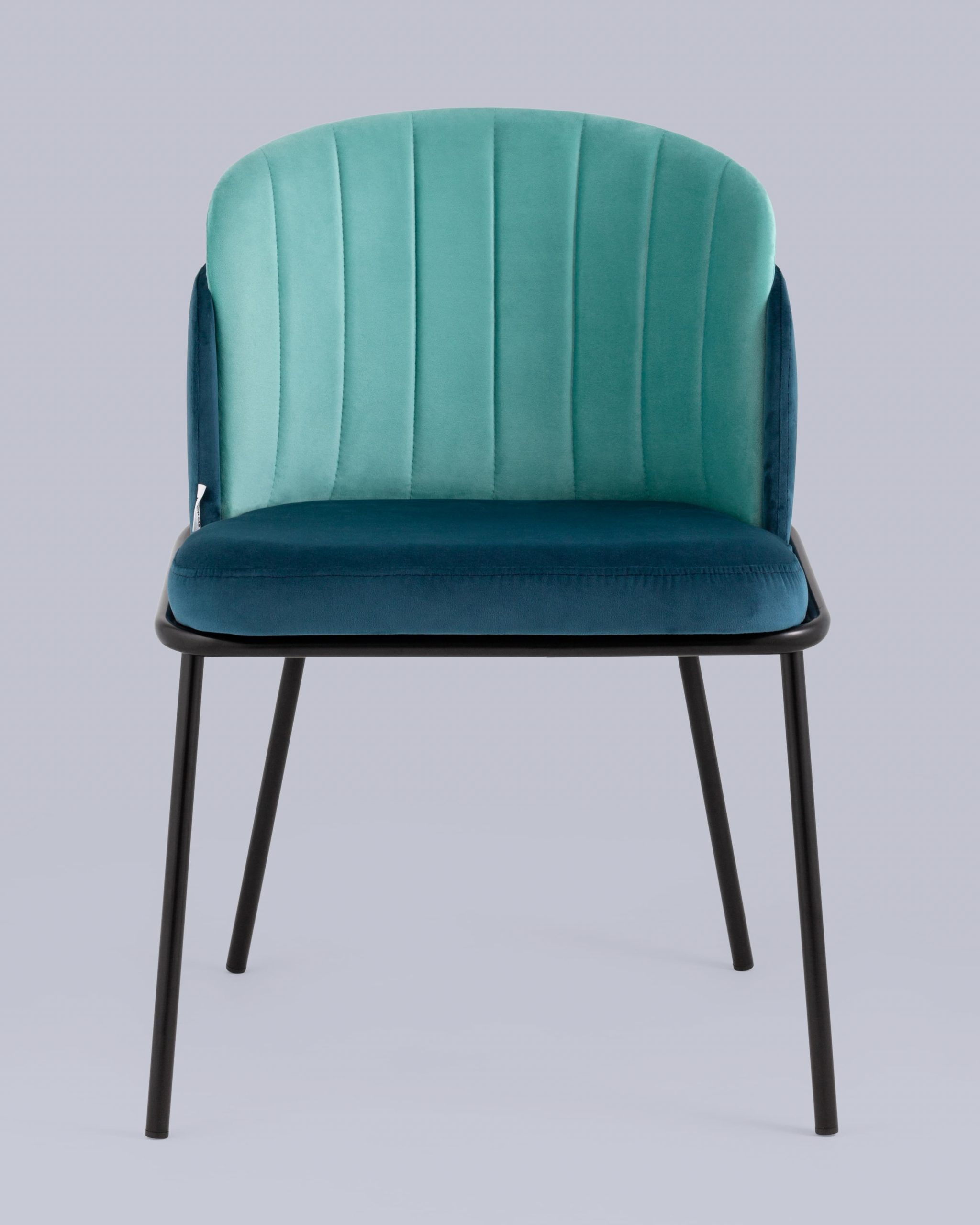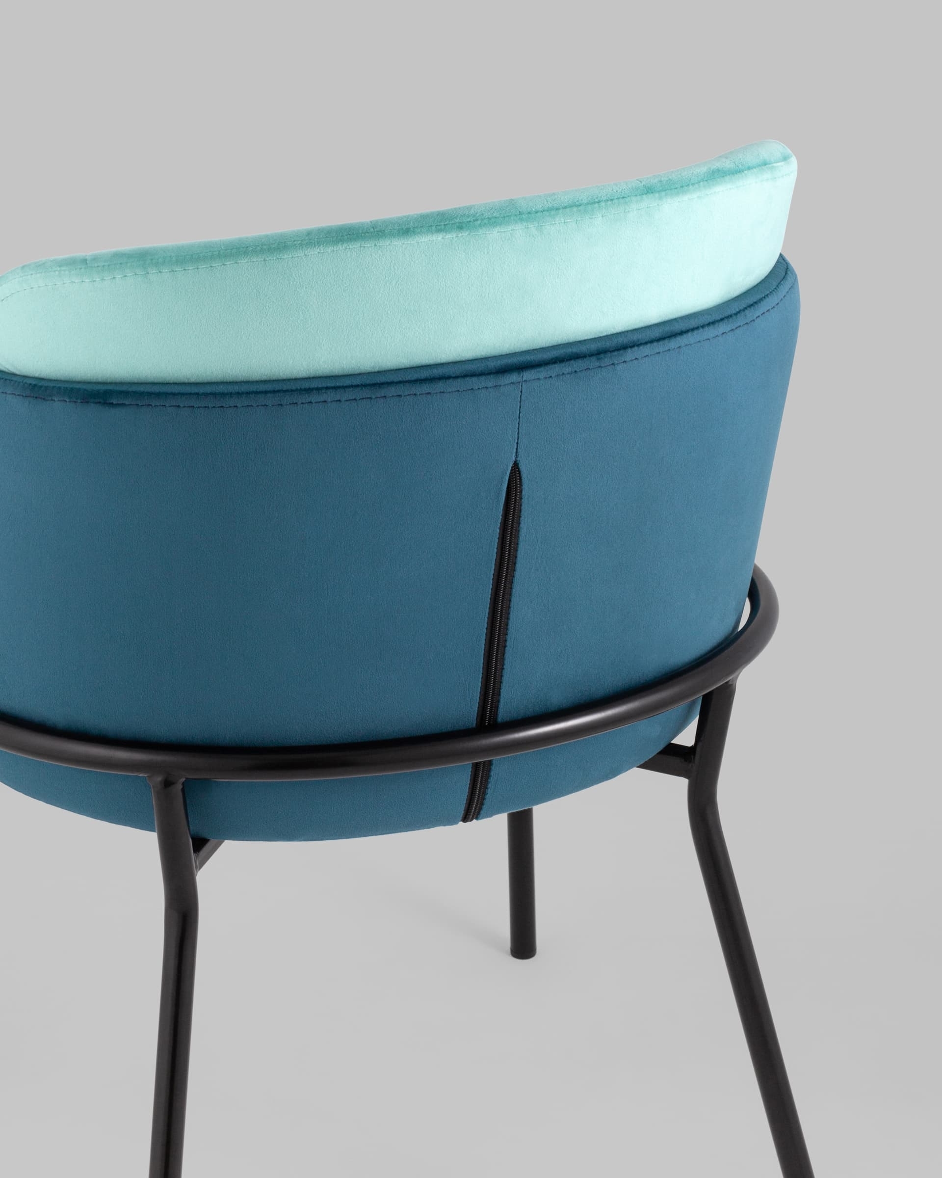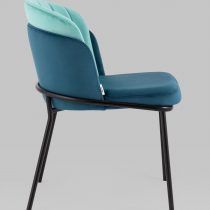 Стильный двухцветный кухонный стул с обивкой из велюра. Надежная опора достигается благодаря металлическому каркасу, которая создает дополнительную поддержку спинки стула и ножкам. Прочные ножки оснащены подпятниками, которые препятствуют скольжению и защищают напольное покрытие от повреждений. Удобная спинка состоит из двух элементов,  внутренняя часть акцентно выделяется цветом и дополнена вертикальной строчкой.