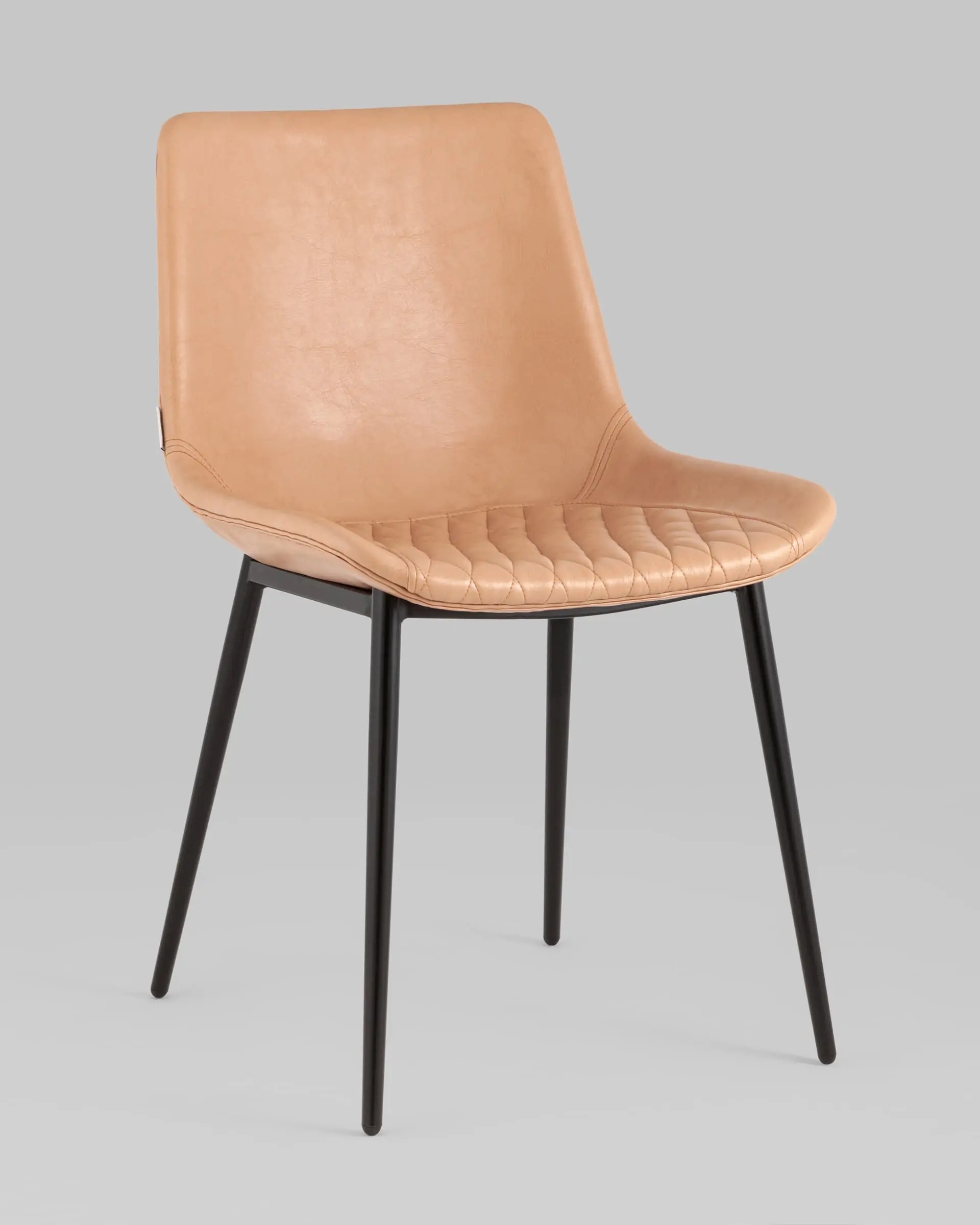 Комфортная посадка обеспечивается за счет широкого сиденья и плавной спинки. Декоративная стяжка в виде ромбов подчеркивает стильный дизайн стула и добавляет мягкость сиденью. Прочный металлический каркас выдерживает нагрузку до 120 кг. Ножки оснащены полукруглыми подпятниками для защиты напольного покрытия.
