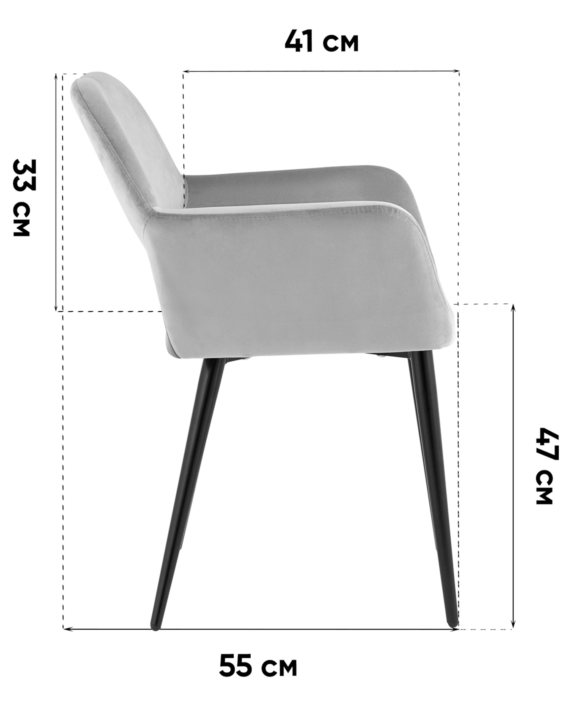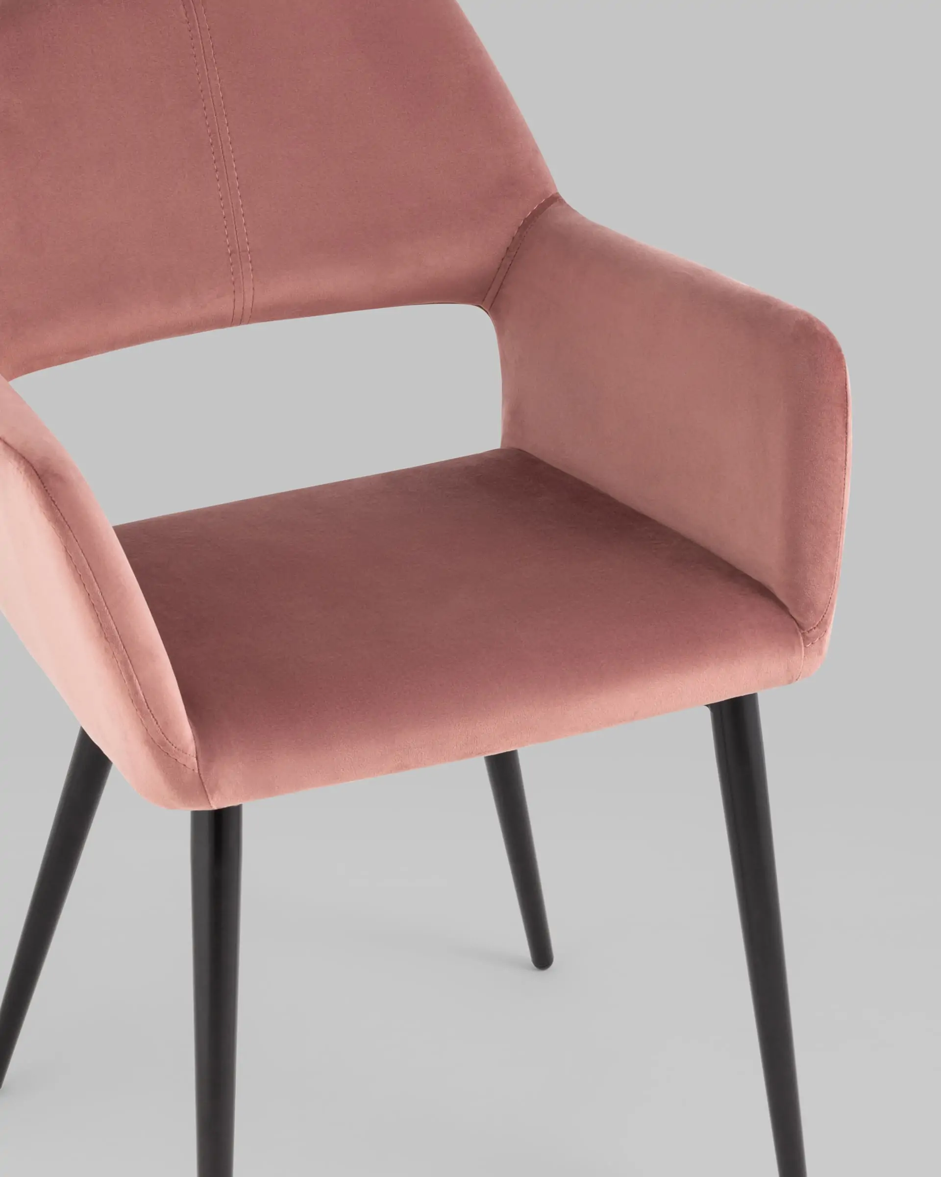 Стильный стул с подлокотниками Денди. Удобная полуоткрытая спинка и мягкие подлокотники обеспечат комфорт во время длительной работы или отдыха. Металлические ножки в черном цвете оснащены подпятниками для предотвращения скольжения и порчи напольного покрытия. Стул выдерживает нагрузку до 100 кг. Лаконичный дизайн дополнит любой интерьер современный и кухни, бара или кафе.