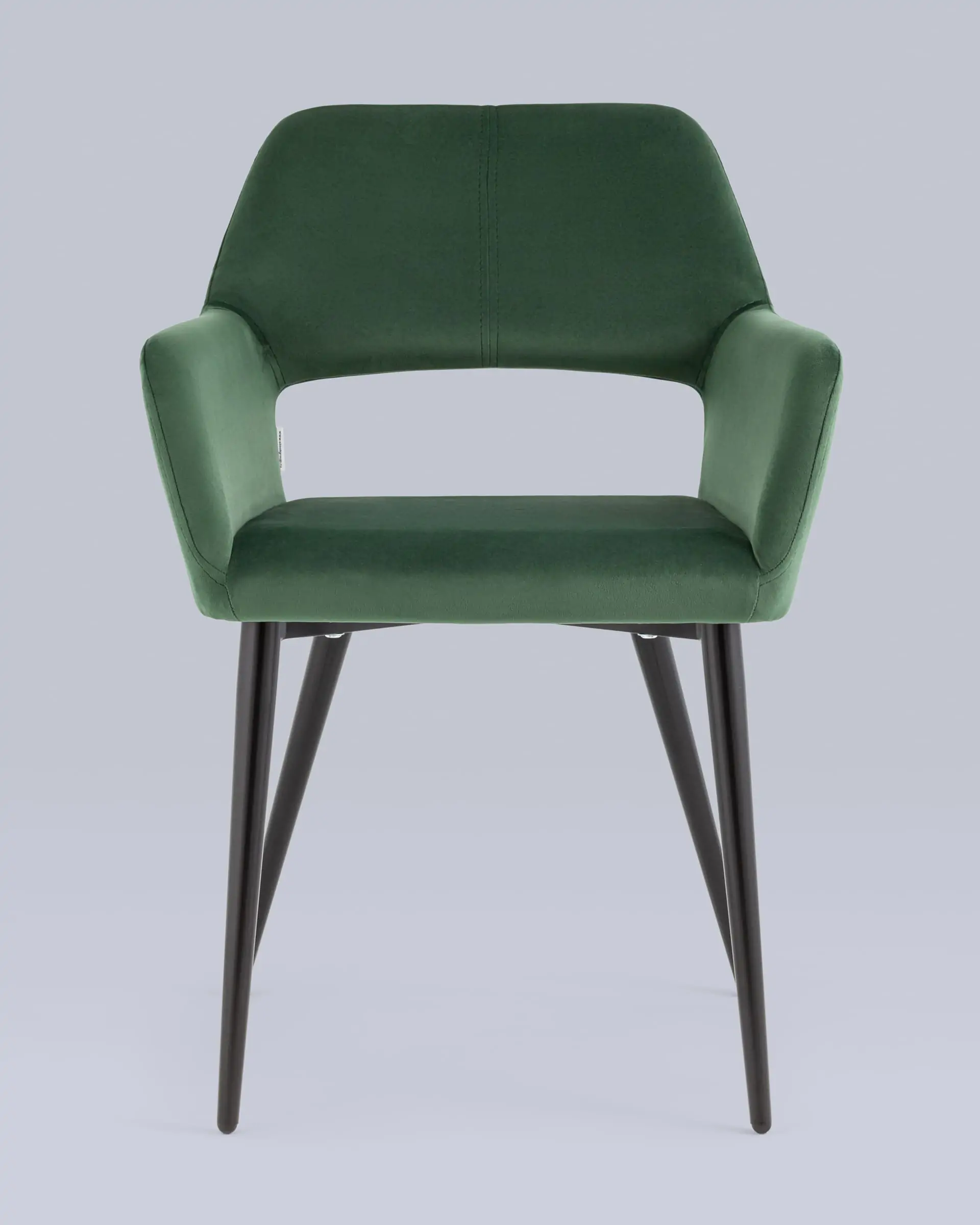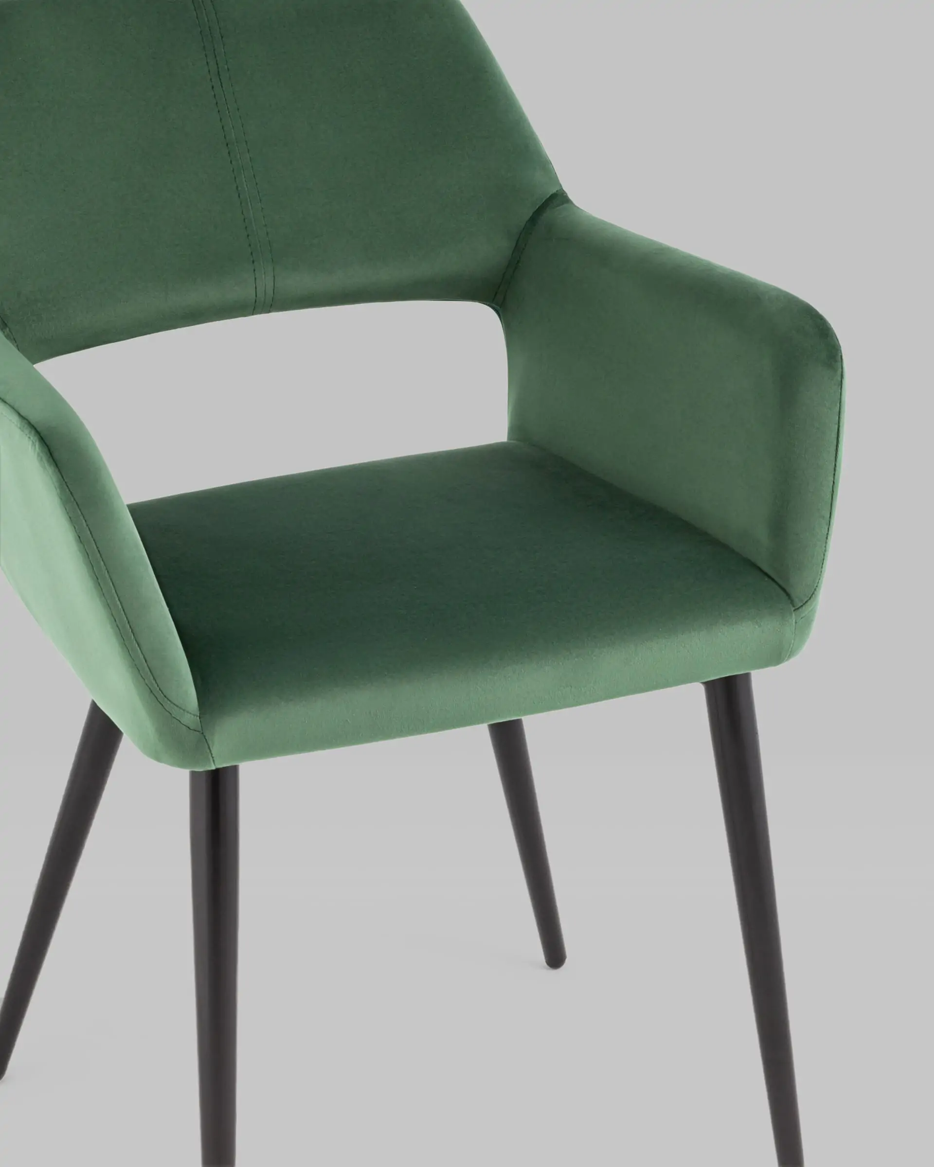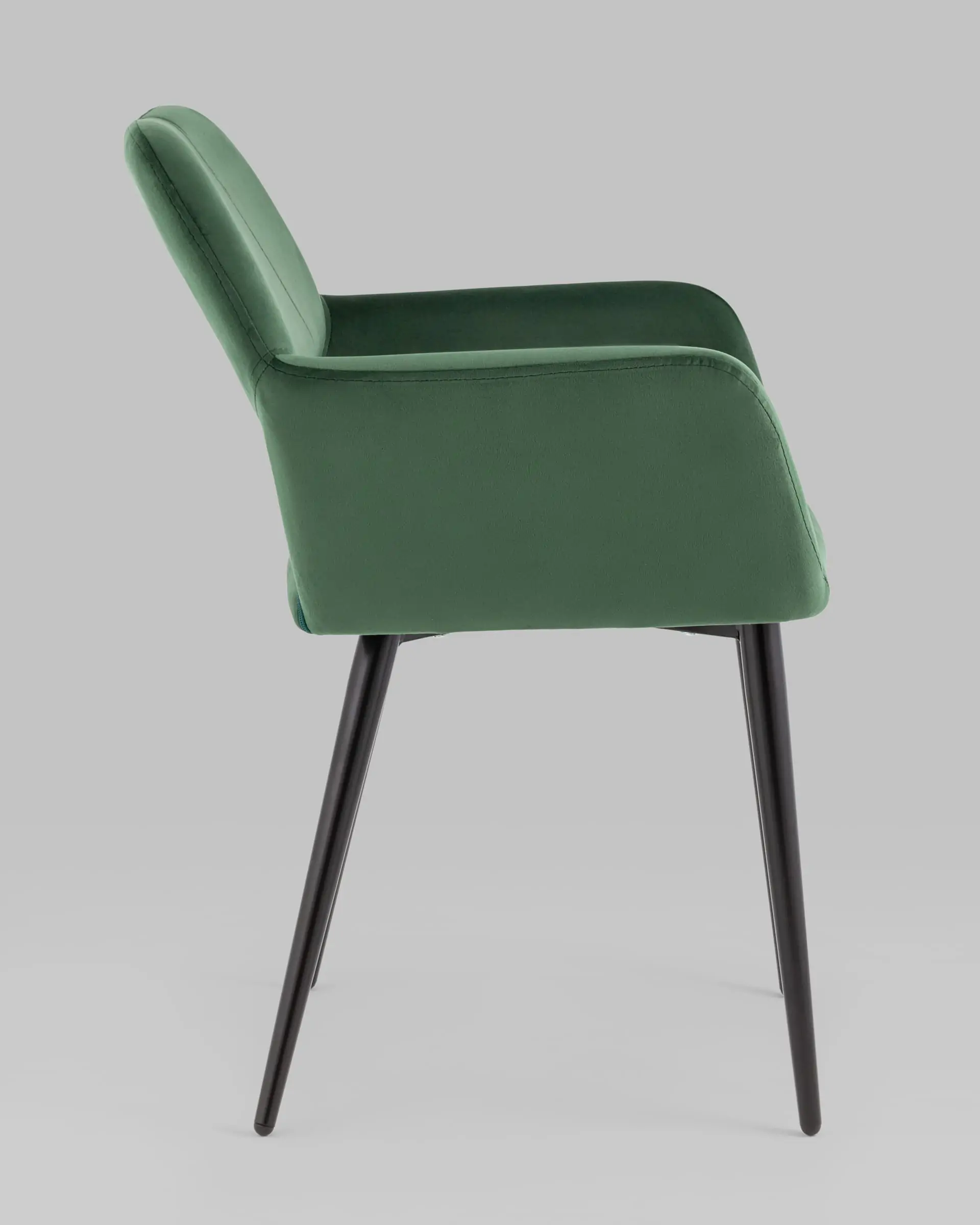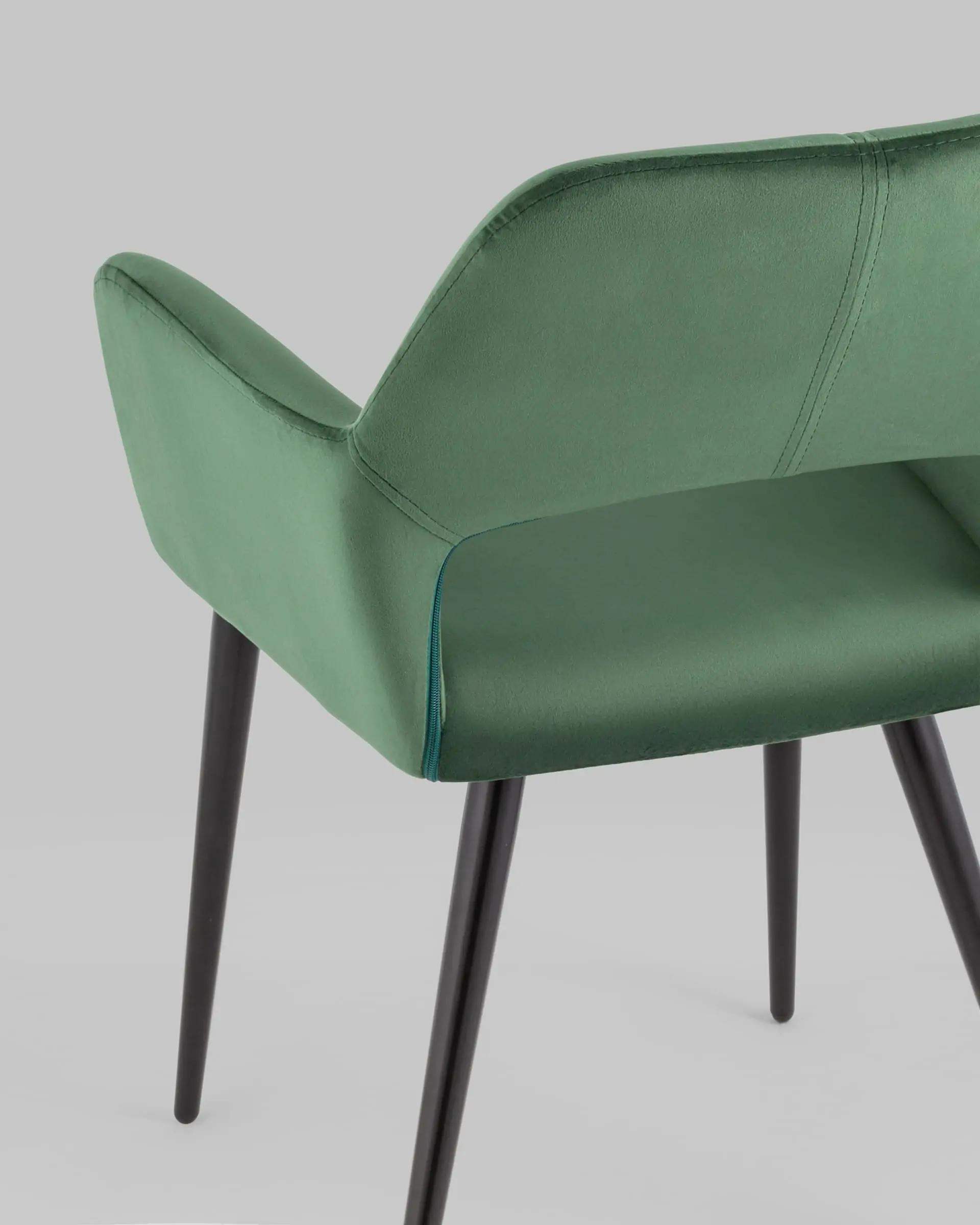 Стильный стул с подлокотниками Денди. Удобная полуоткрытая спинка и мягкие подлокотники обеспечат комфорт во время длительной работы или отдыха. Металлические ножки в черном цвете оснащены подпятниками для предотвращения скольжения и порчи напольного покрытия. Стул выдерживает нагрузку до 100 кг. Лаконичный дизайн дополнит любой интерьер современный и кухни, бара или кафе.