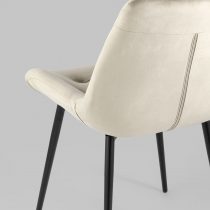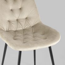 Кухонный стул в мягкой обивке из велюра без подлокотников. Внутренняя сторона спинки украшена декоративной строчкой.