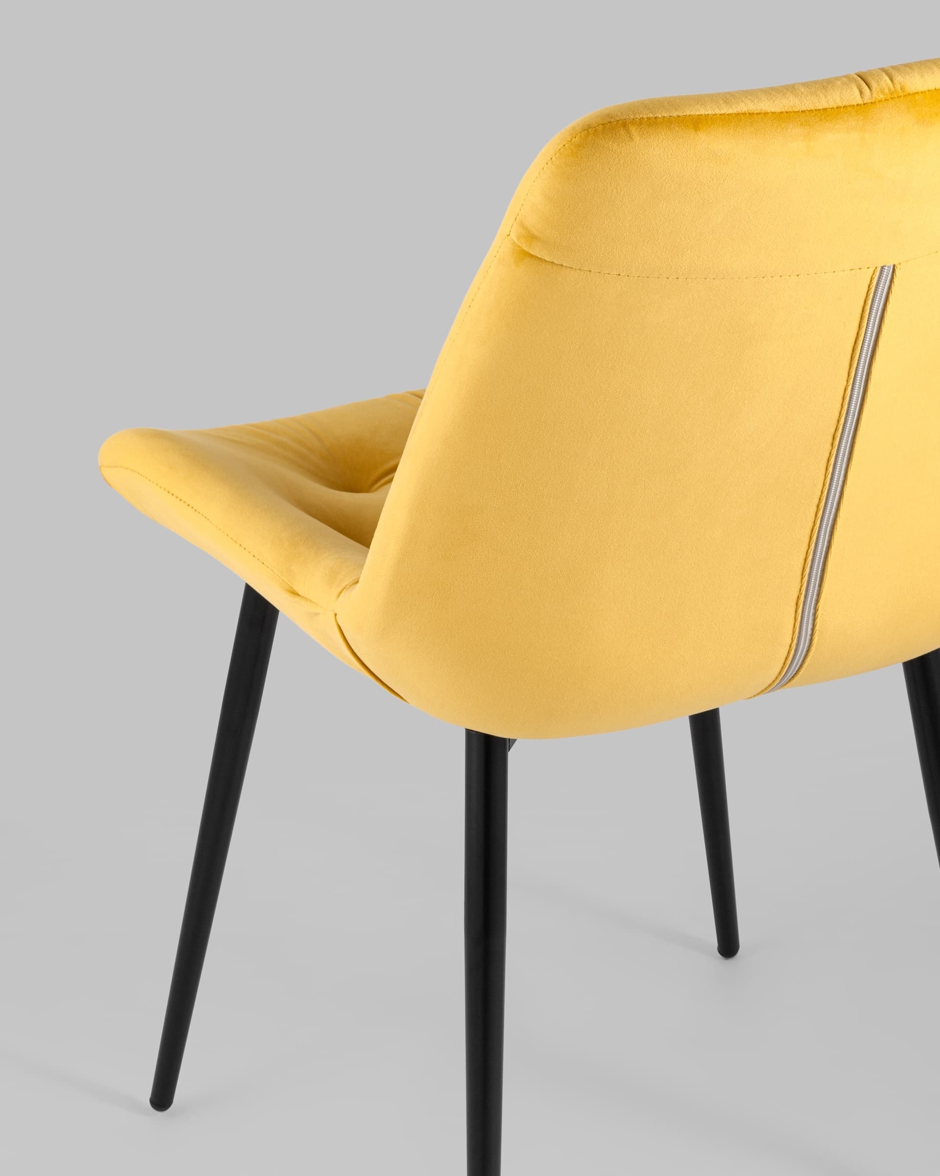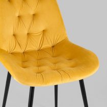 Кухонный стул в мягкой обивке из велюра без подлокотников. Внутренняя сторона спинки украшена декоративной строчкой.