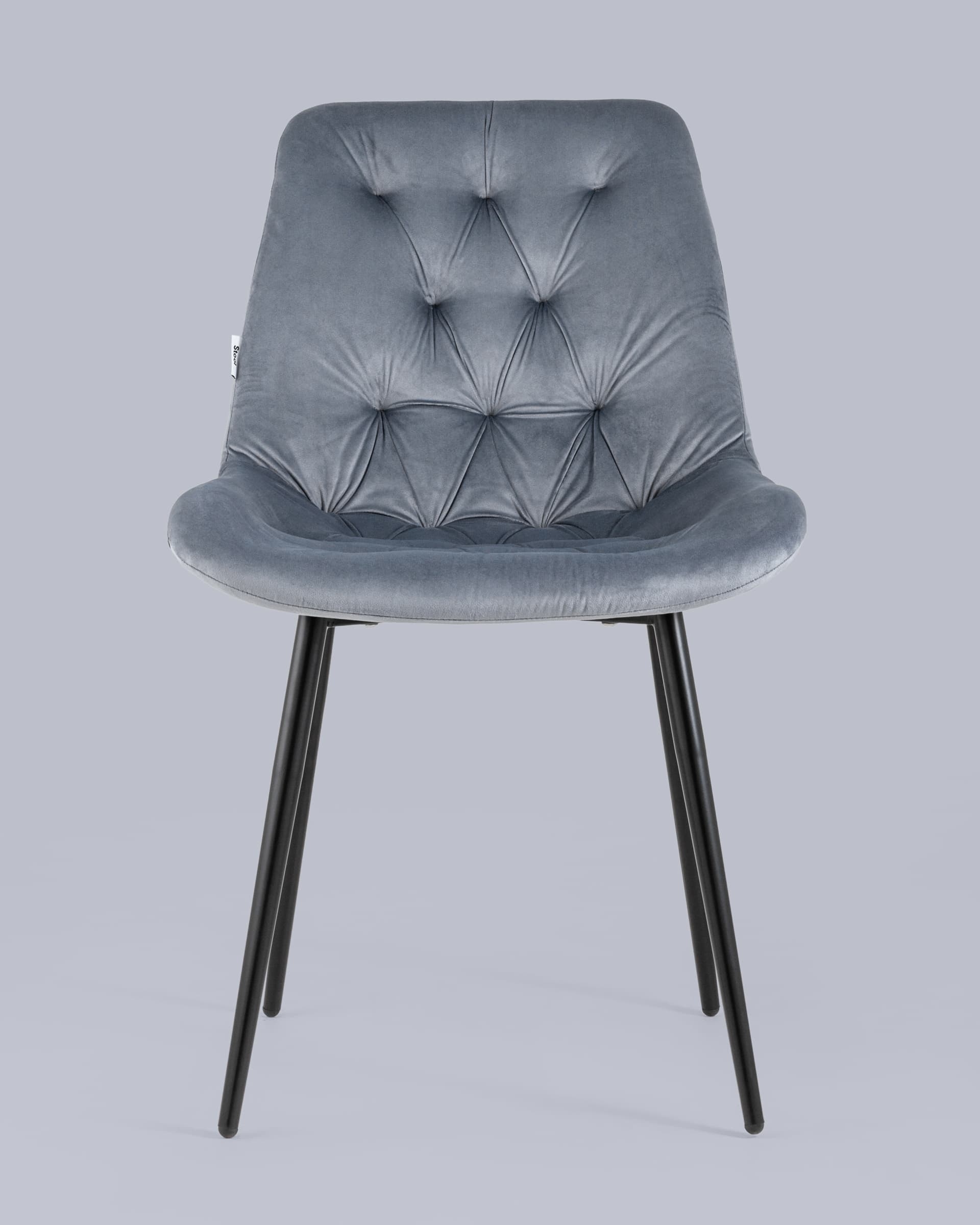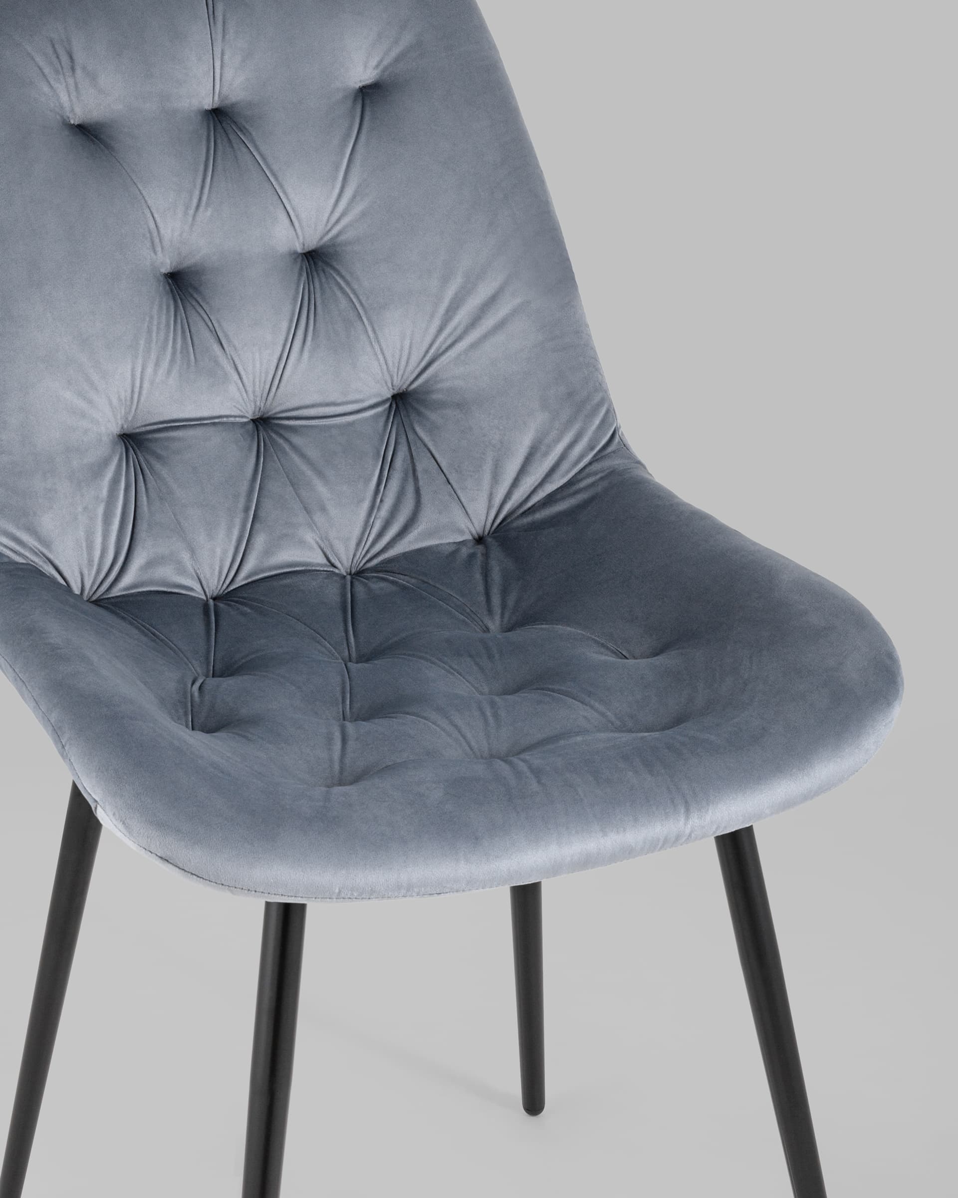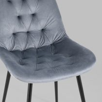 Кухонный стул в мягкой обивке из велюра без подлокотников. Внутренняя сторона спинки украшена декоративной строчкой.