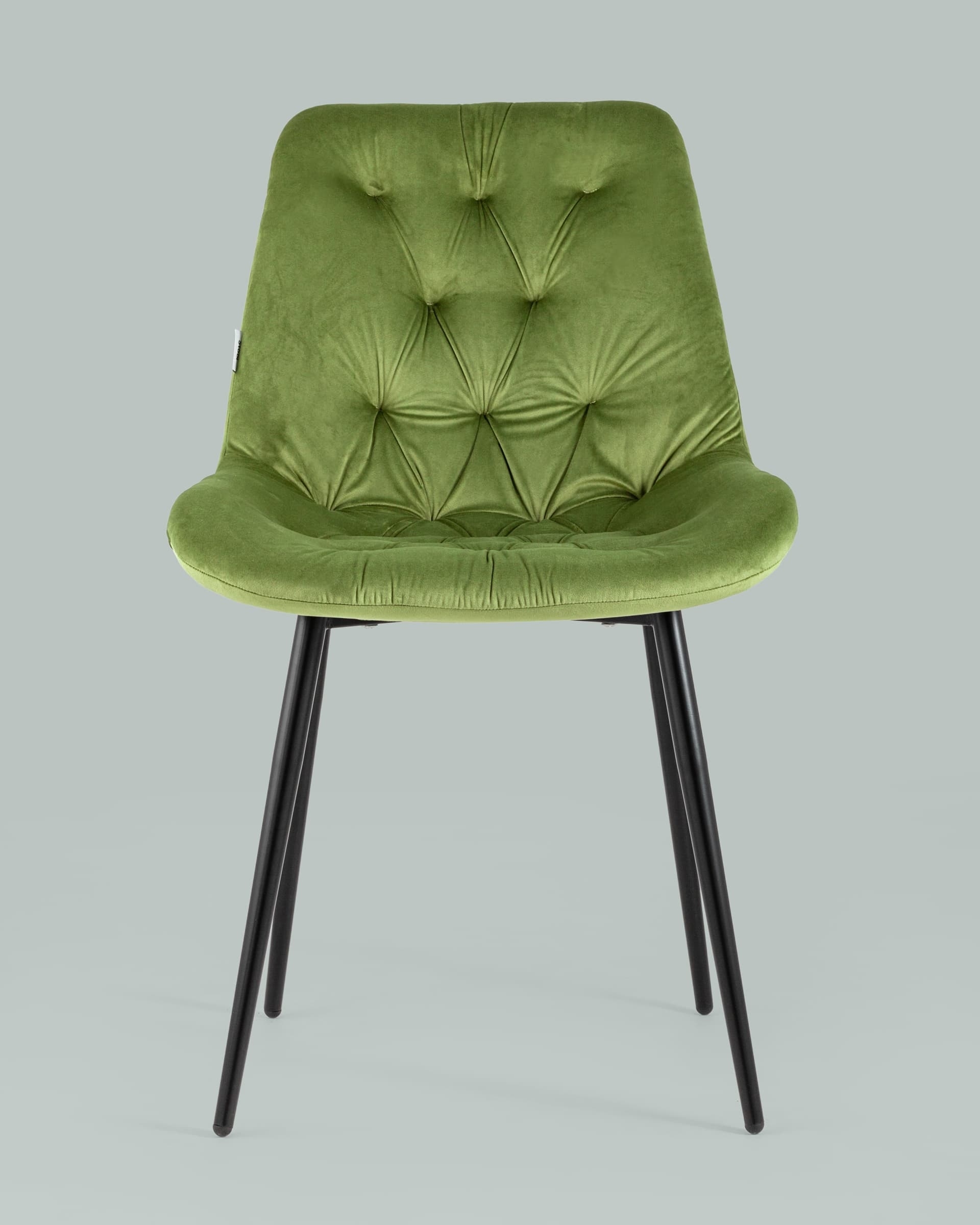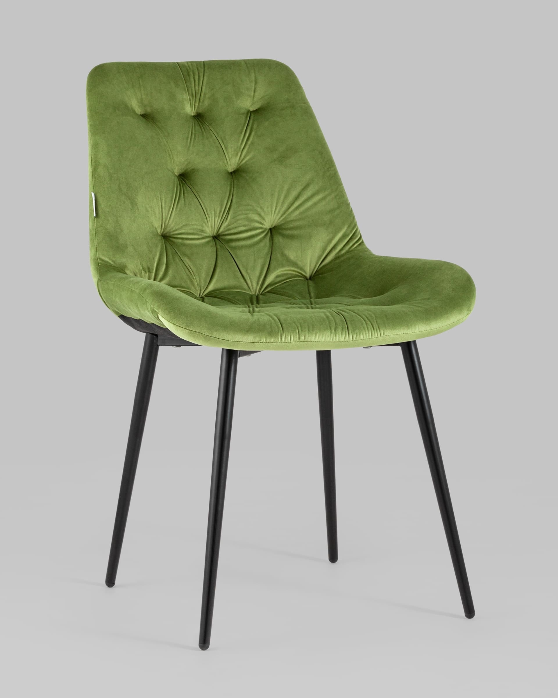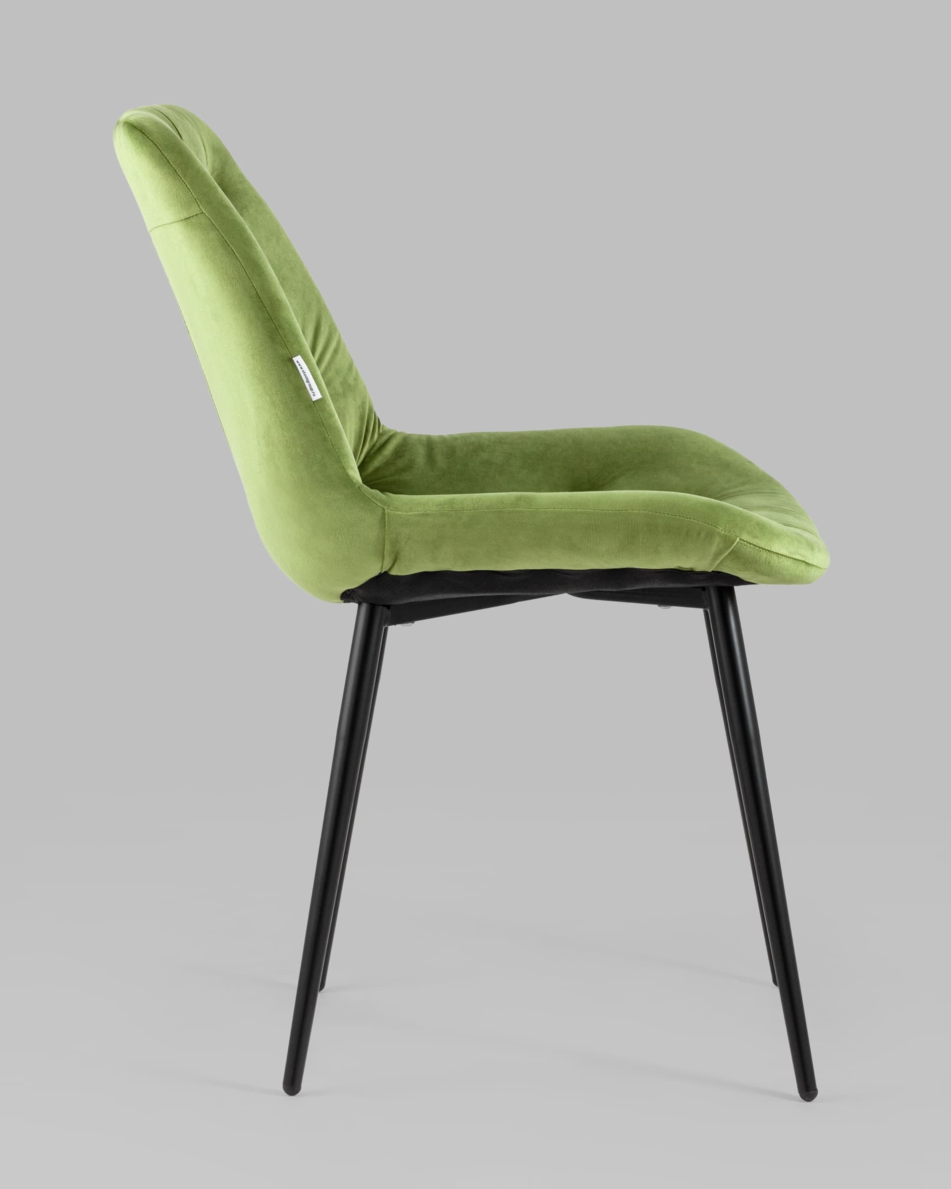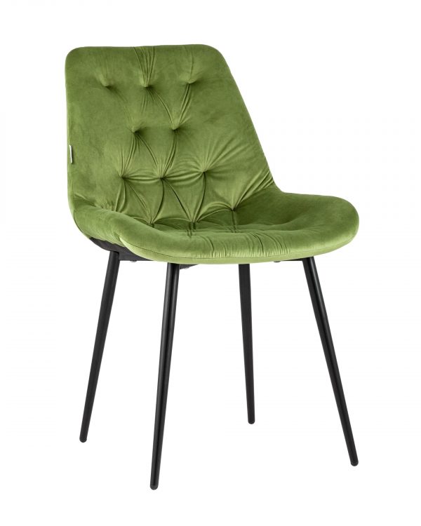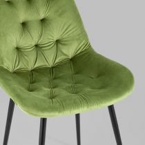 Кухонный стул в мягкой обивке из велюра без подлокотников. Внутренняя сторона спинки украшена декоративной строчкой.