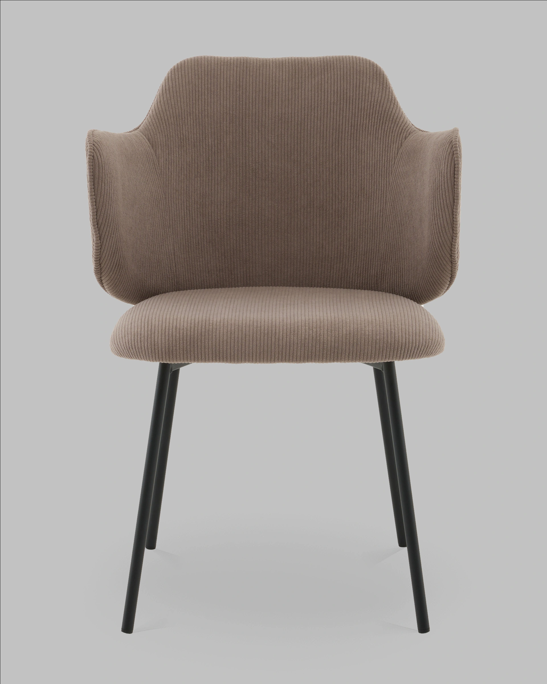 Модель выполнена в велюре цвета капучино — мягком и тактильно приятном материале, который придаёт интерьеру ощущение уюта и тепла. Благодаря продуманной конструкции с мягким сиденьем, спинкой и подлокотниками, стул отлично подойдёт как для длительных трапез, так и для неспешного отдыха или работы.