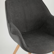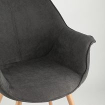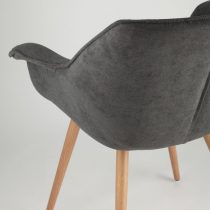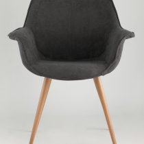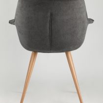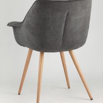 Стильный и мягкий кухонный стул имеет широкую эргономичную спинку и удобные подлокотники. Обивкой послужила высококачественная плотная ткань. Ножки металлические с принтом под дерево.