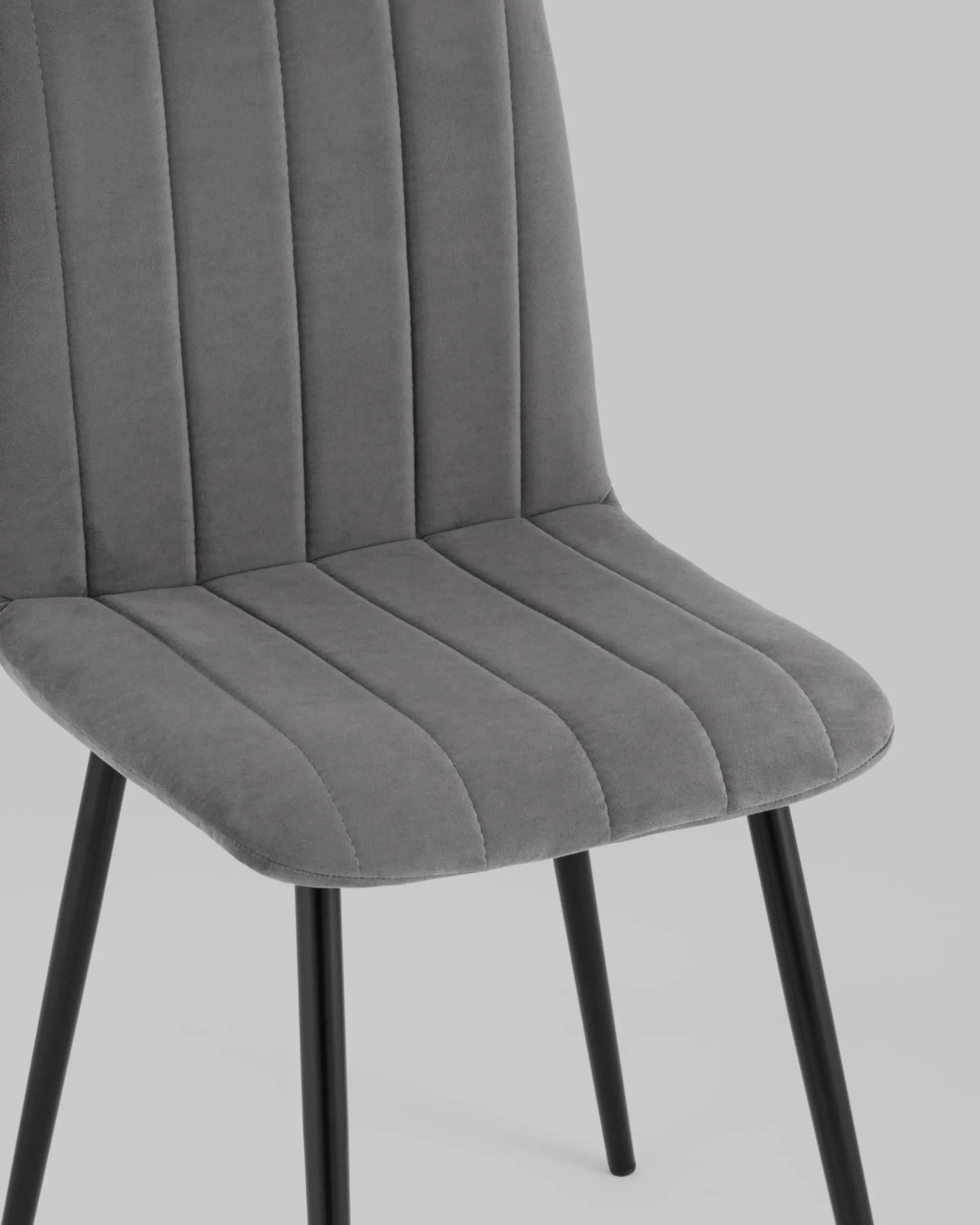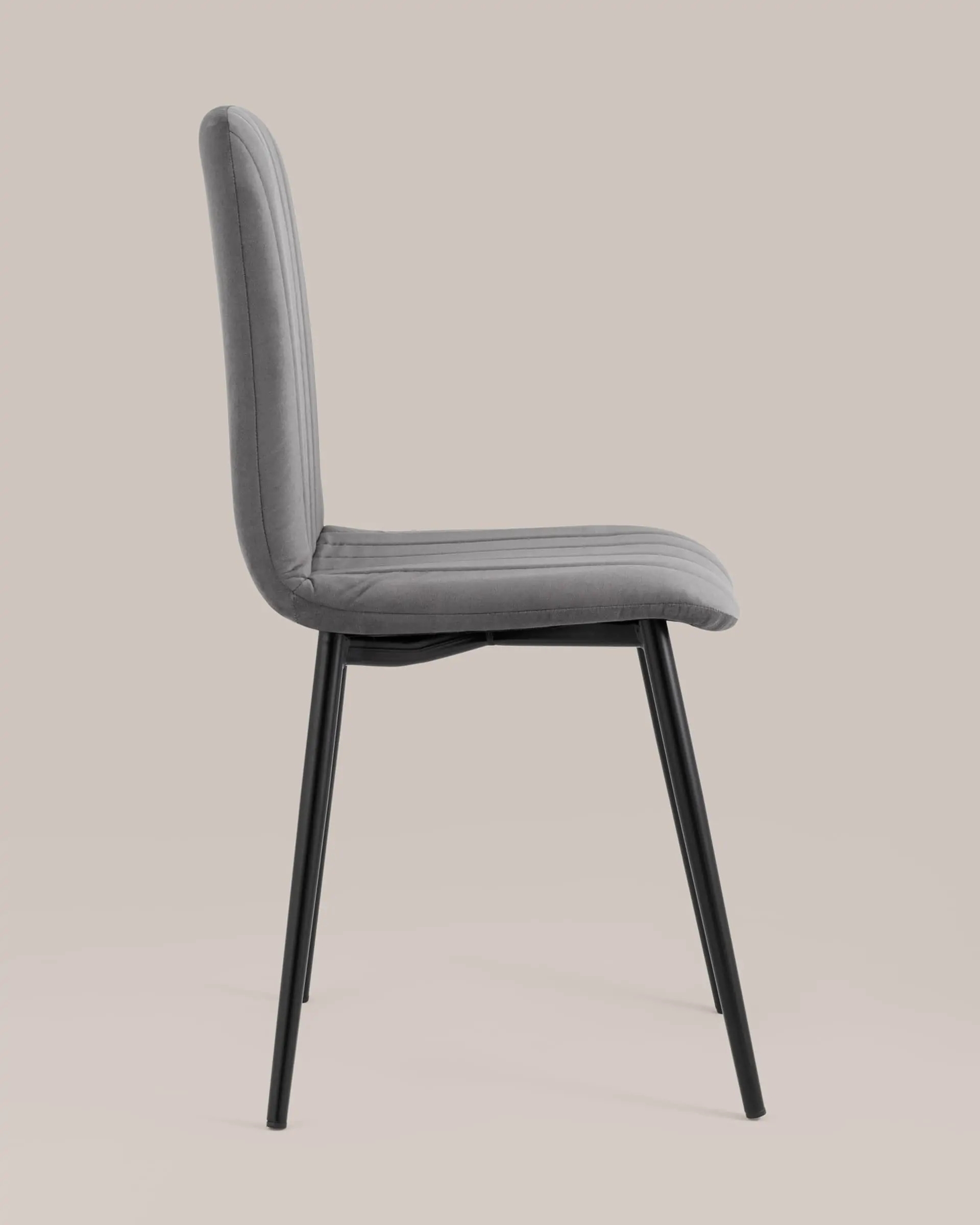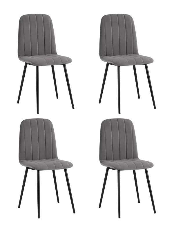 Комплект из четырех стульев. Классический обеденный стул без подлокотников на металлическом каркасе. Плавная форма сиденья и спинки, красивая вертикальная строчка на внутренней стороне обивки, эргономичная спинка, аккуратное исполнение и качественные материалы. Стулья прослужат долгие годы, не требуют много времени для ухода. Лаконичный дизайн делает его универсальным вариантом для обустройства обеденной зоны.