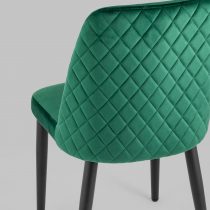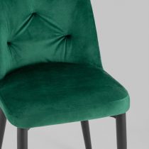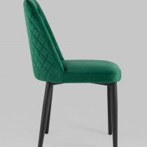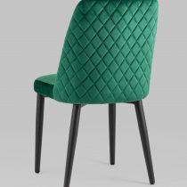 Мягкий стул с высокой спинкой подарит комфорт и уют. В качестве обивки используется велюр – прочный износостойкий и приятный на ощупь материал. Внешняя сторона спинки имеет красивый ромбовидный шов, а внутренняя сторона украшена декором в виде каретной стяжки.
