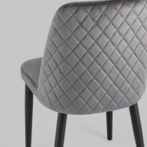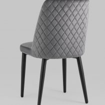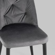 Мягкий стул с высокой спинкой подарит комфорт и уют. В качестве обивки используется велюр – прочный износостойкий и приятный на ощупь материал. Внешняя сторона спинки имеет красивый ромбовидный шов, а внутренняя сторона украшена декором в виде каретной стяжки.