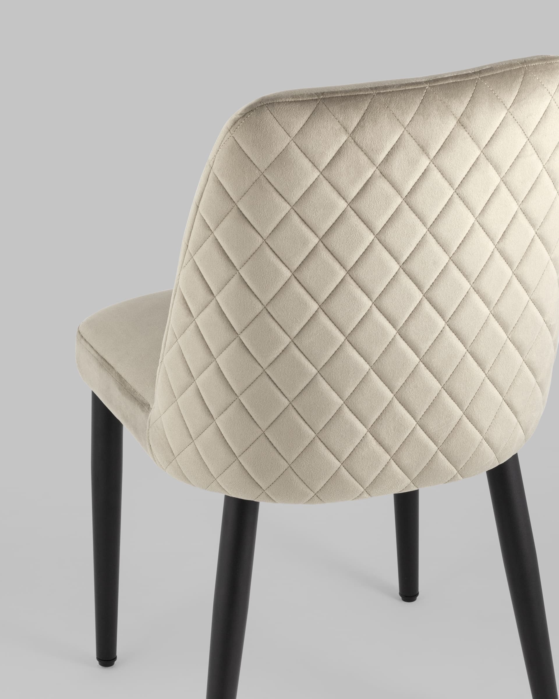 Мягкий стул с высокой спинкой подарит комфорт и уют. В качестве обивки используется велюр – прочный износостойкий и приятный на ощупь материал. Внешняя сторона спинки имеет красивый ромбовидный шов, а внутренняя сторона украшена декором в виде каретной стяжки.