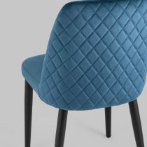 Мягкий стул с высокой спинкой подарит комфорт и уют. В качестве обивки используется велюр – прочный износостойкий и приятный на ощупь материал. Внешняя сторона спинки имеет красивый ромбовидный шов, а внутренняя сторона украшена декором в виде каретной стяжки.