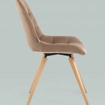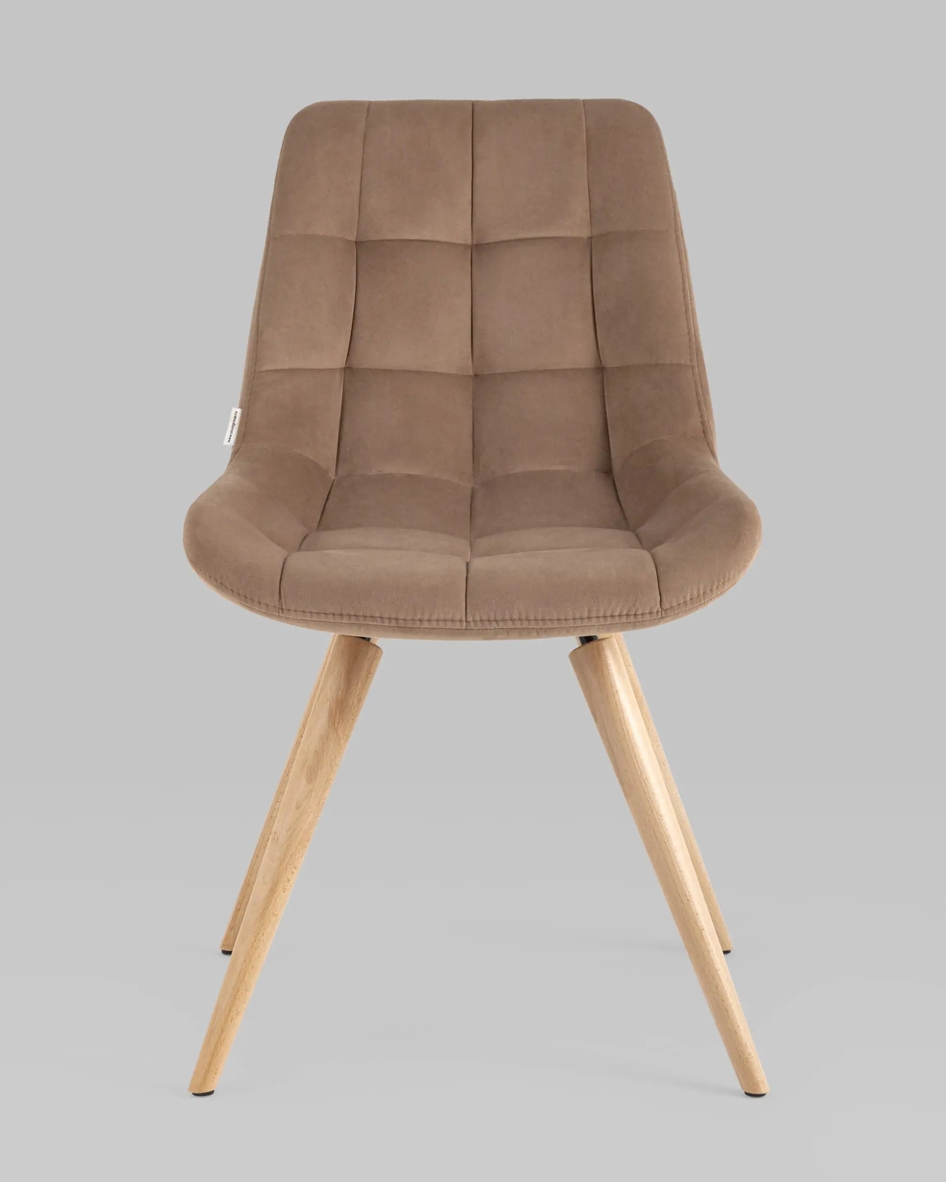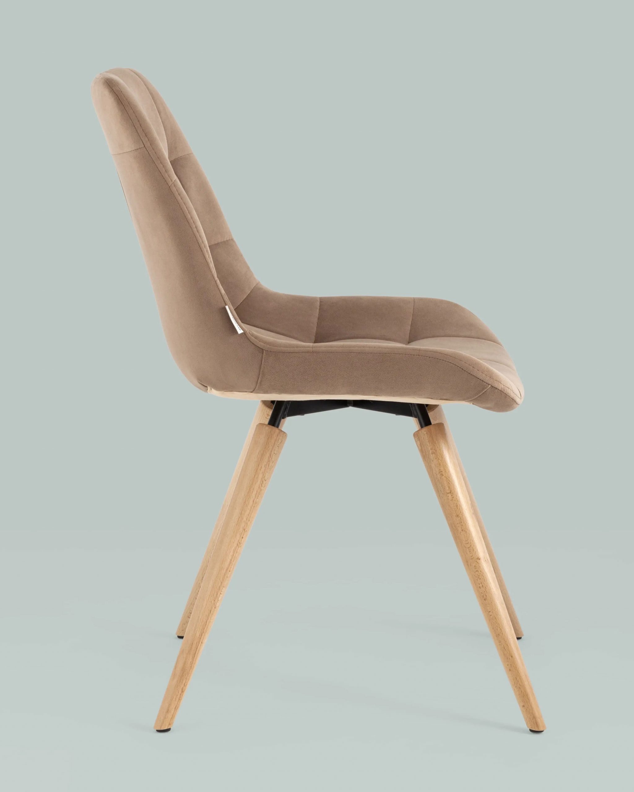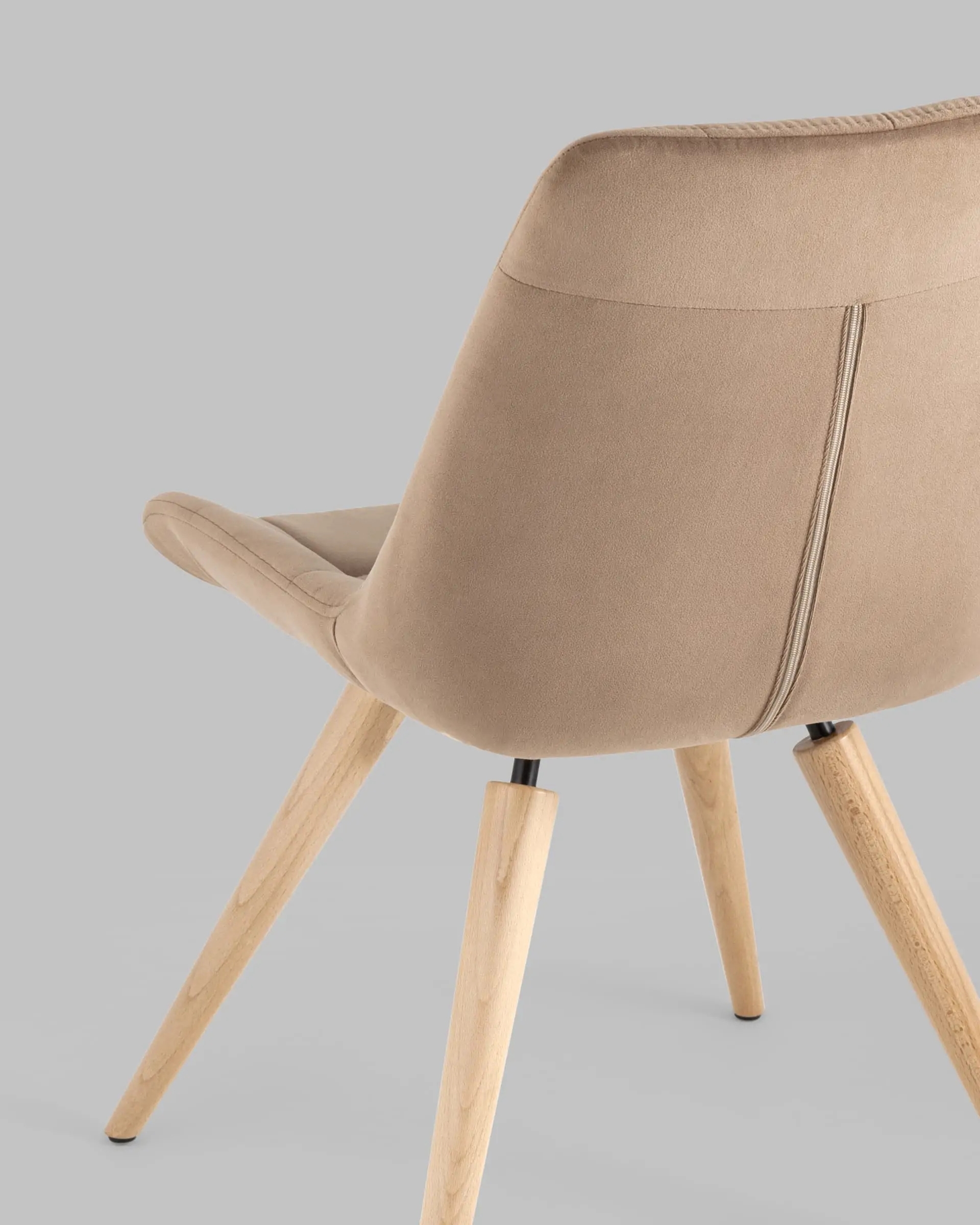 Комплект из четырех стульев. Кухонный стул на деревянных ножках в мягкой обивке из велюра без подлокотников. Анатомическая форма сиденья обеспечивает удобство, а декоративная стяжка придает объём и защищает от образования вмятин. Ножки из светлого бука с крестовидным каркасом выдерживают значительные нагрузки. Подпятники ножек не испортят напольное покрытие и предохраняют от скольжения. Лаконичный дизайн украсит любой кухонный интерьер.