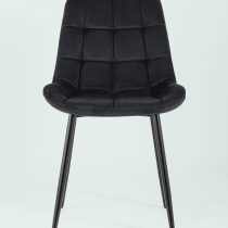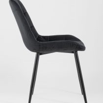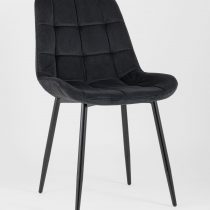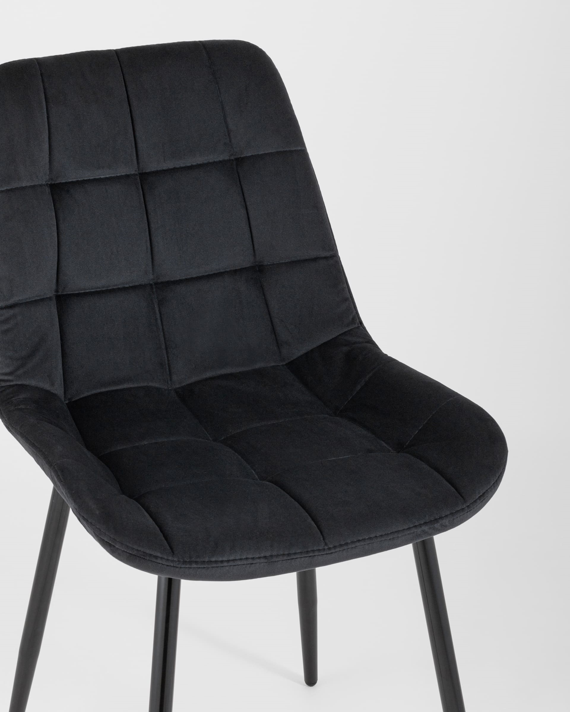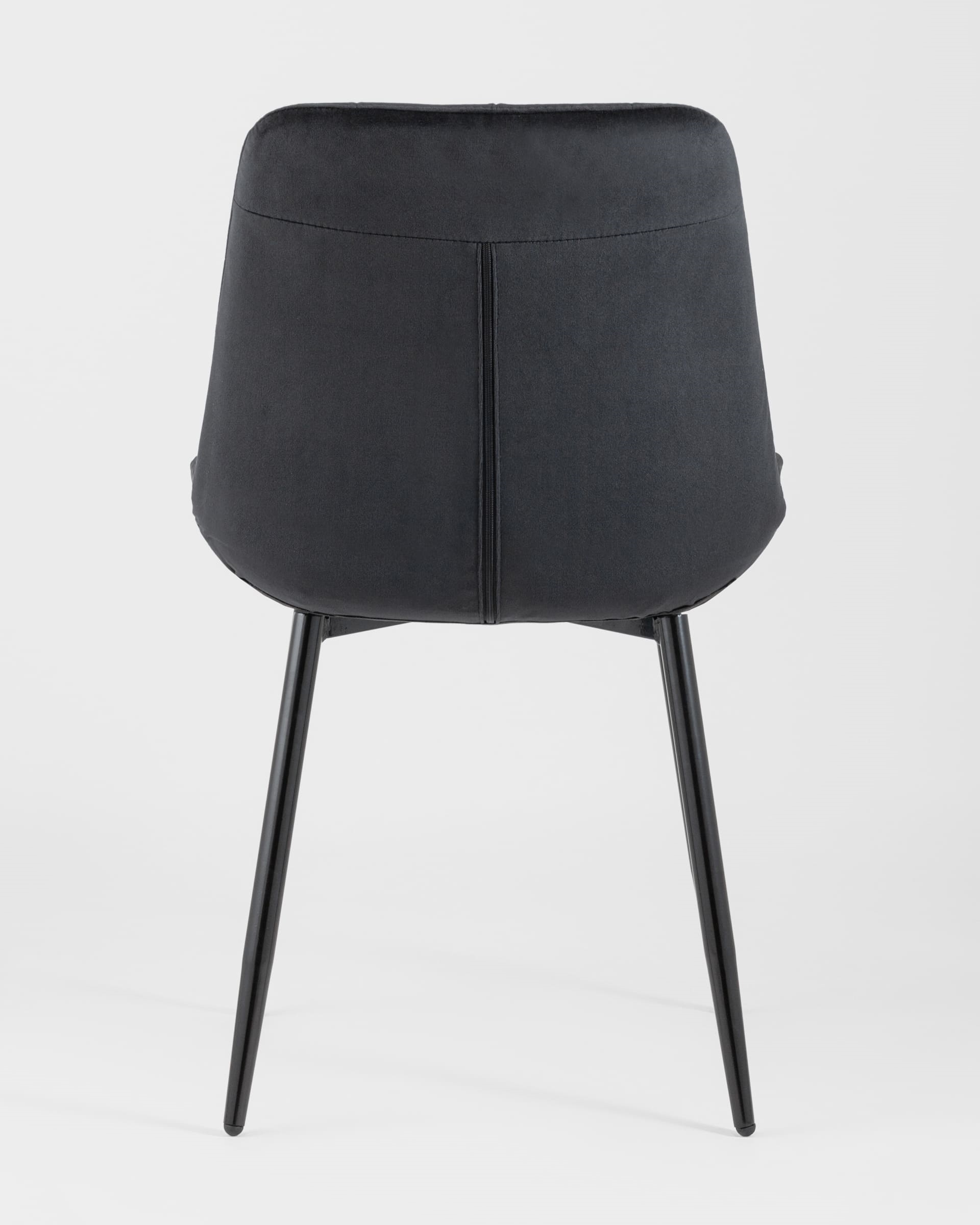 Чёрный кухонный стул в мягкой обивке из велюра без подлокотников. Анатомическая форма сиденья обеспечивает удобство, а декоративная стяжка придает объём и защищает от образования вмятин. Металлические ножки с крестовидным каркасом выдерживают значительные нагрузки. Подпятники ножек не испортят напольное покрытие и предохраняют от скольжения. Лаконичный дизайн украсит любой кухонный интерьер.