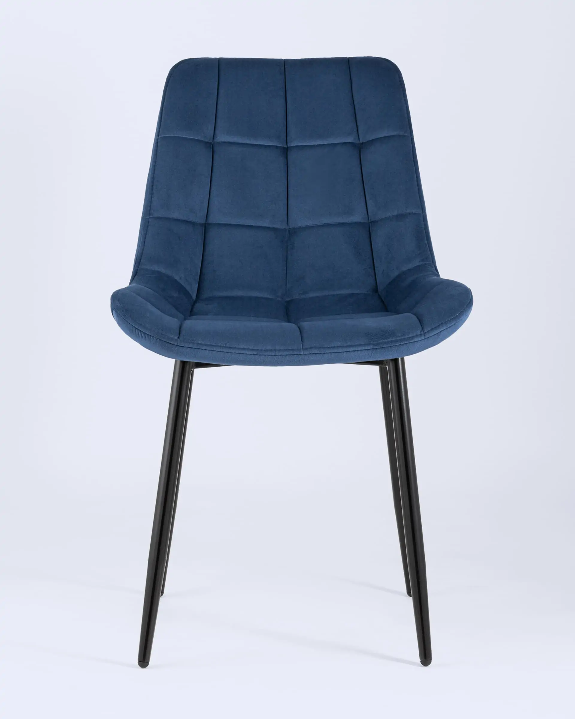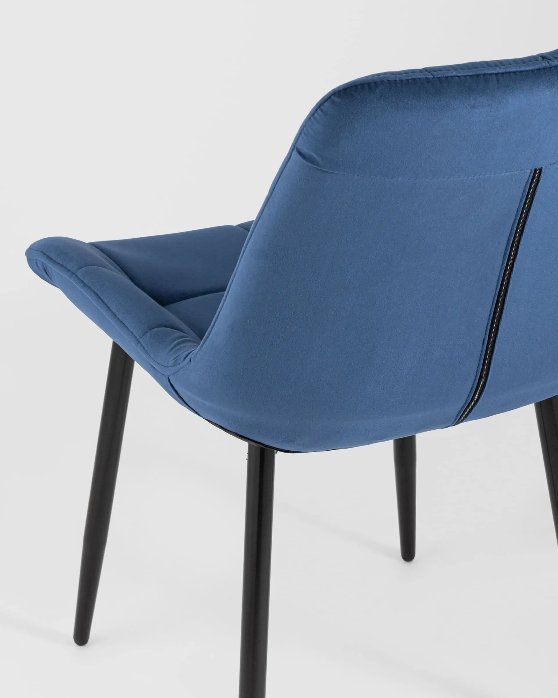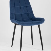 Кухонный стул синего цвета в мягкой обивке из велюра без подлокотников. Анатомическая форма сиденья обеспечивает удобство, а декоративная стяжка придает объём и защищает от образования вмятин. Металлические ножки с крестовидным каркасом выдерживают значительные нагрузки. Подпятники ножек не испортят напольное покрытие и предохраняют от скольжения. Лаконичный дизайн украсит любой кухонный интерьер.