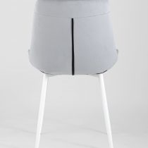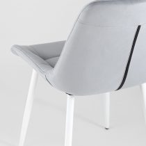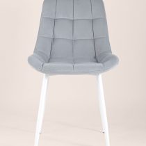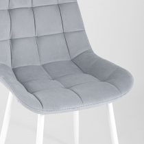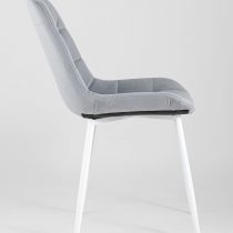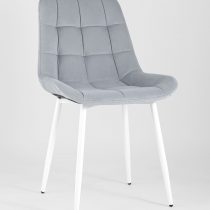 Светло-серый кухонный стул в мягкой обивке из велюра без подлокотников. Анатомическая форма сиденья обеспечивает удобство, а декоративная стяжка придает объём и защищает от образования вмятин. Металлические ножки с крестовидным каркасом выдерживают значительные нагрузки. Подпятники ножек не испортят напольное покрытие и предохраняют от скольжения. Лаконичный дизайн украсит любой кухонный интерьер.
