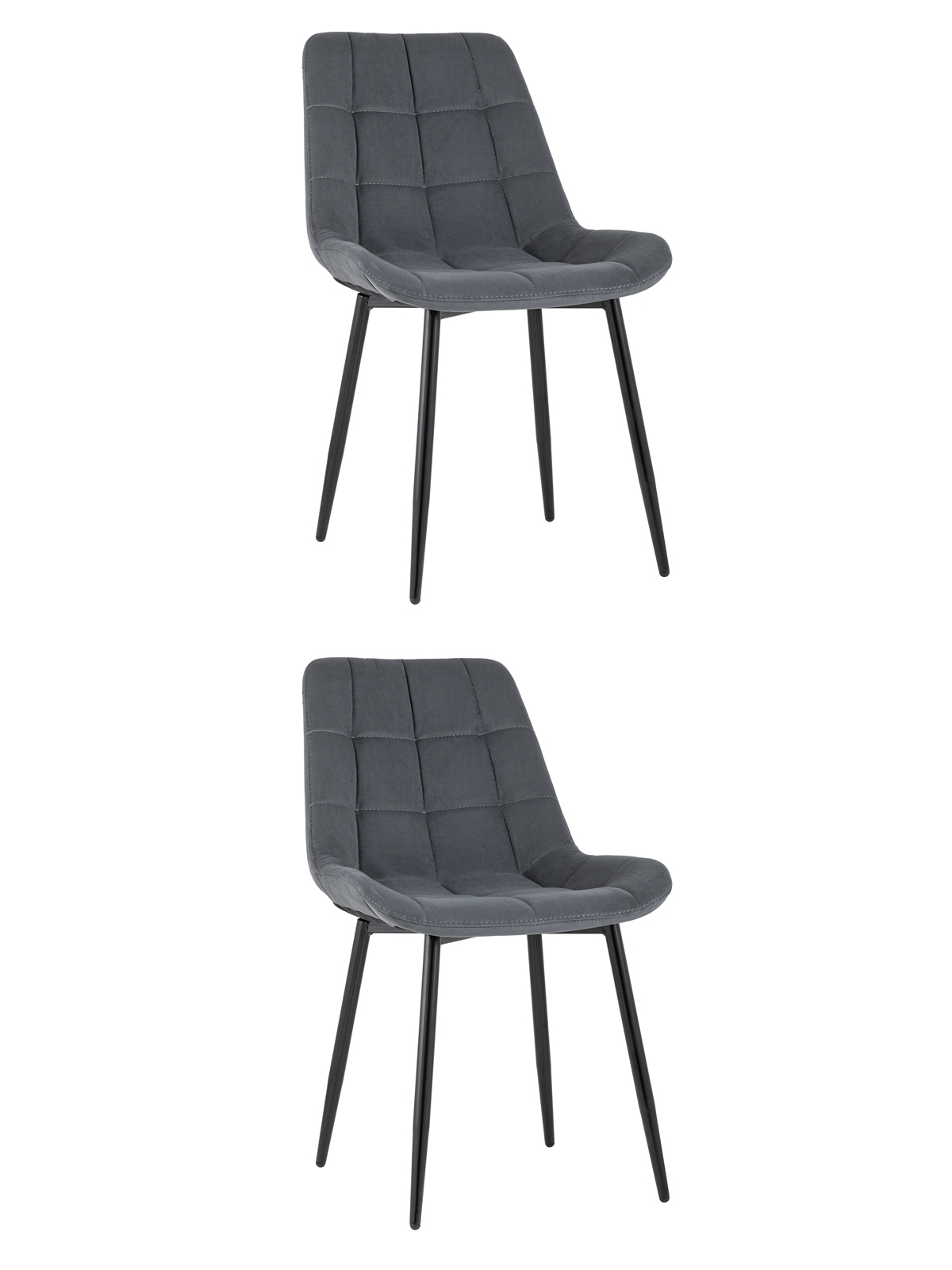 Набор из двух стульев. Кухонный стул в мягкой обивке из велюра без подлокотников. Анатомическая форма сиденья обеспечивает удобство, а декоративная стяжка придает объём и защищает от образования вмятин. Металлические ножки с крестовидным каркасом выдерживают значительные нагрузки. Подпятники ножек не испортят напольное покрытие и предохраняют от скольжения. Лаконичный дизайн украсит любой кухонный интерьер.