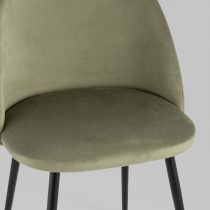 Сидение обтянуто мебельным велюром – приятным на ощупь износостойким, гигроскопичным материалом. Ткань обладает способностью быстро восстанавливать первоначальную форму после механического воздействия или намокания. Обивка на спинке отдекорирована красивой геометричной строчкой.