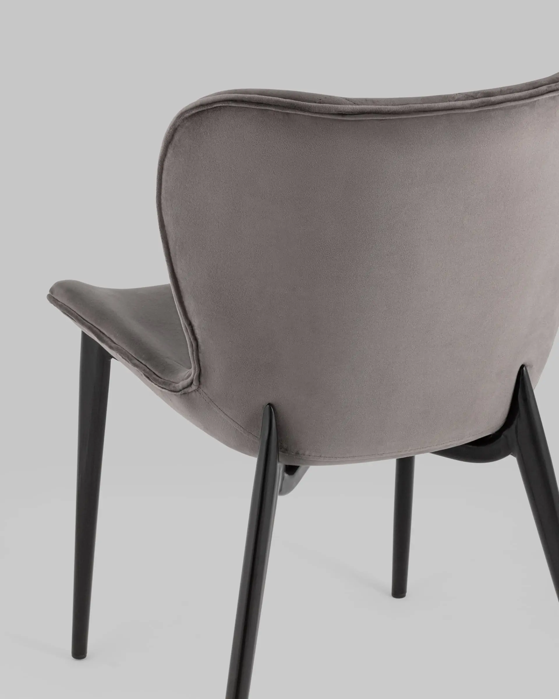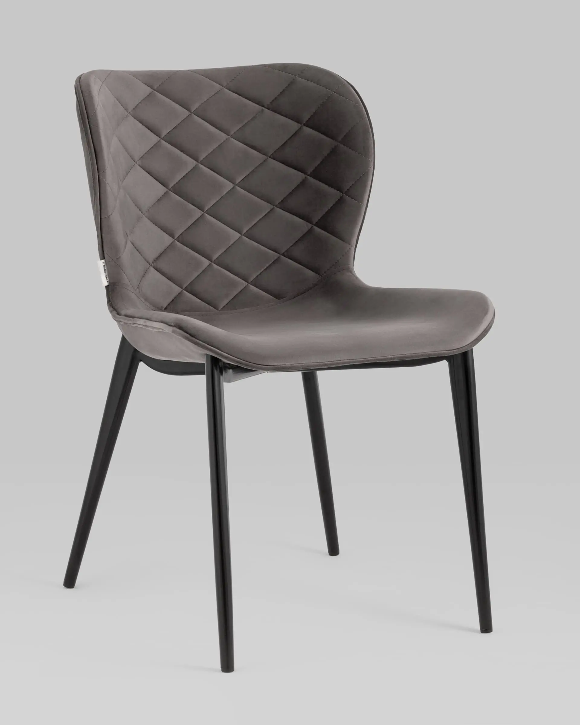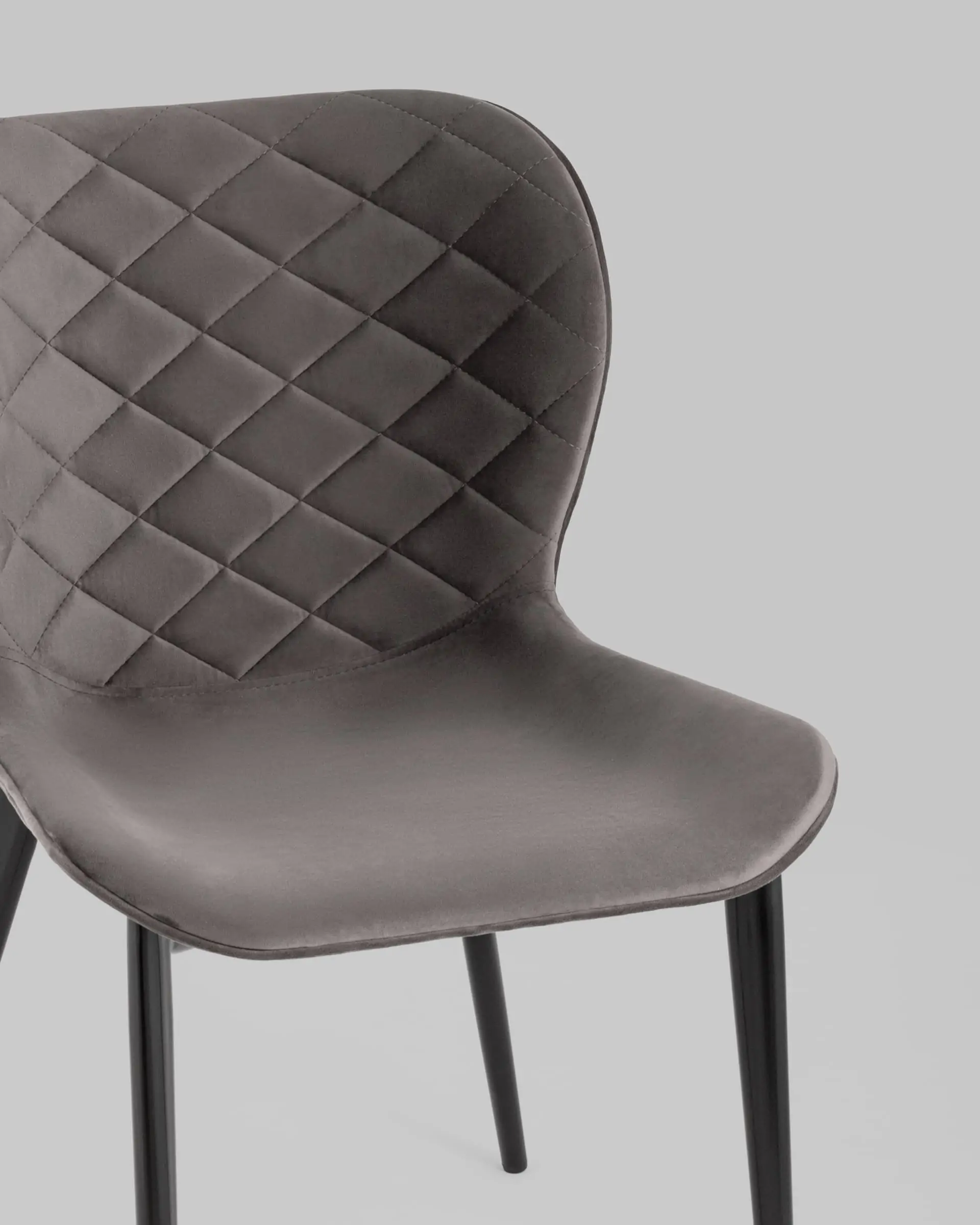Легкий и стильный дизайн обеденного стула Гамми без подлокотников подойдет для обустройства кухонной зоны и ресторанов, а также любого современного интерьера. Мягкий изгиб спинки гармонично сочетается с металлическим каркасом и ножками, окрашенными в черный цвет. Обивка выполнена из прочного, износостойкого велюра. Внутренняя сторона спинки декорирована строчкой в виде ромбов. Ножки оснащены подпятниками, что предотвращают скольжение и повреждение напольного покрытия.