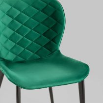 Легкий и стильный дизайн обеденного стула Гамми без подлокотников подойдет для обустройства кухонной зоны и ресторанов, а также любого современного интерьера. Мягкий изгиб спинки гармонично сочетается с металлическим каркасом и ножками, окрашенными в черный цвет. Обивка выполнена из прочного, износостойкого велюра. Внутренняя сторона спинки декорирована строчкой в виде ромбов. Ножки оснащены подпятниками, что предотвращают скольжение и повреждение напольного покрытия.