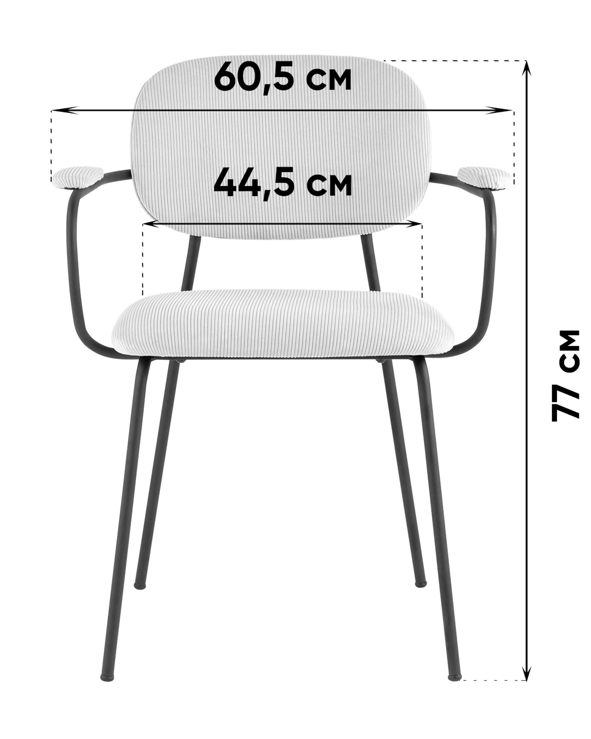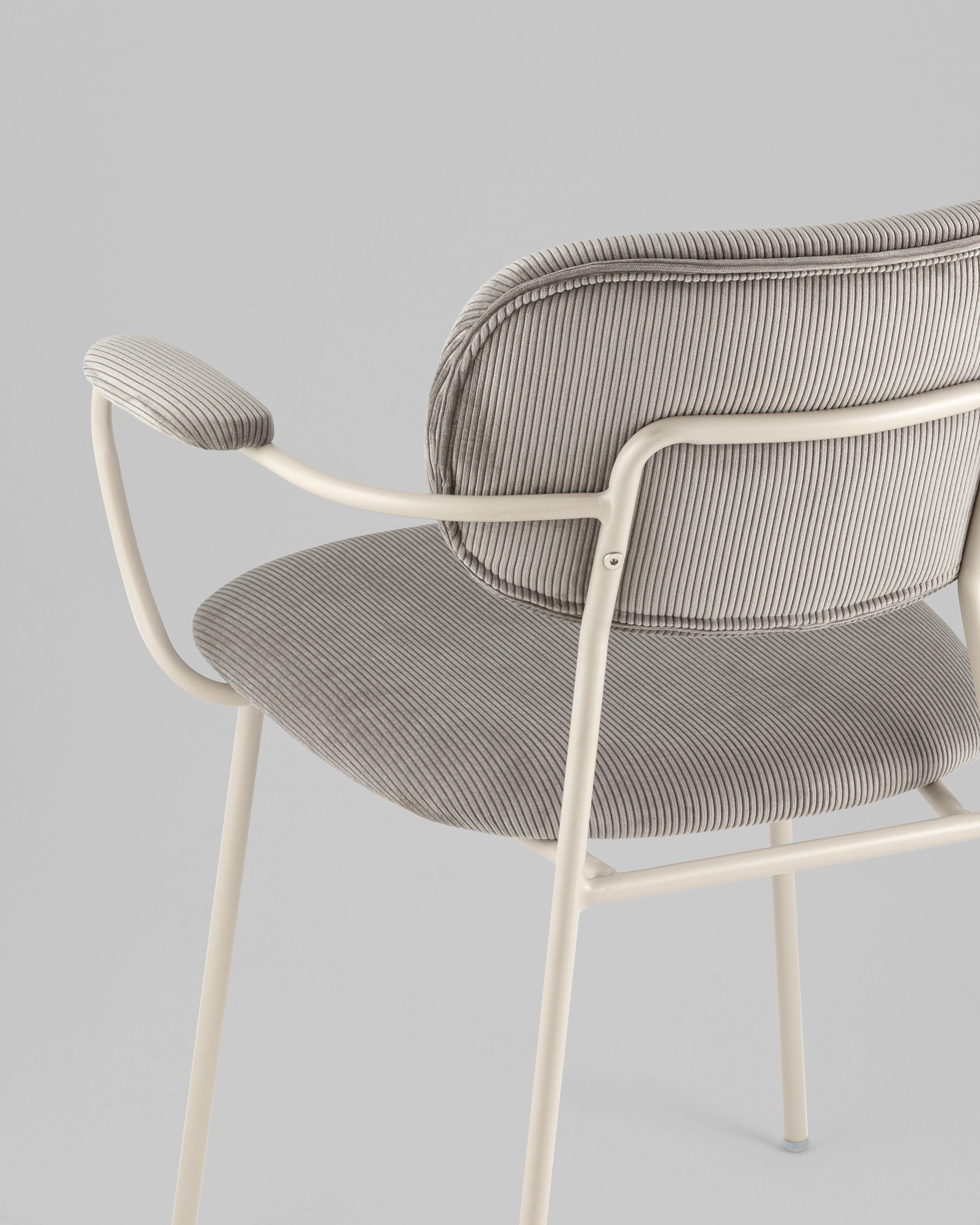 Дизайн и комфорт. Мягкое сиденье в сочетании с удобной широкой спинкой обеспечат удобную посадку и уют даже при длительном использовании. Металлический каркас огибает спинку и плавно переходит из подлокотников в ножки. На подлокотниках для дополнительного комфорта предусмотрены мягкие накладки.
