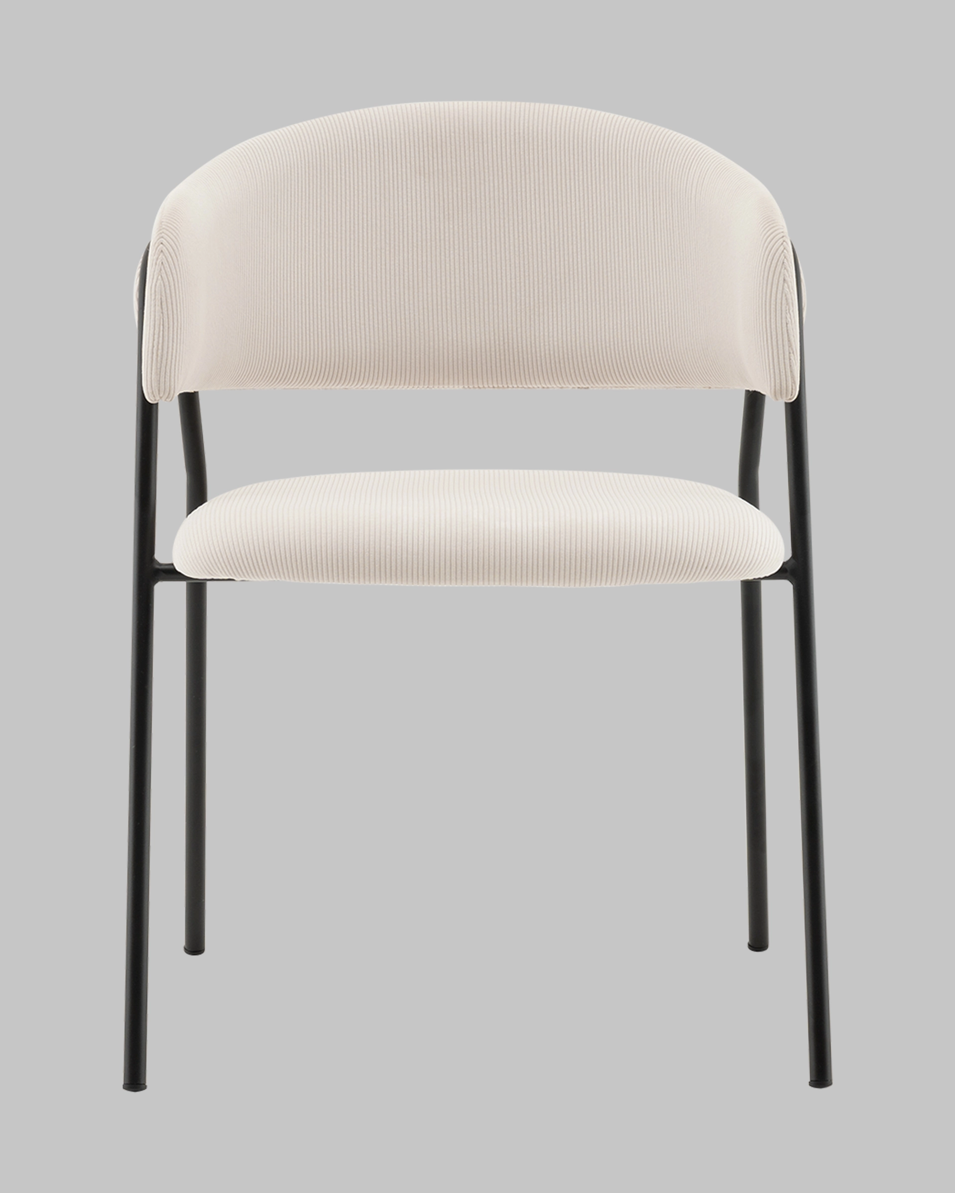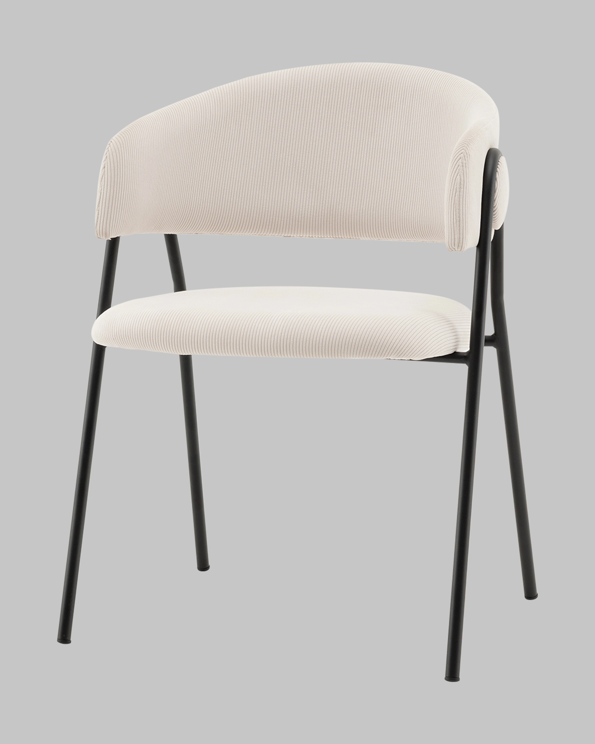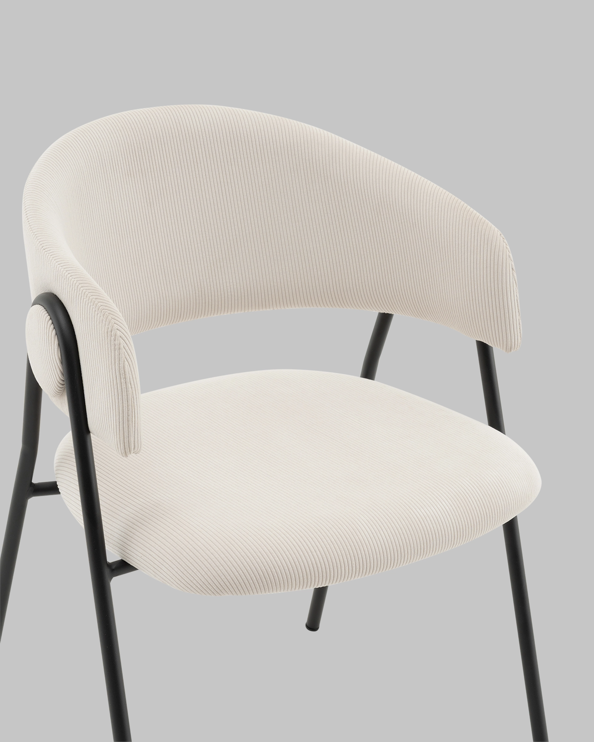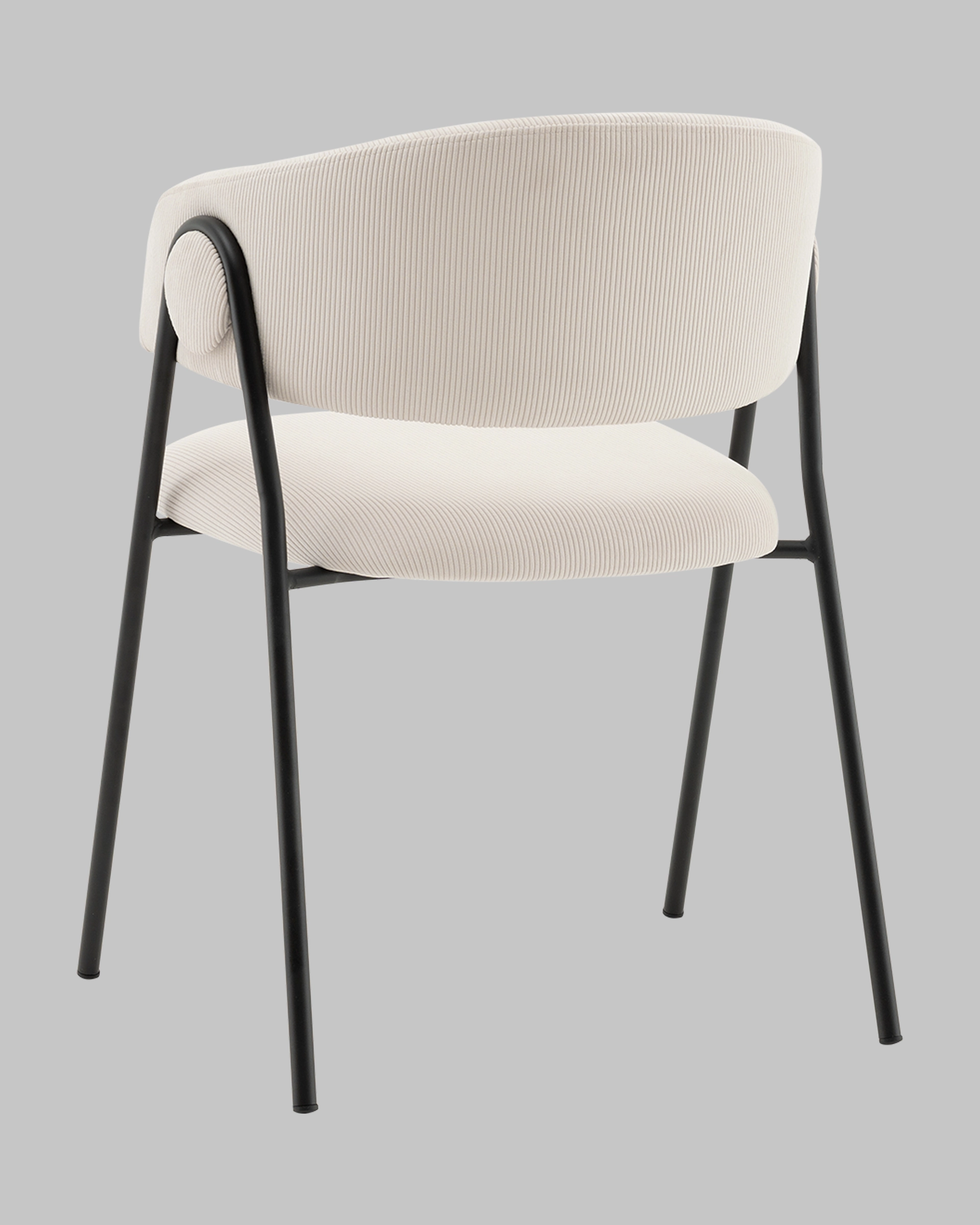 Стильный кухонный стул с оригинальной формой спинки. В качестве обивки используется мягкий вельвет, износостойкий, гигроскопичный материал с приятной на ощупь бархатистой фактурой. Металлический каркас в черном цвете огибает спинку и выступает аккуратным акцентом модели. Широкое сиденье обеспечивает удобную посадку и уют.