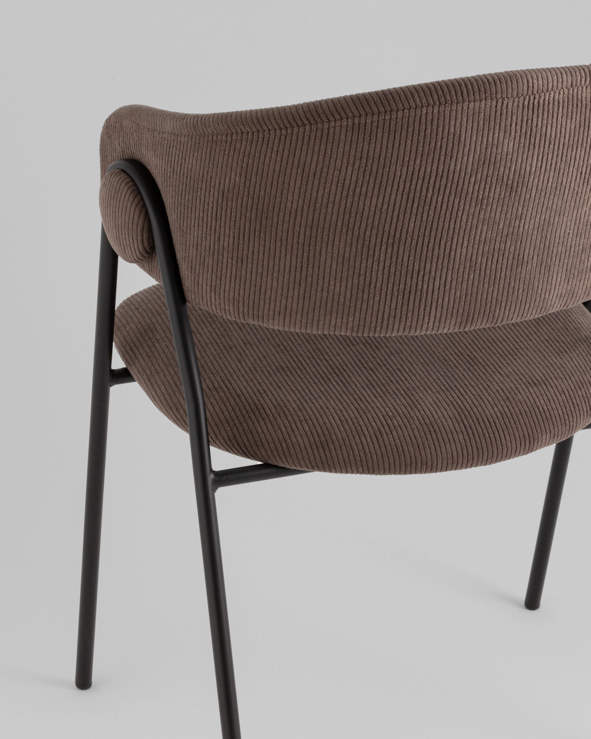 Стильный кухонный стул с оригинальной формой спинки. В качестве обивки используется мягкий велюр, износостойкий, гигроскопичный материал с приятной на ощупь бархатистой фактурой. Металлический каркас в черном цвете огибает спинку и выступает аккуратным акцентом модели. Широкое сиденье обеспечивает удобную посадку и уют.