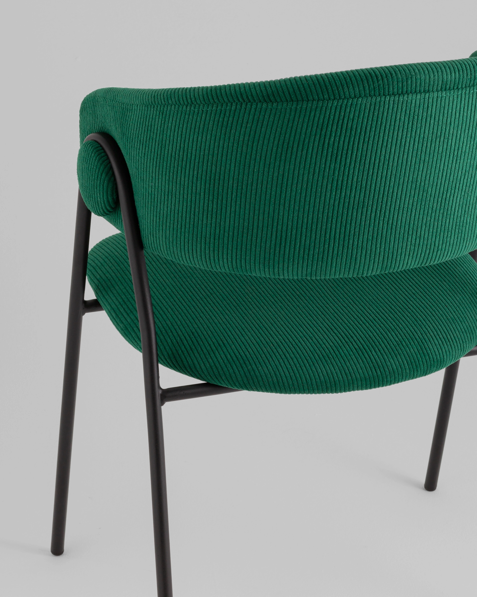 Стильный кухонный стул с оригинальной формой спинки. В качестве обивки используется мягкий велюр, износостойкий, гигроскопичный материал с приятной на ощупь бархатистой фактурой. Металлический каркас в черном цвете огибает спинку и выступает аккуратным акцентом модели. Широкое сиденье обеспечивает удобную посадку и уют.