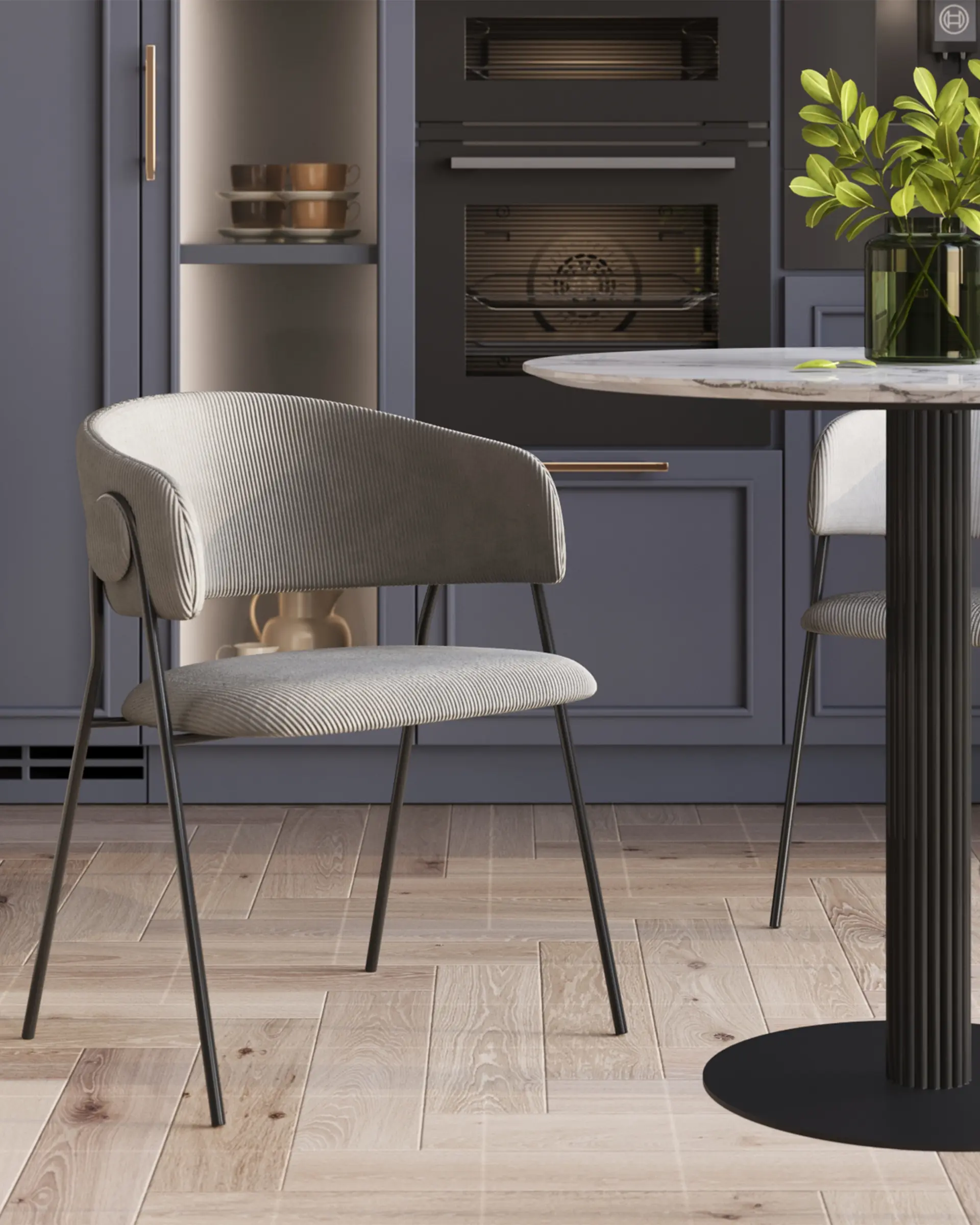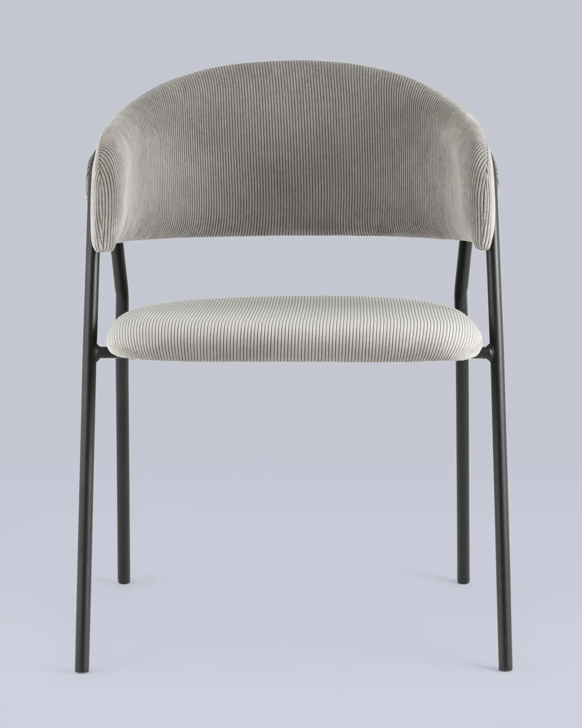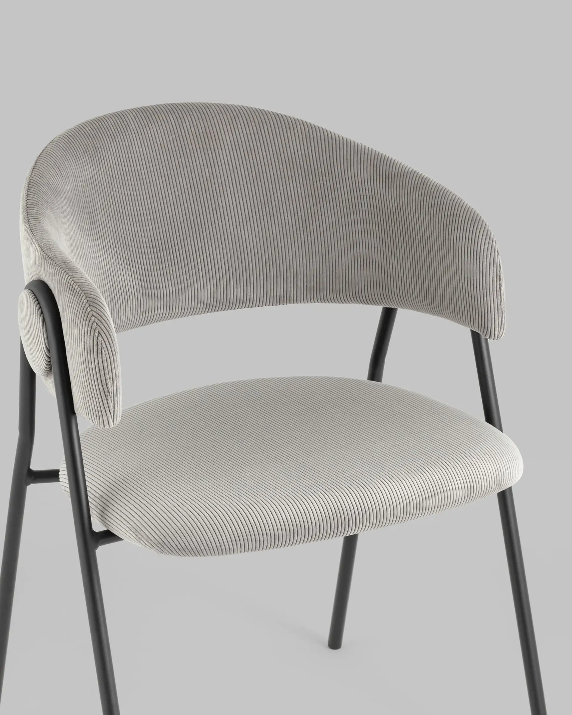 Стильный кухонный стул с оригинальной формой спинки. В качестве обивки используется мягкий велюр, износостойкий, гигроскопичный материал с приятной на ощупь бархатистой фактурой. Металлический каркас в черном цвете огибает спинку и выступает аккуратным акцентом модели. Широкое сиденье обеспечивает удобную посадку и уют.