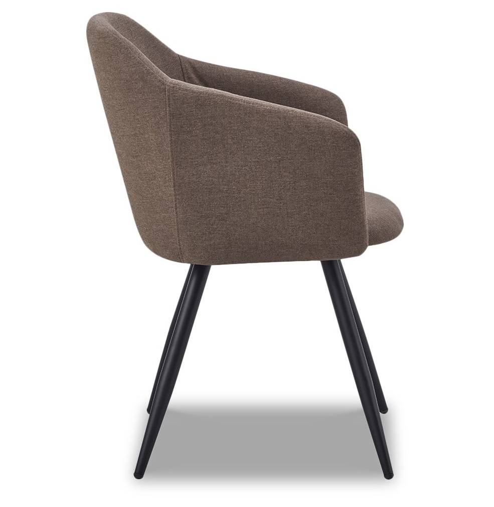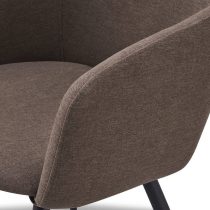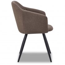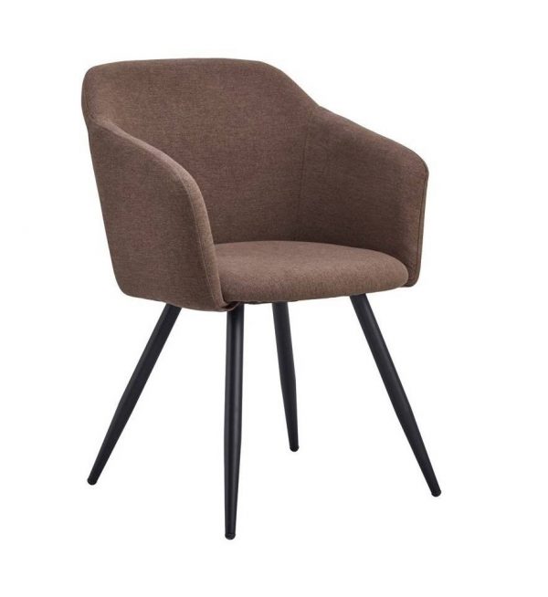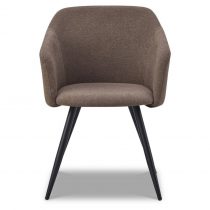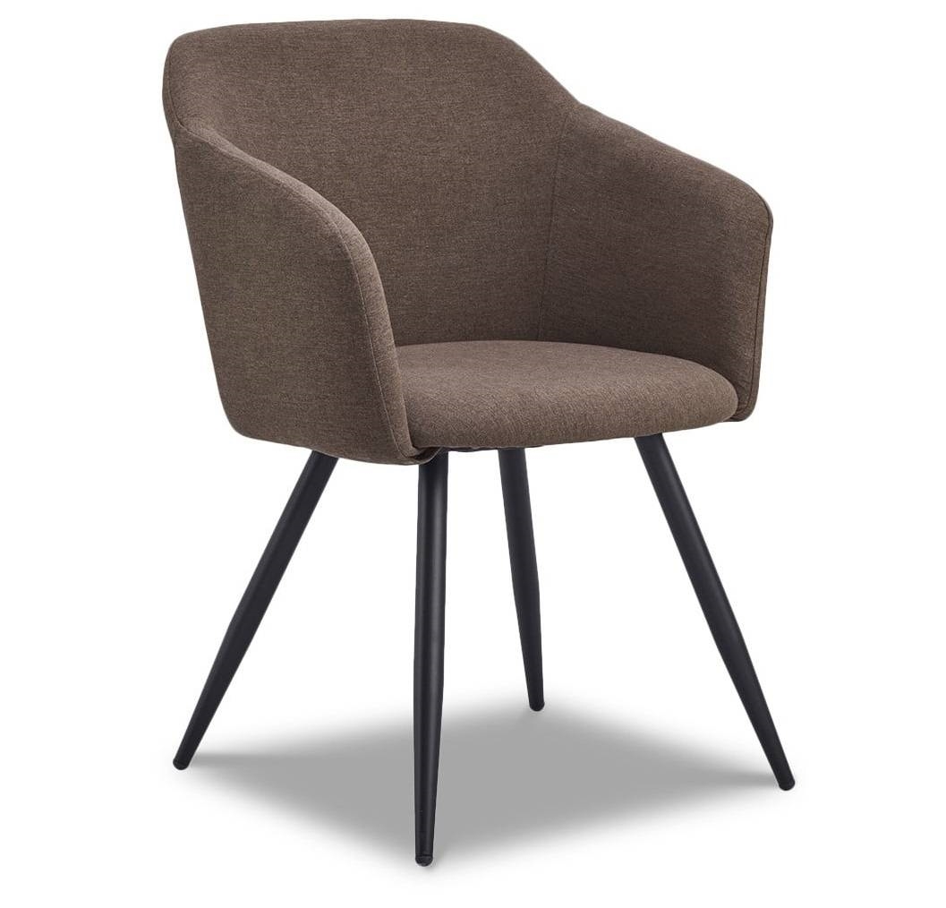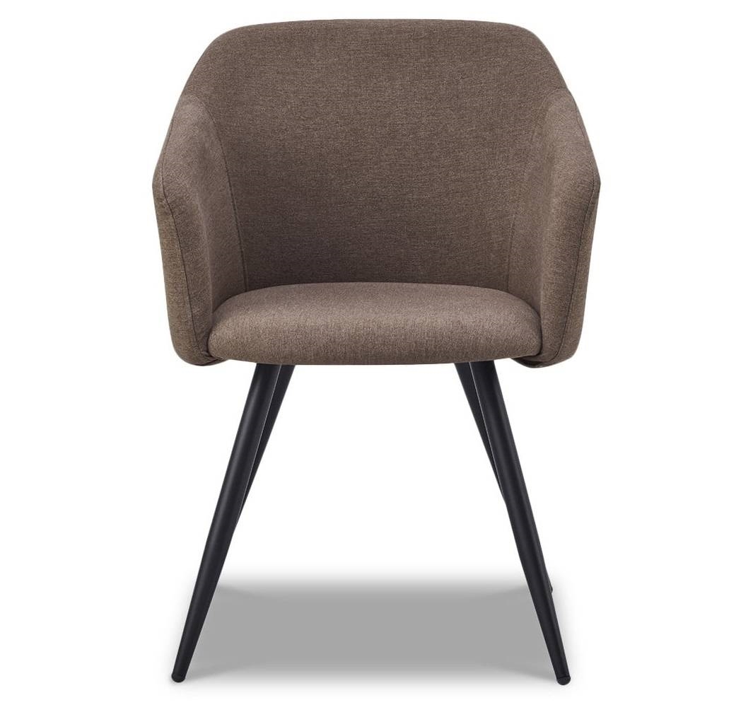 Стул Коллинз, созданный по мотивам стиля Mid Century Modern, по дизайну представляет собой скорее небольшое кресло. Мягкая обивка из ткани, металлические ножки окрашены в темный цвет.