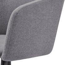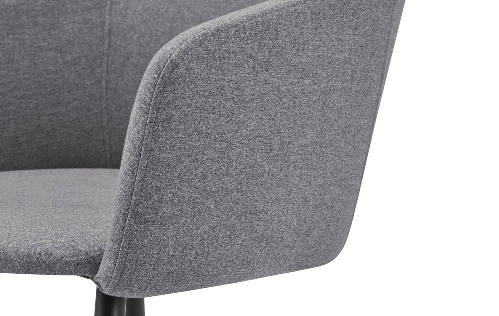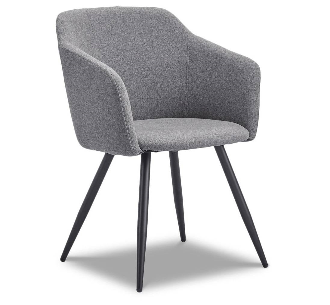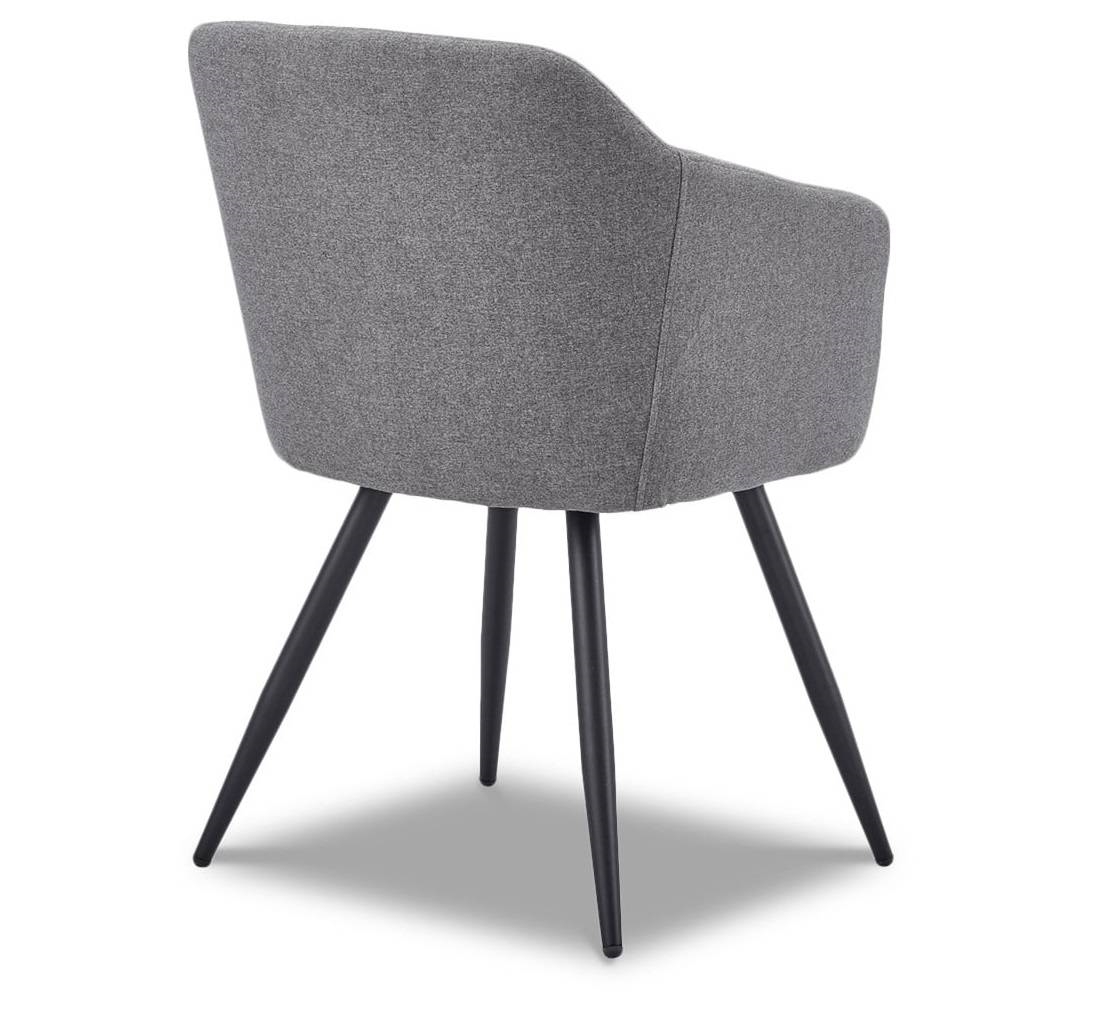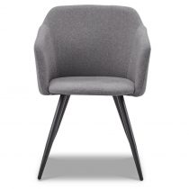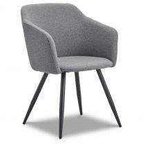 Стул Коллинз, созданный по мотивам стиля Mid Century Modern, по дизайну представляет собой скорее небольшое кресло. Мягкая обивка из ткани, металлические ножки окрашены в темный цвет.