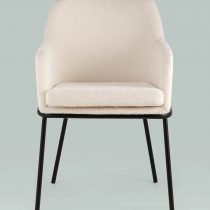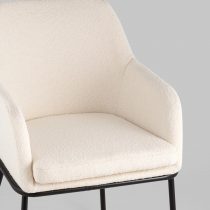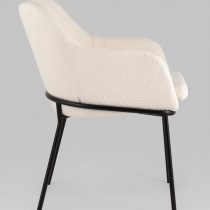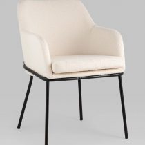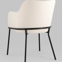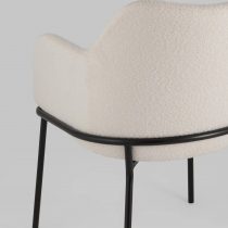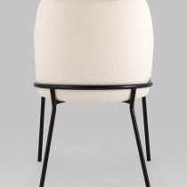 Изящный стул с комфортным сиденьем и спинкой. Основание и ножки черного матового цвета изготовлены из прочного металла. Обивка выполнена из прочной ткани с мягким ворсом в стиле букле, необычная фактура и мягкость добавляют стулу больше уюта.