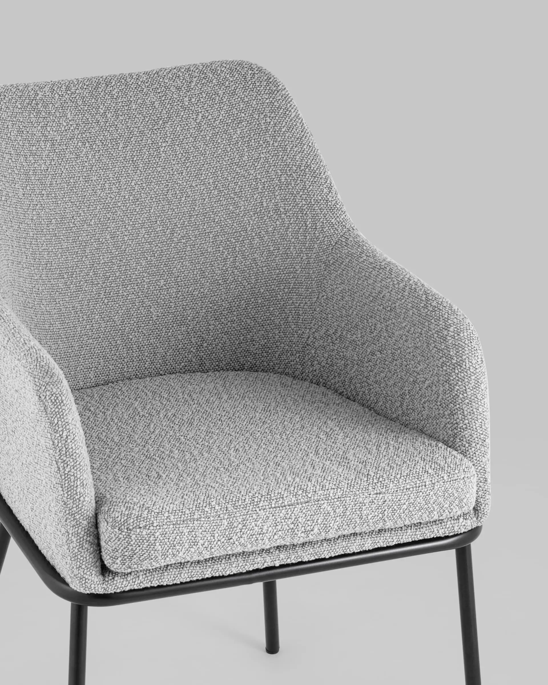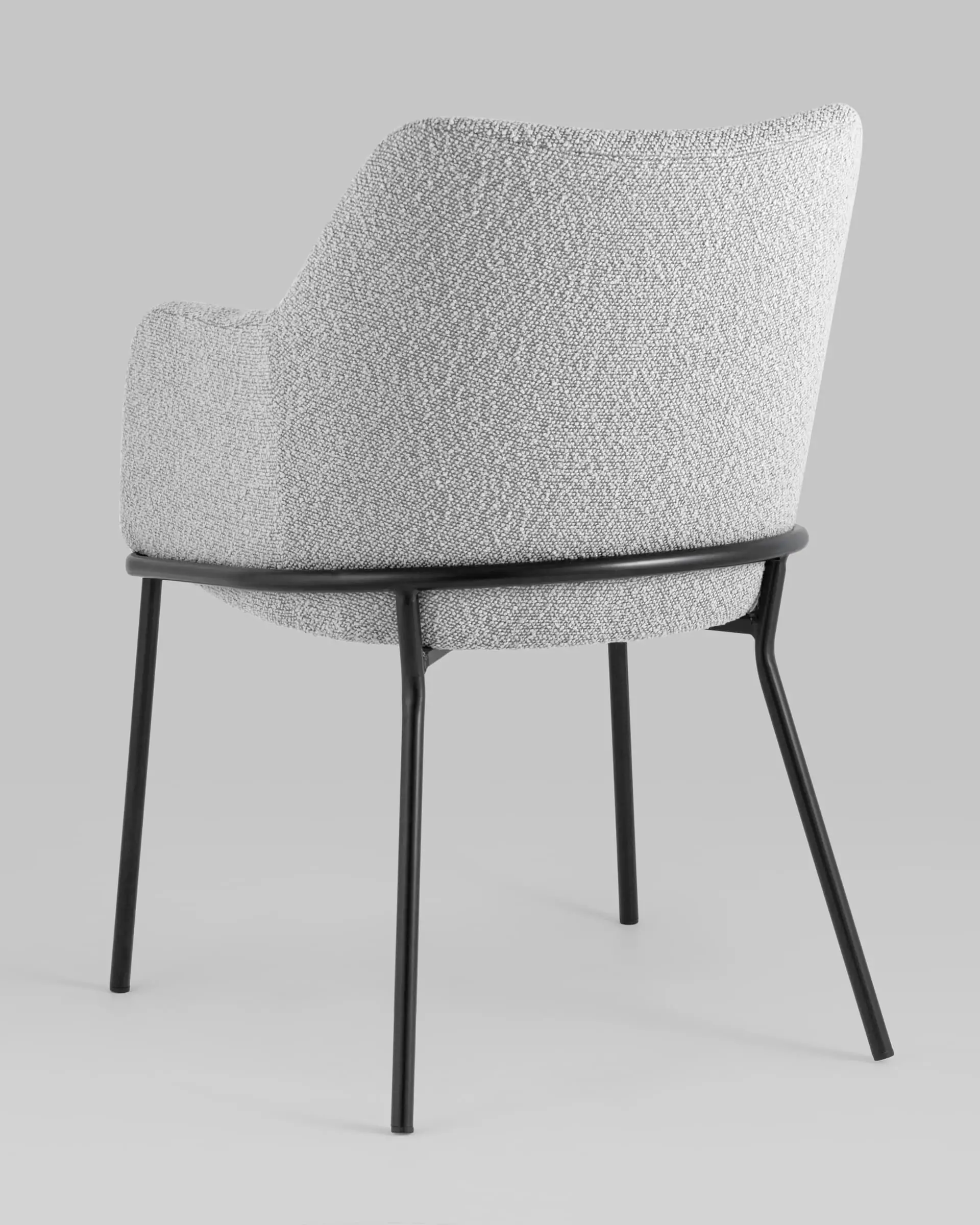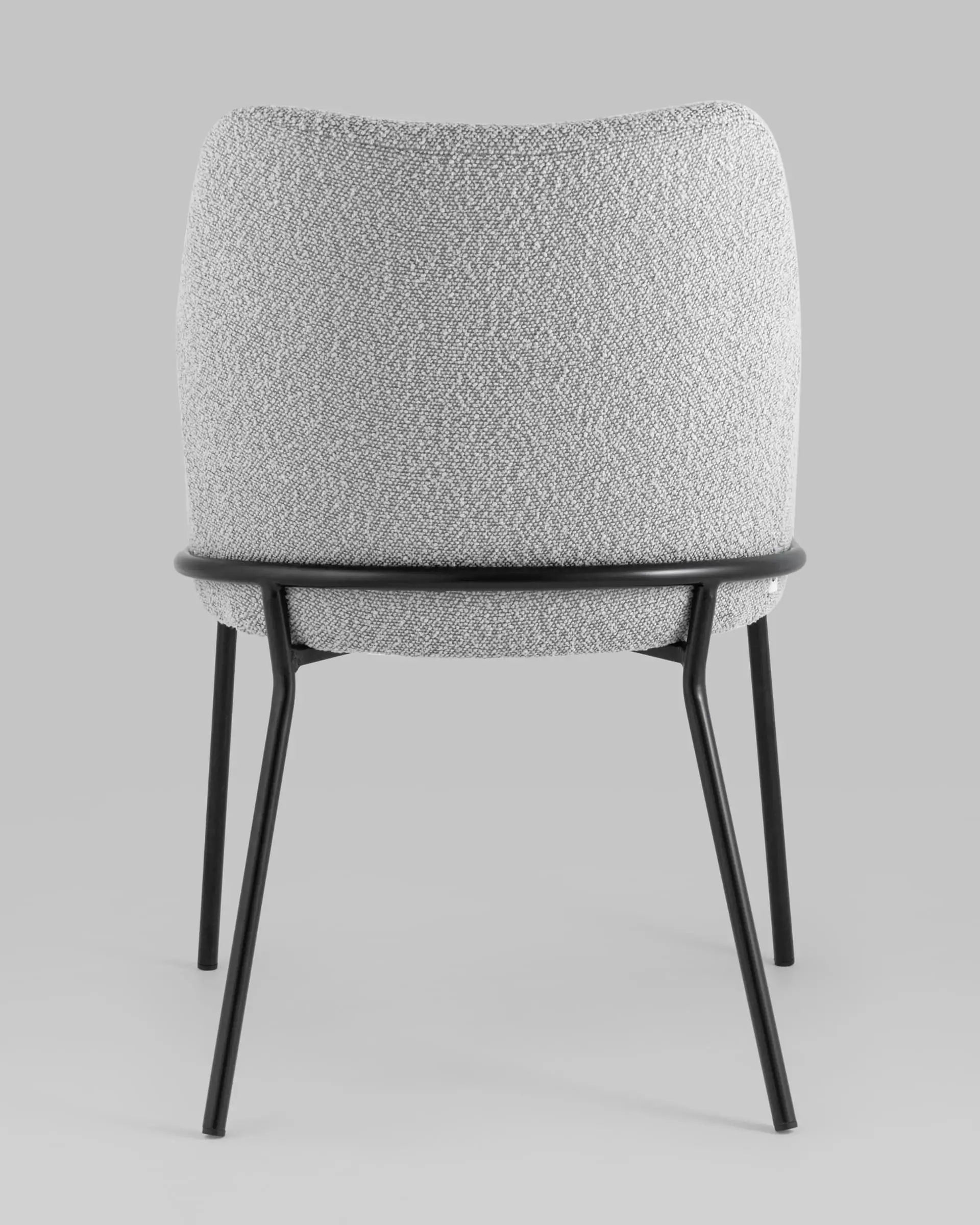 Изящный стул с комфортным сиденьем и спинкой. Основание и ножки черного матового цвета изготовлены из прочного металла. Обивка выполнена из прочной ткани с мягким ворсом в стиле букле, необычная фактура и мягкость добавляют стулу больше уюта.