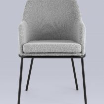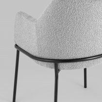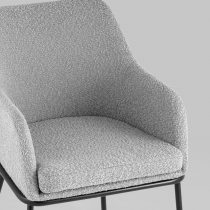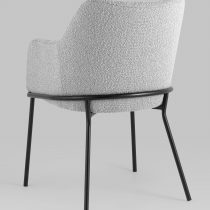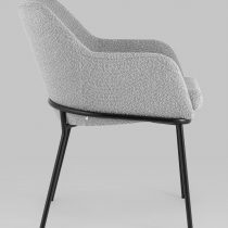 Изящный стул с комфортным сиденьем и спинкой. Основание и ножки черного матового цвета изготовлены из прочного металла. Обивка выполнена из прочной ткани с мягким ворсом в стиле букле, необычная фактура и мягкость добавляют стулу больше уюта.