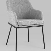 Изящный стул с комфортным сиденьем и спинкой. Основание и ножки черного матового цвета изготовлены из прочного металла. Обивка выполнена из прочной ткани с мягким ворсом в стиле букле, необычная фактура и мягкость добавляют стулу больше уюта.