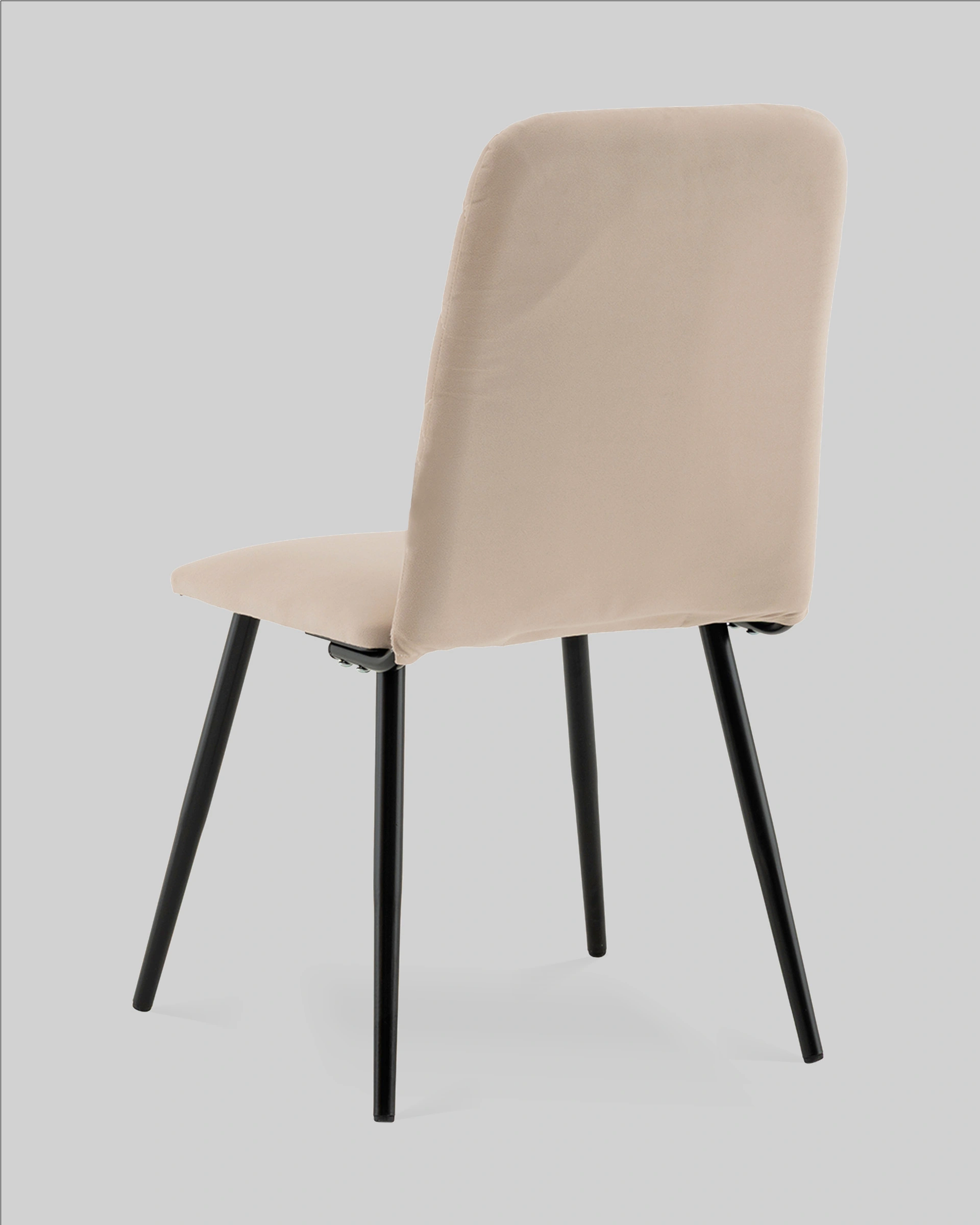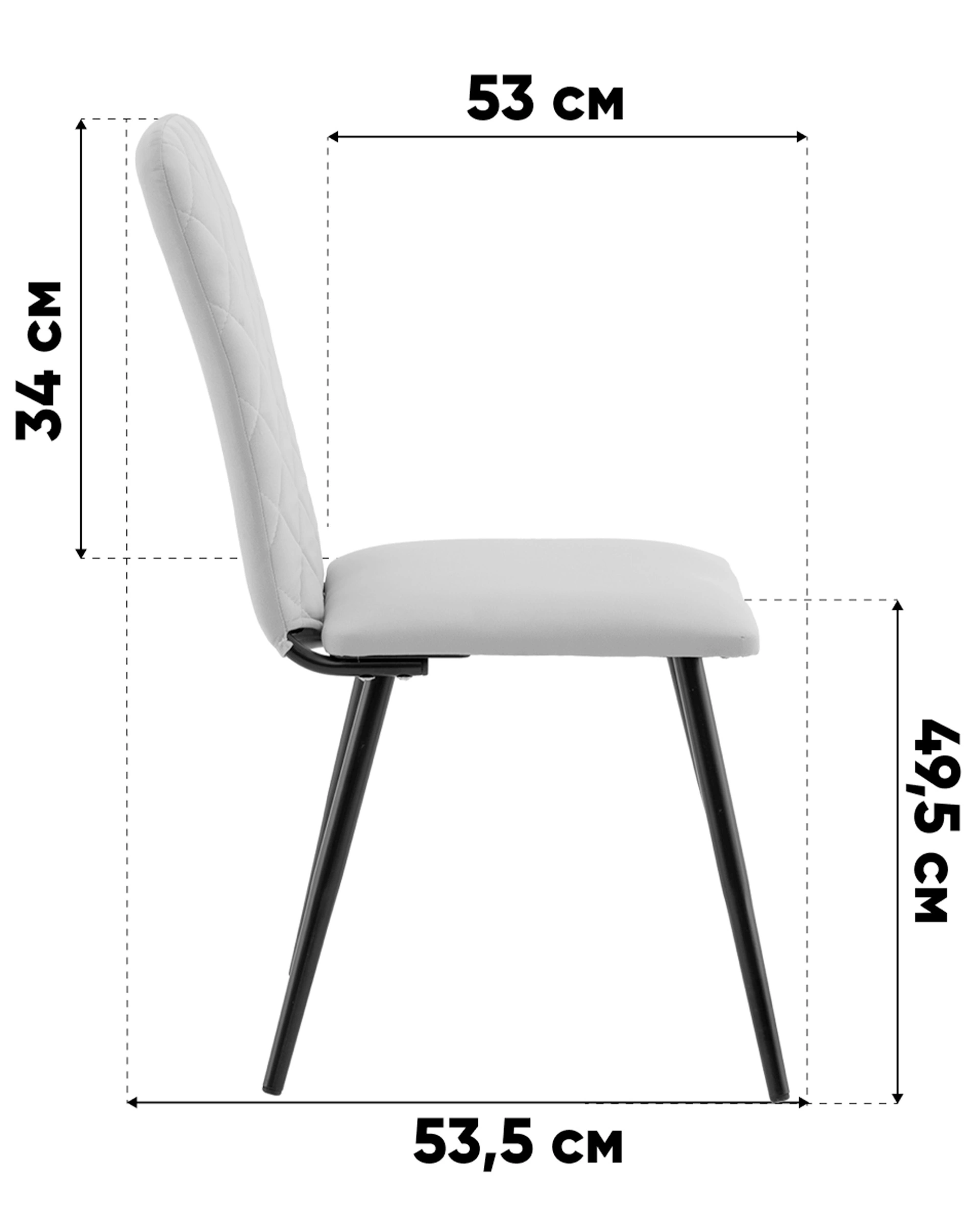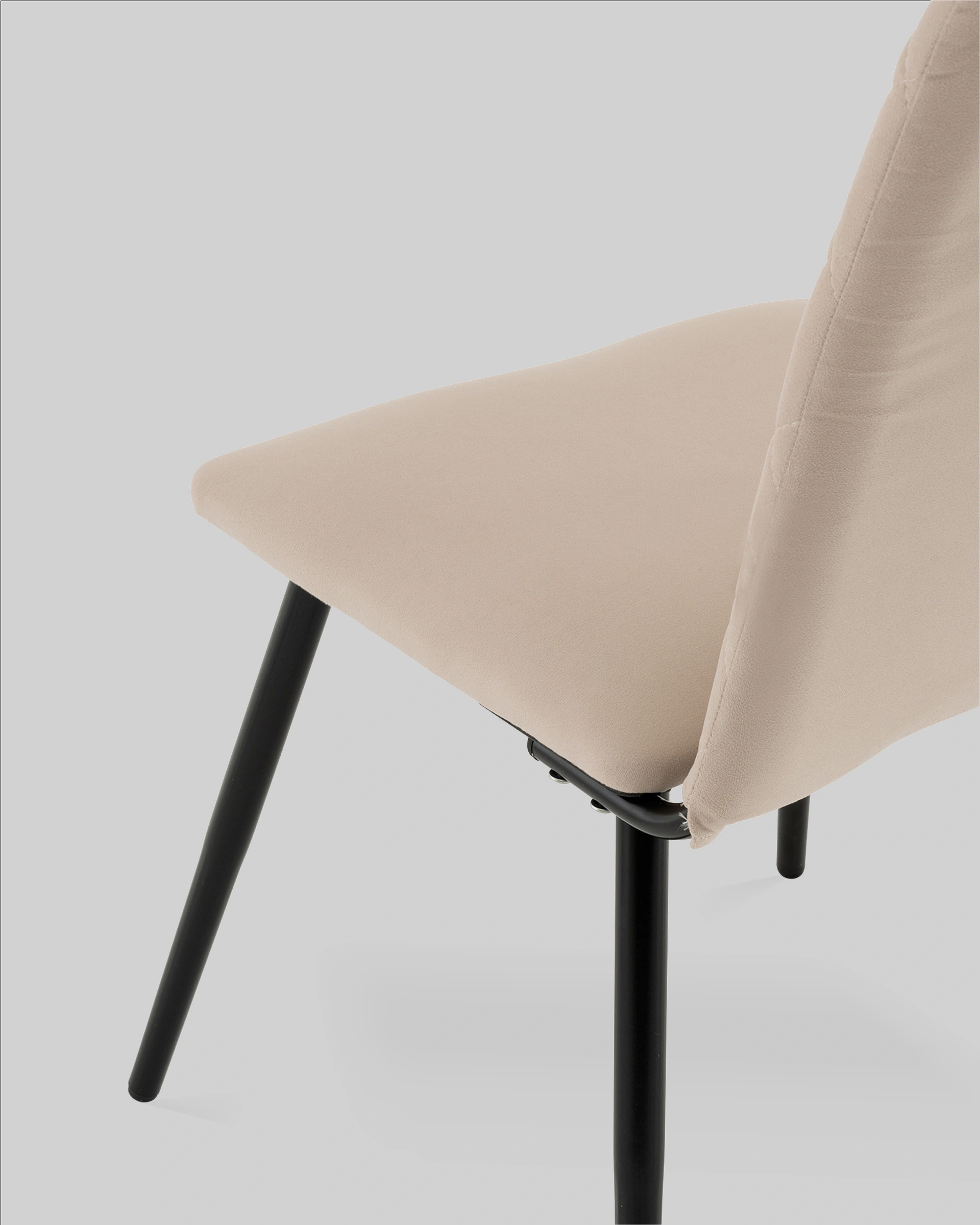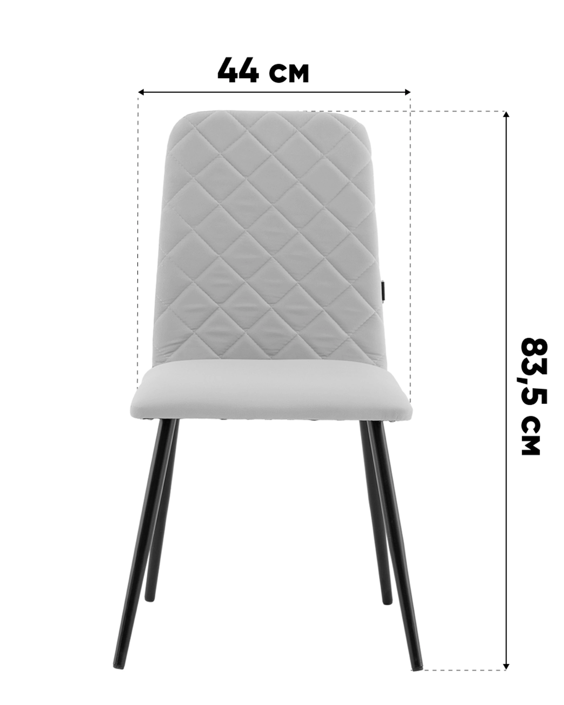 Спинка стула украшена аккуратной стёжкой в виде ромбов, добавляющей визуальный интерес и подчёркивающей уютный характер. Прямое сиденье и слегка наклонённая спинка обеспечивают удобную посадку для повседневных трапез и бесед. Прочные металлические ножки в чёрном цвете гарантируют надёжность и устойчивость конструкции.